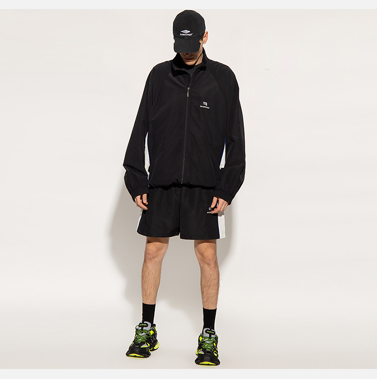 BALENCIAGA 巴黎世家 男士尼龙 Sporty B 徽标印花休闲短裤 黑色 699032 TKO48 1000