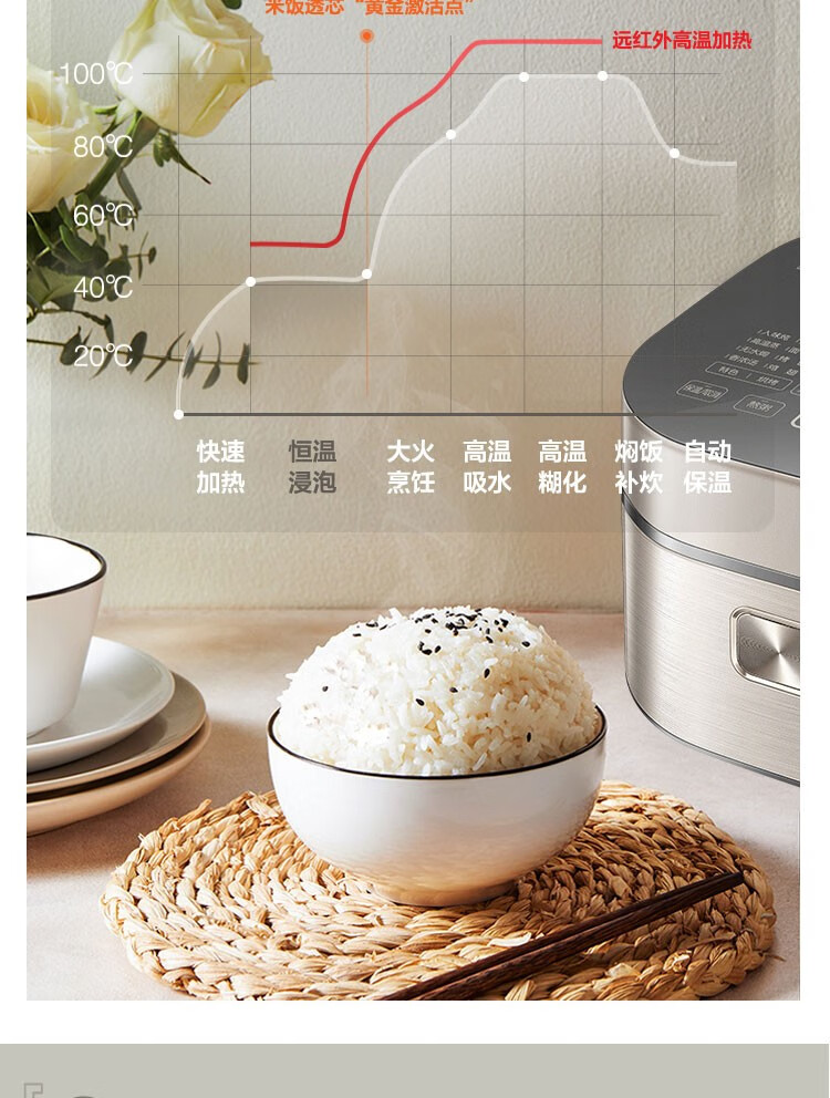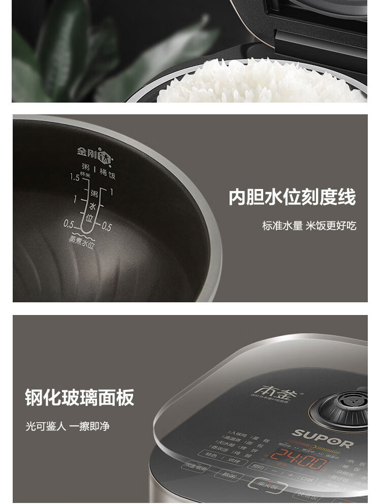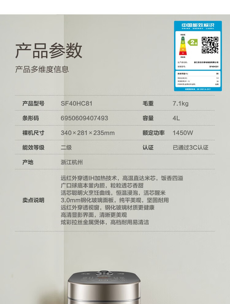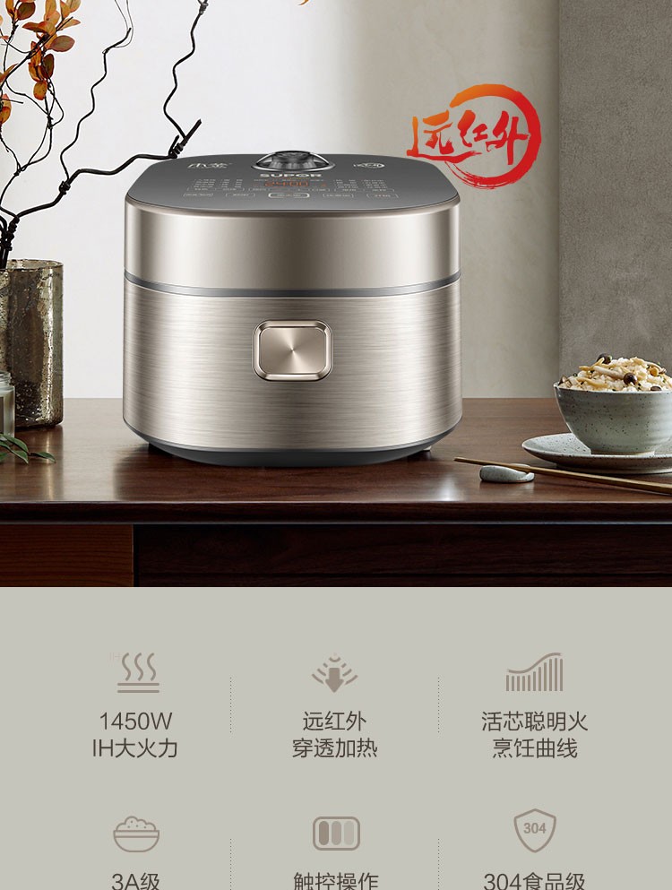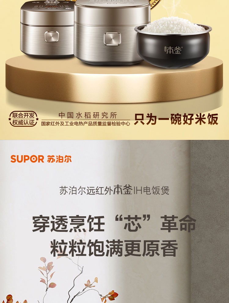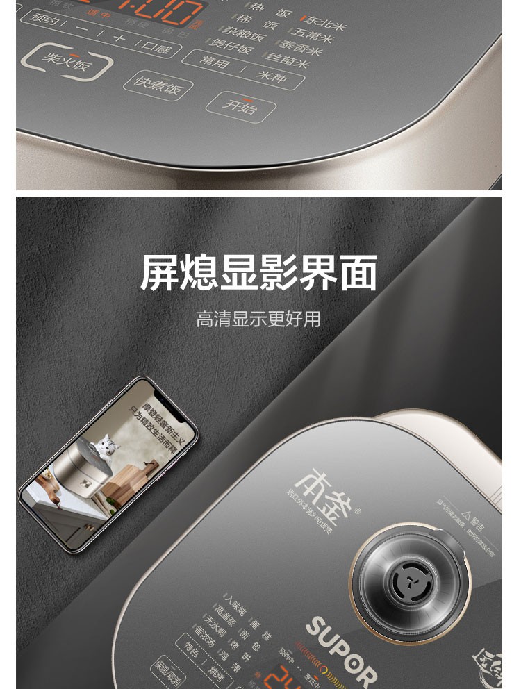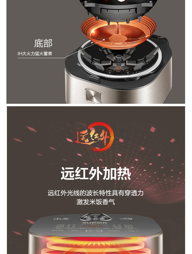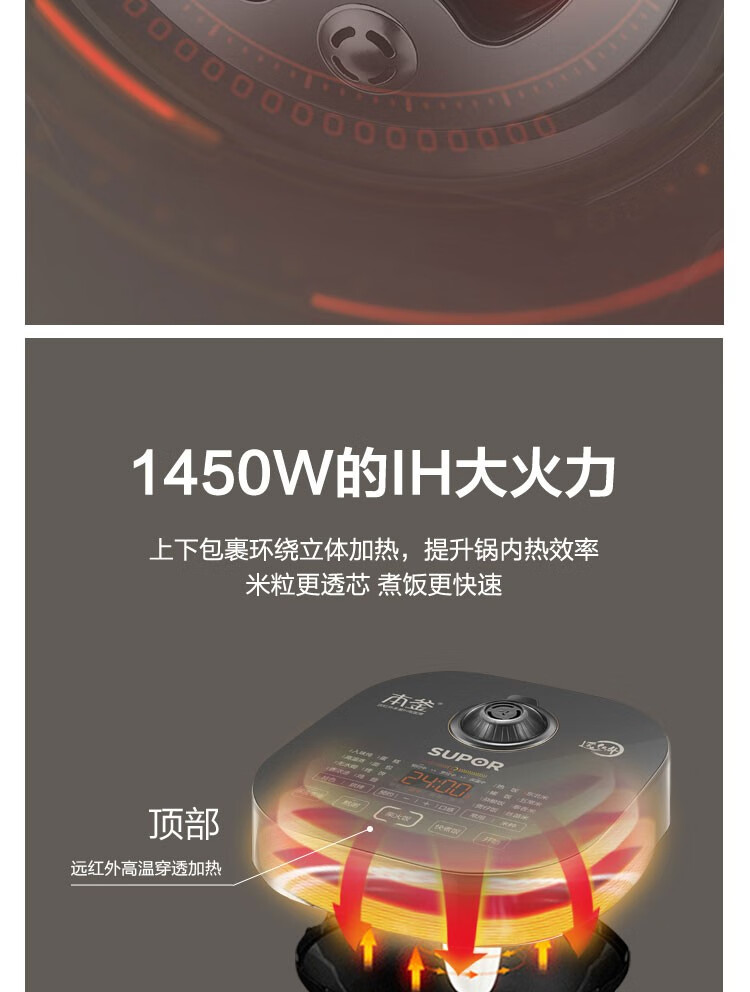 苏泊尔(SUPOR) 电饭煲 远红外加热IH本釜内胆 电饭锅4L智能预约家用煮饭锅 一键柴火饭 SF40HC81 4升