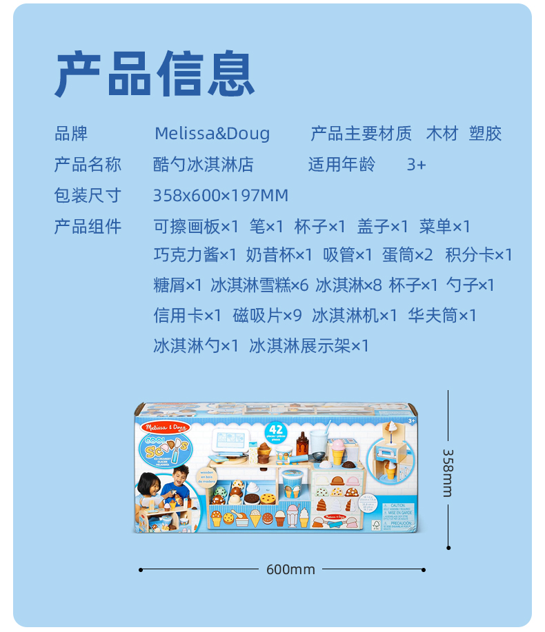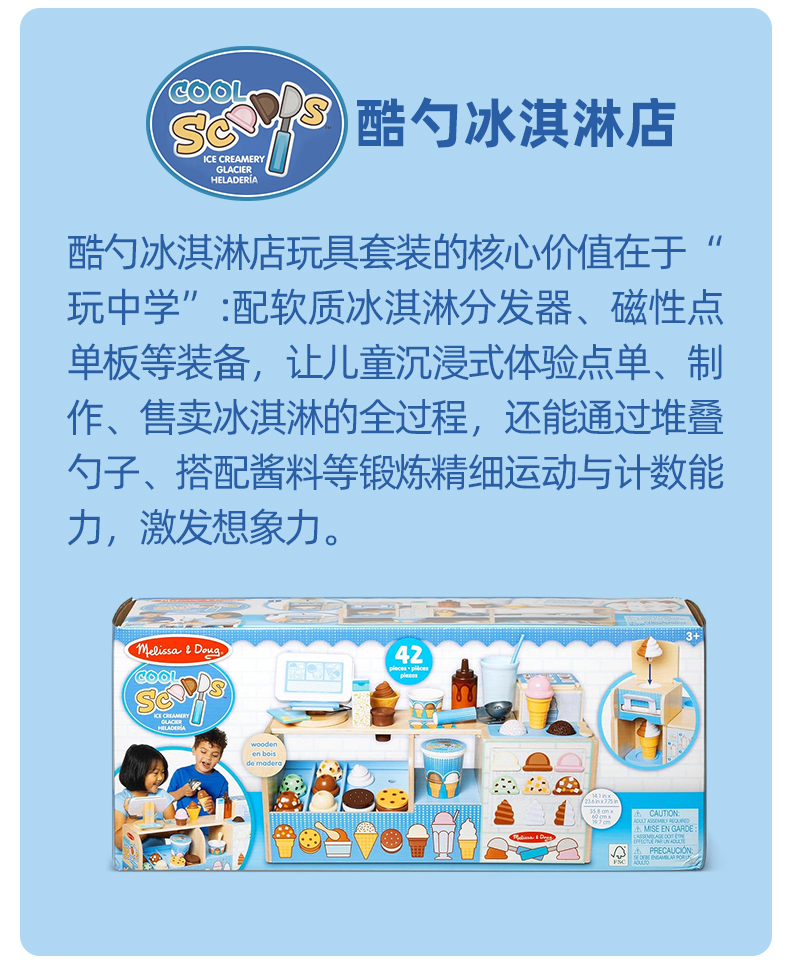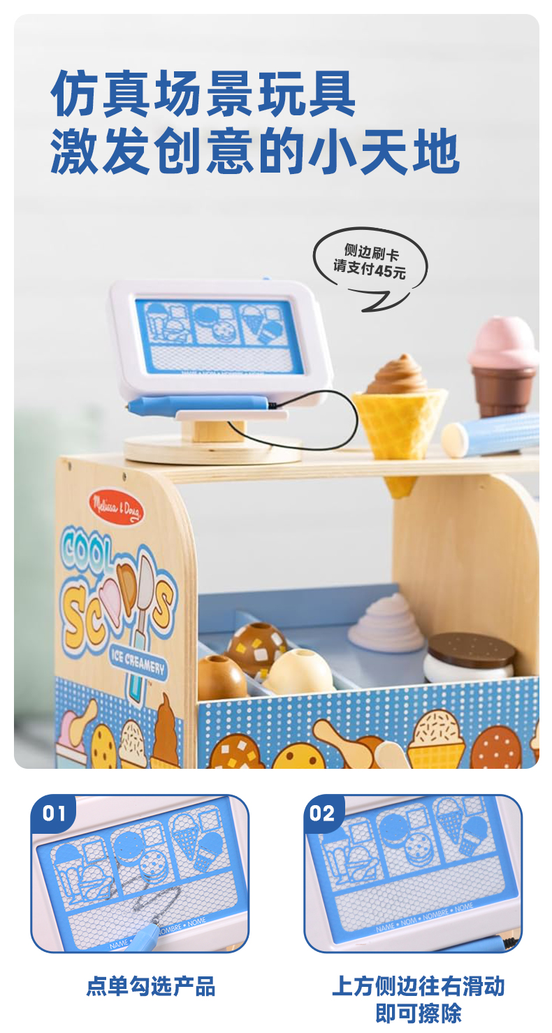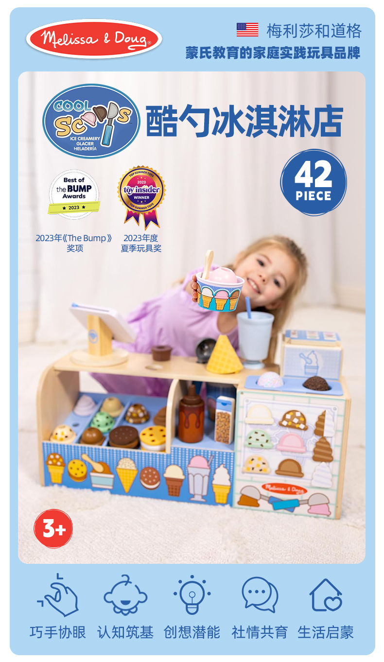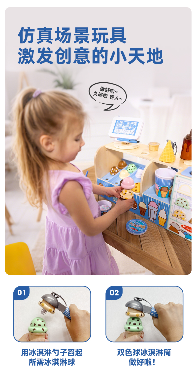 *美国Melissa&Doug儿童酷勺冰淇淋店过家家玩具