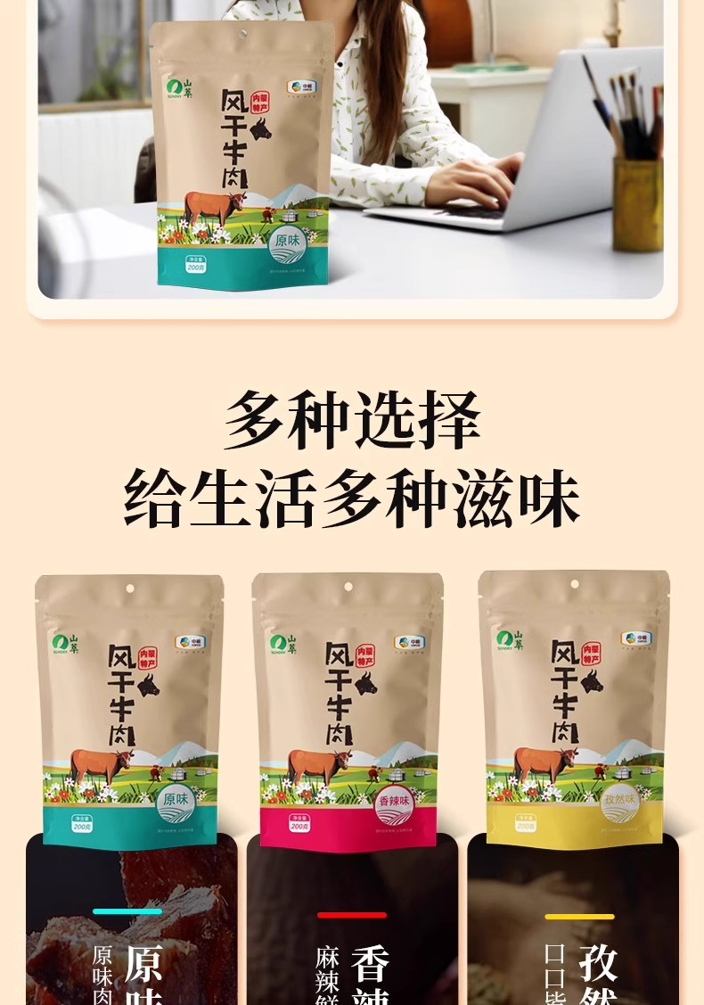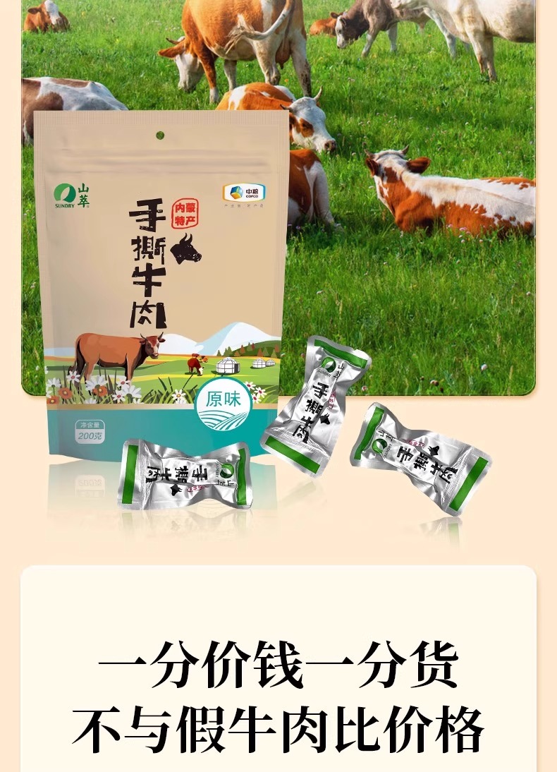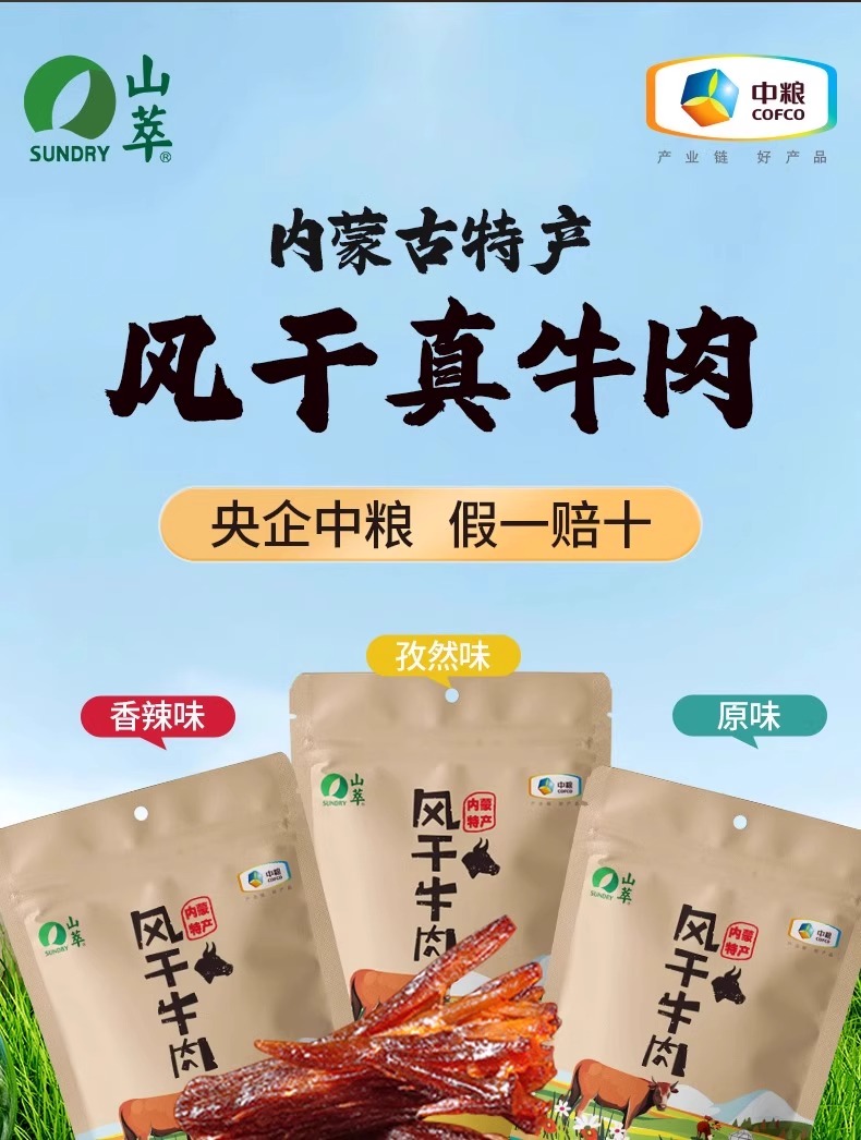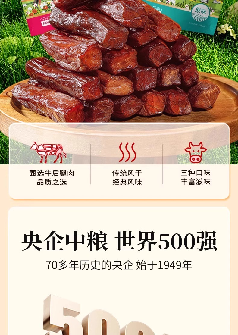 中粮山萃风干牛肉干200g 原味/香辣/孜然 小吃休闲零食