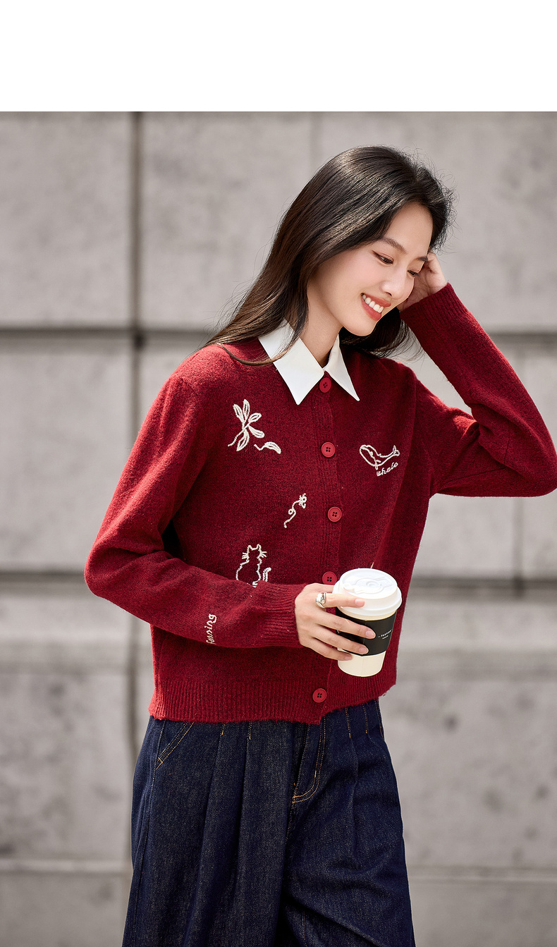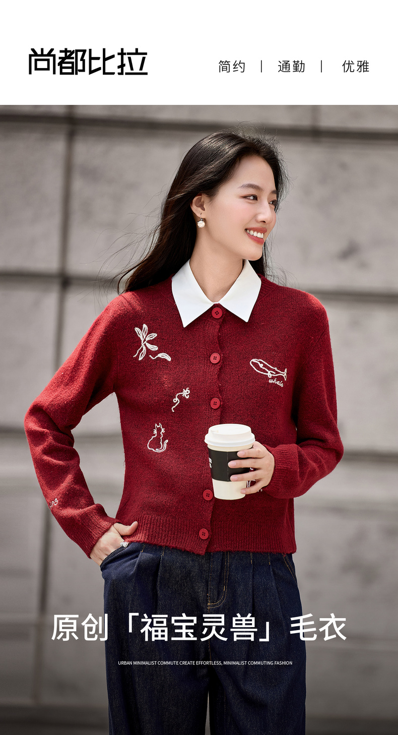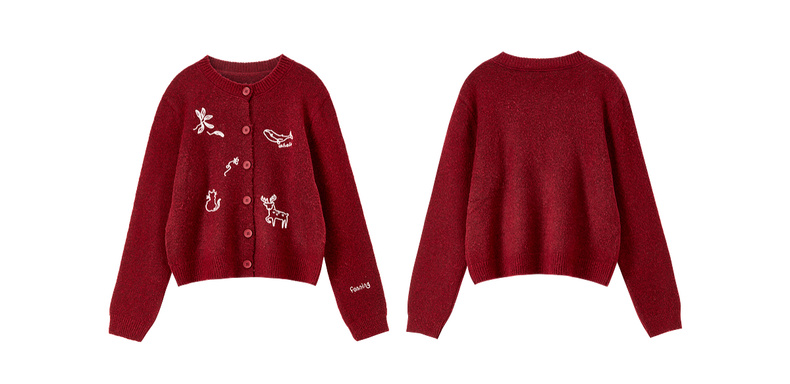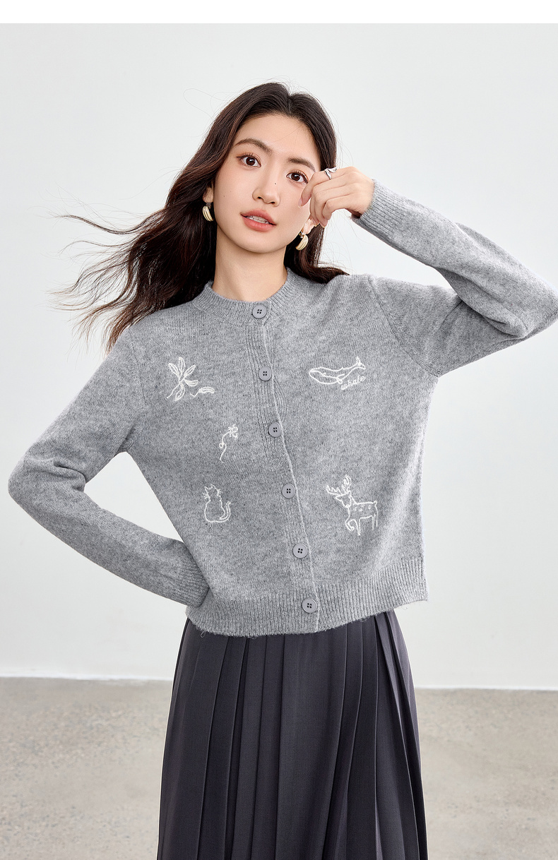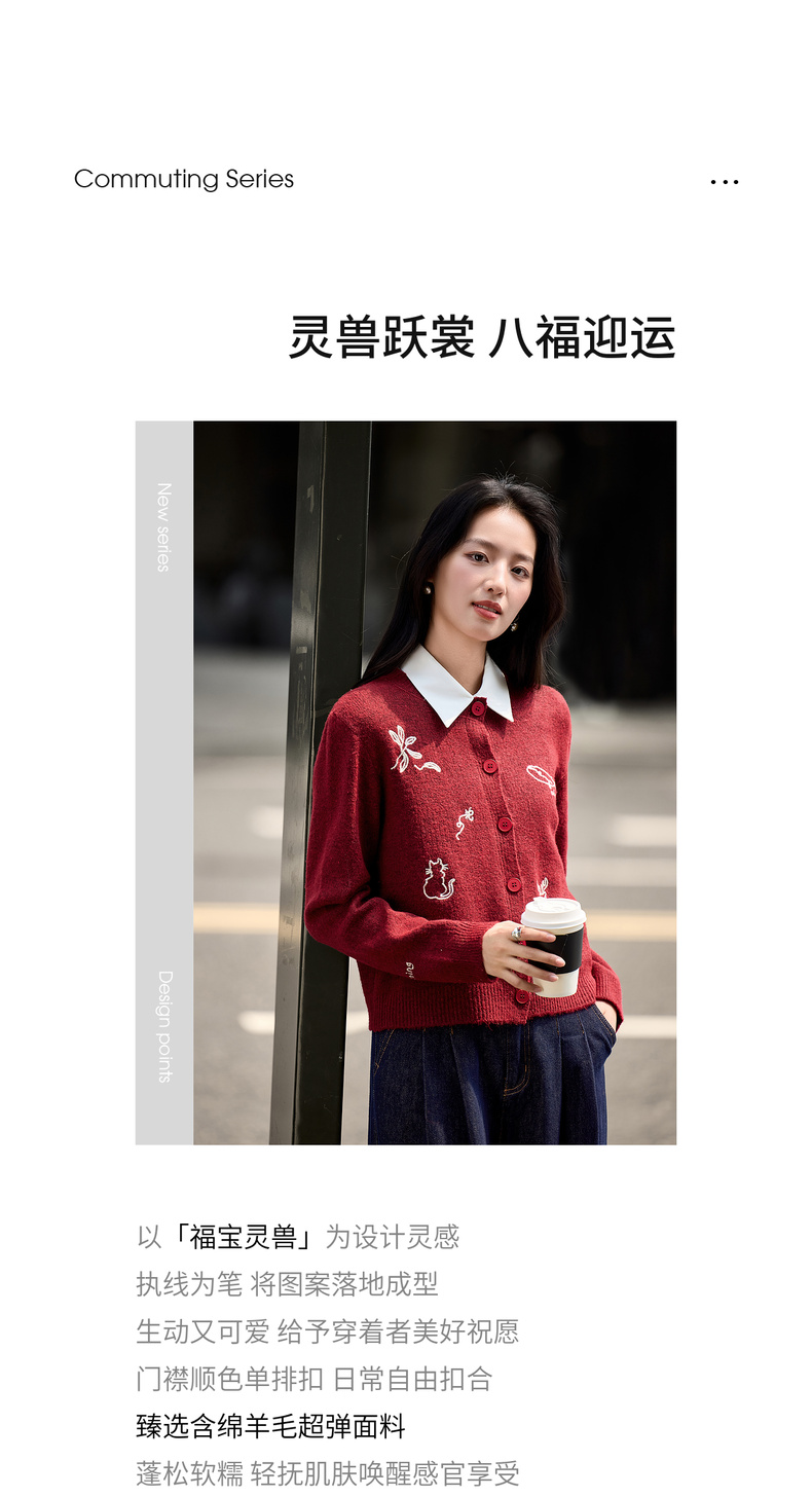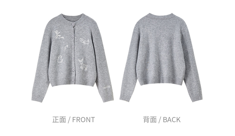 【内购】【福宝灵兽】通勤聚会圆领单排扣刺绣图案含绵羊毛超弹厚开衫毛衣-W54EB3810