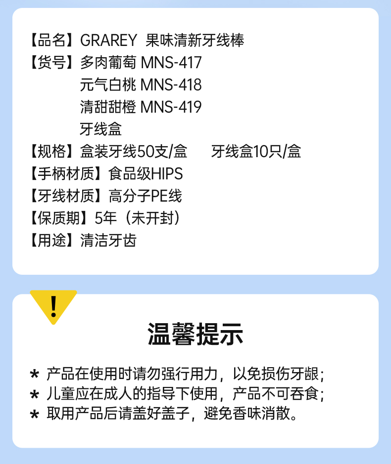 升级盒装!5盒250支➕送高端牙线盒(内含10支牙线棒)!【GRAREY格瑞亚-果味清新牙线棒】三种清新水果味,清洁牙缝+清新口气双效合一!