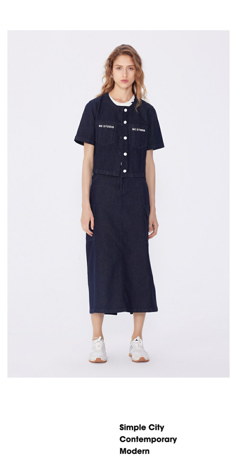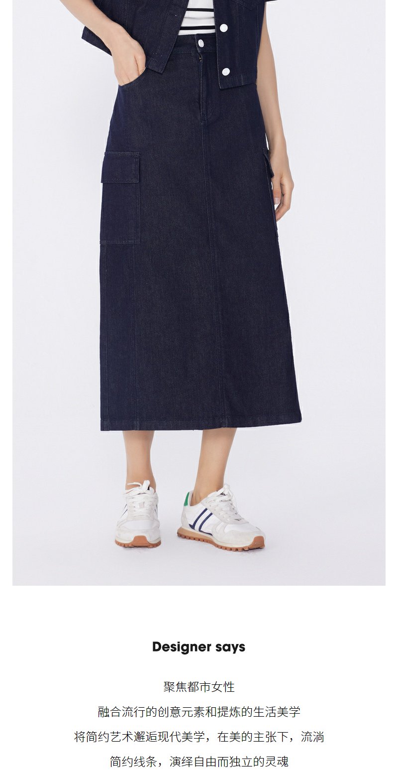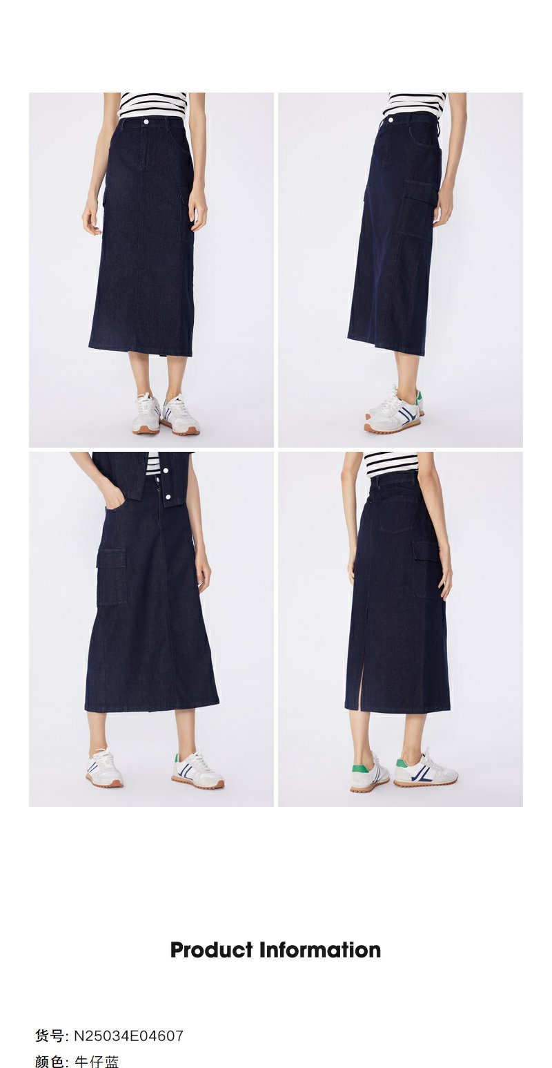 NEELLY纳俪商场同款春季新款简约显瘦包臀工装裙女通勤百搭中长裙N25034E04607
