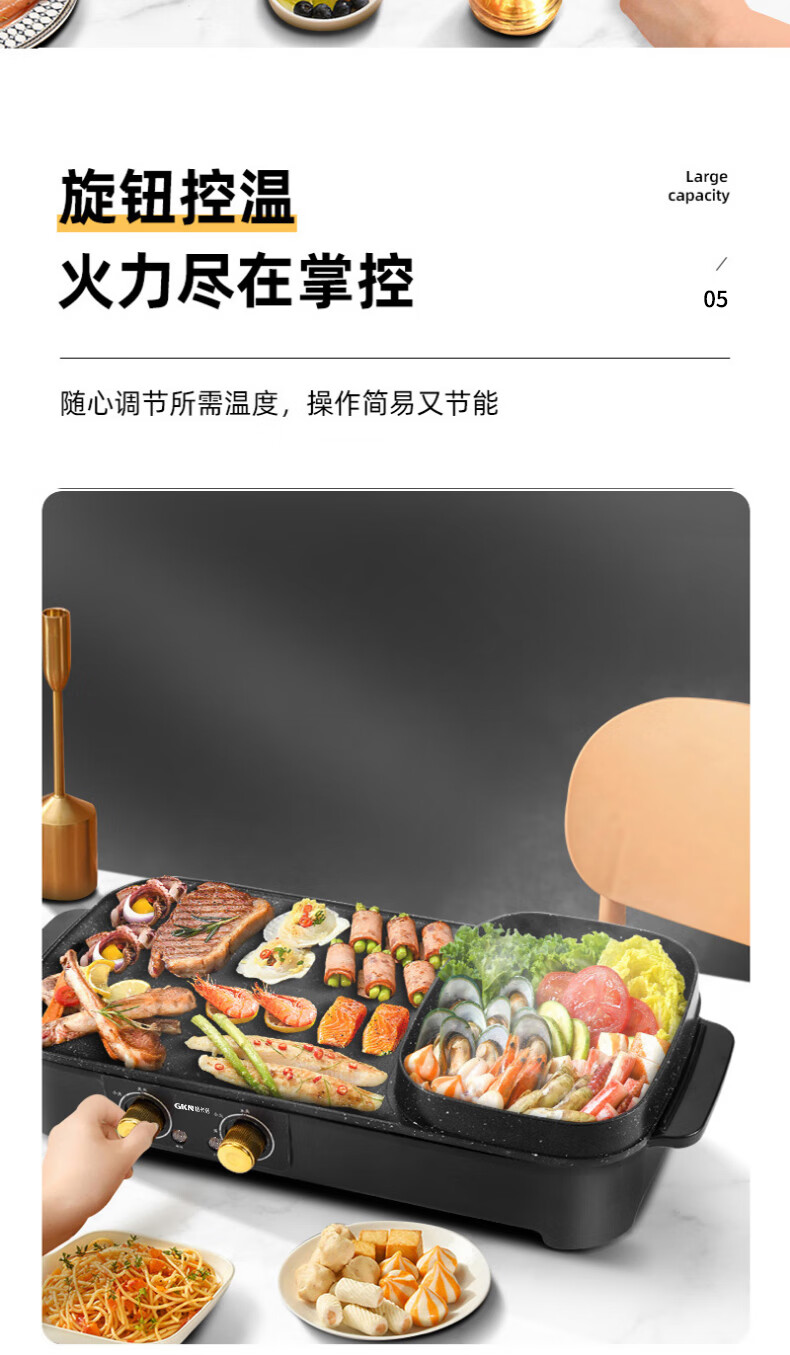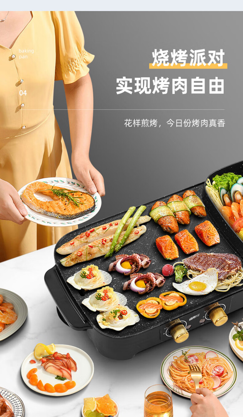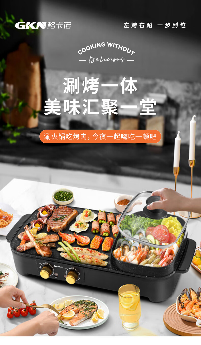 格卡诺涮烤一体锅_GKN-SKG-2 分区控温 黑色