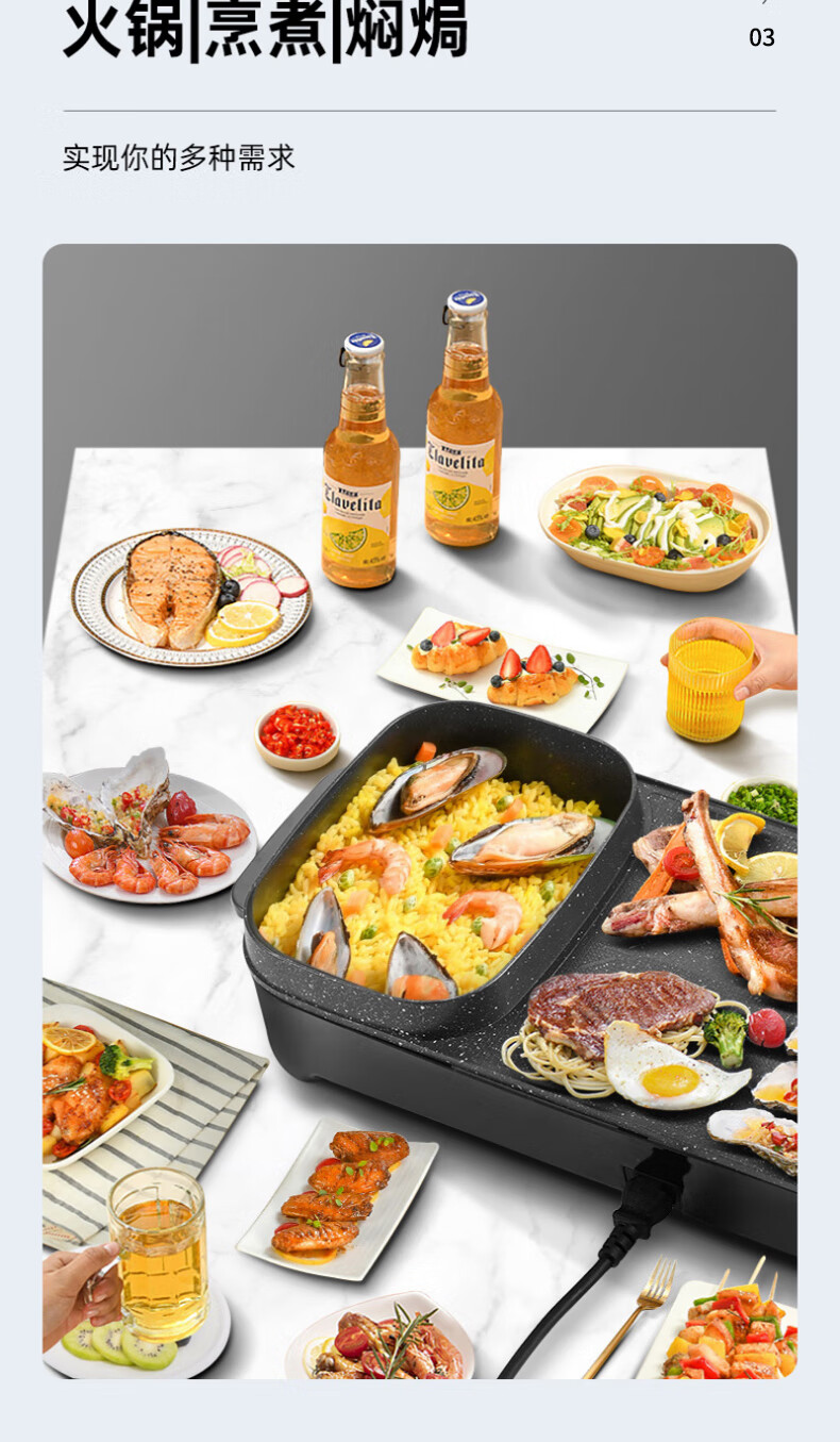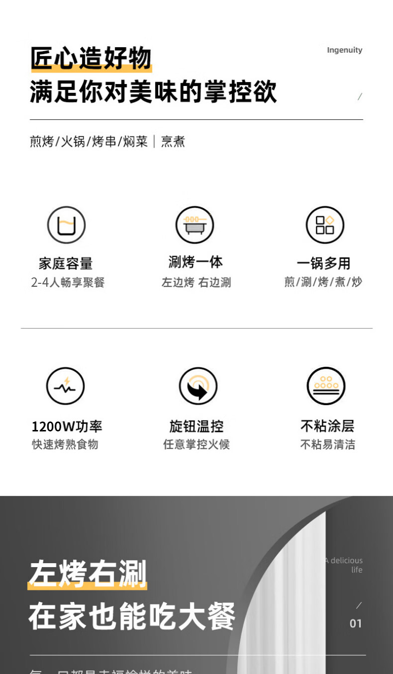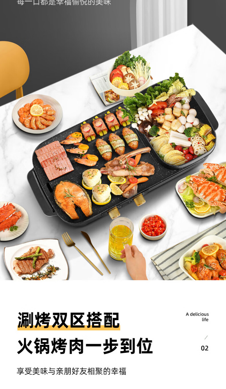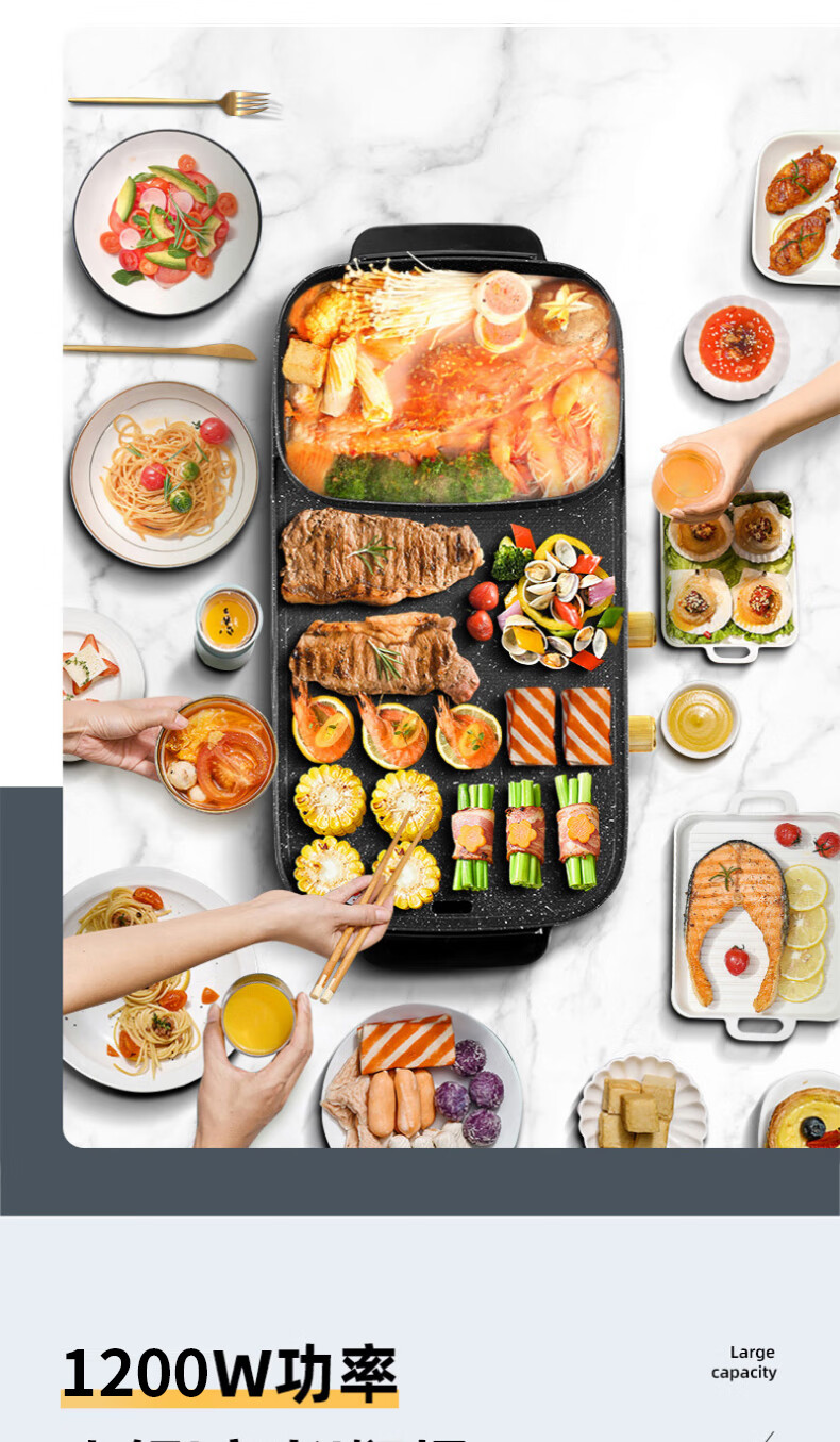 格卡诺涮烤一体锅_GKN-SKG-2 分区控温 黑色