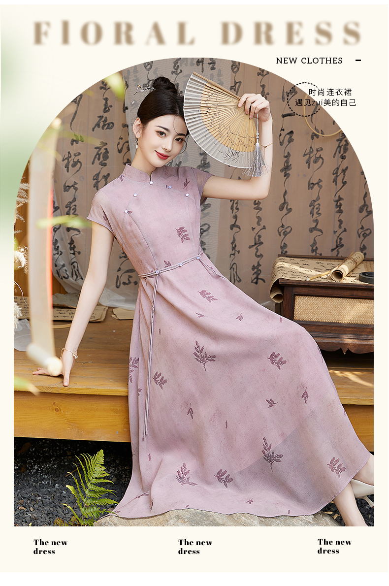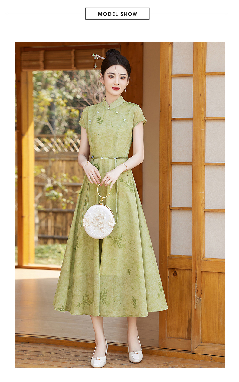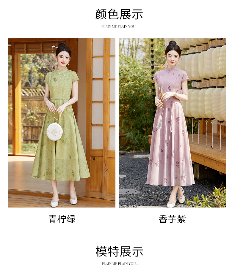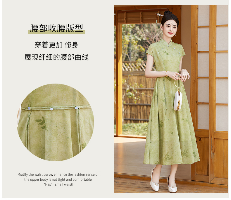 优雅新中式,改良旗袍领收腰连衣裙HR-YBER121