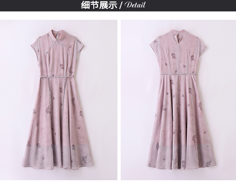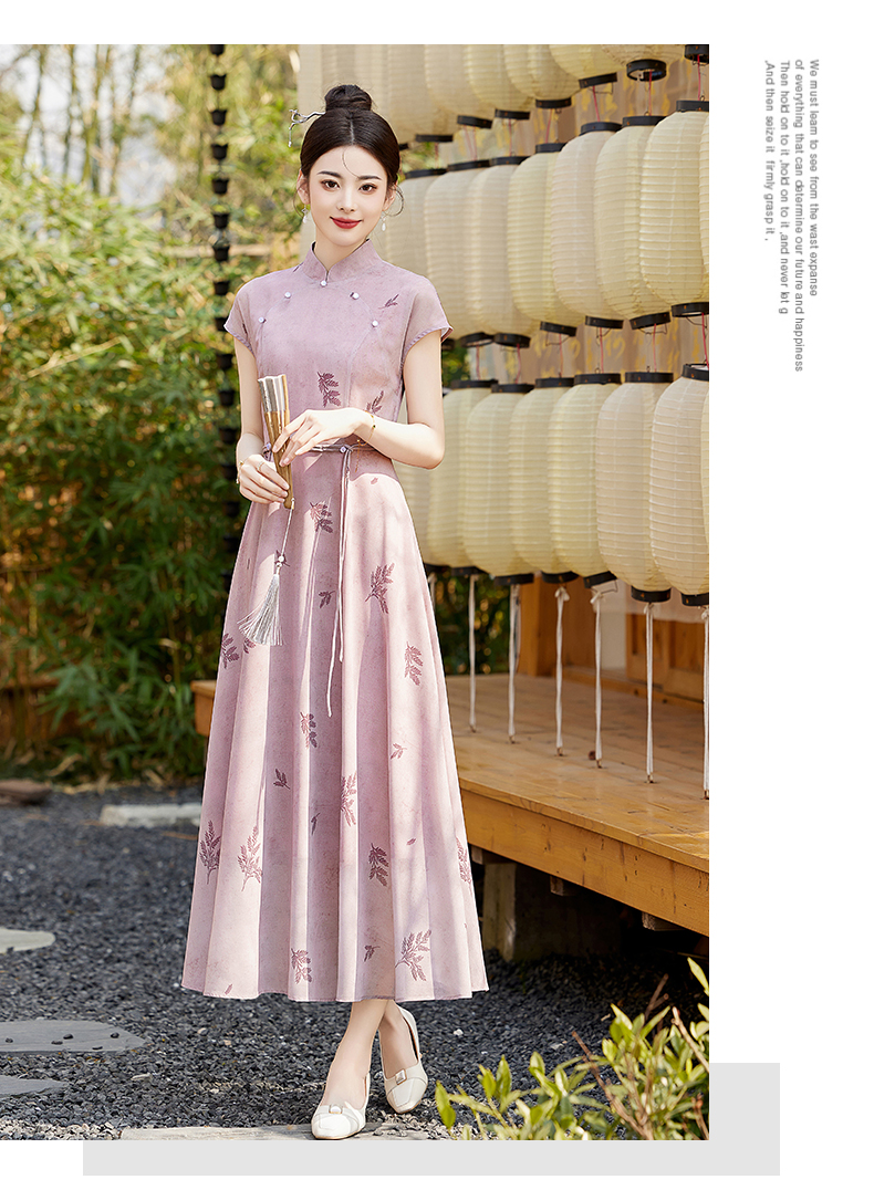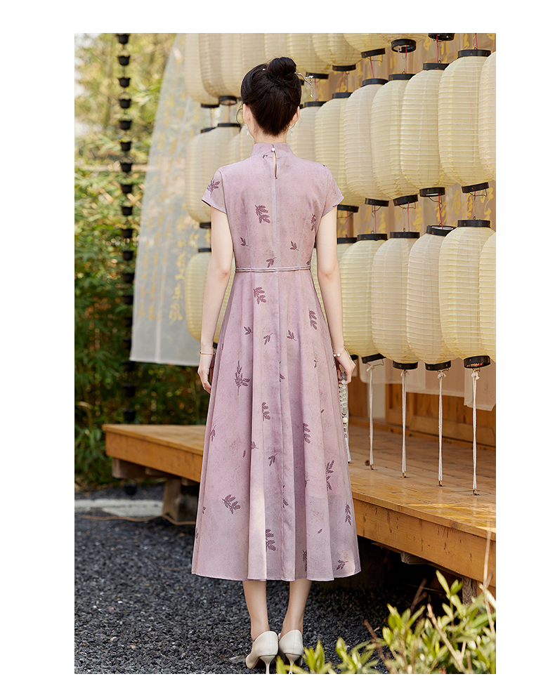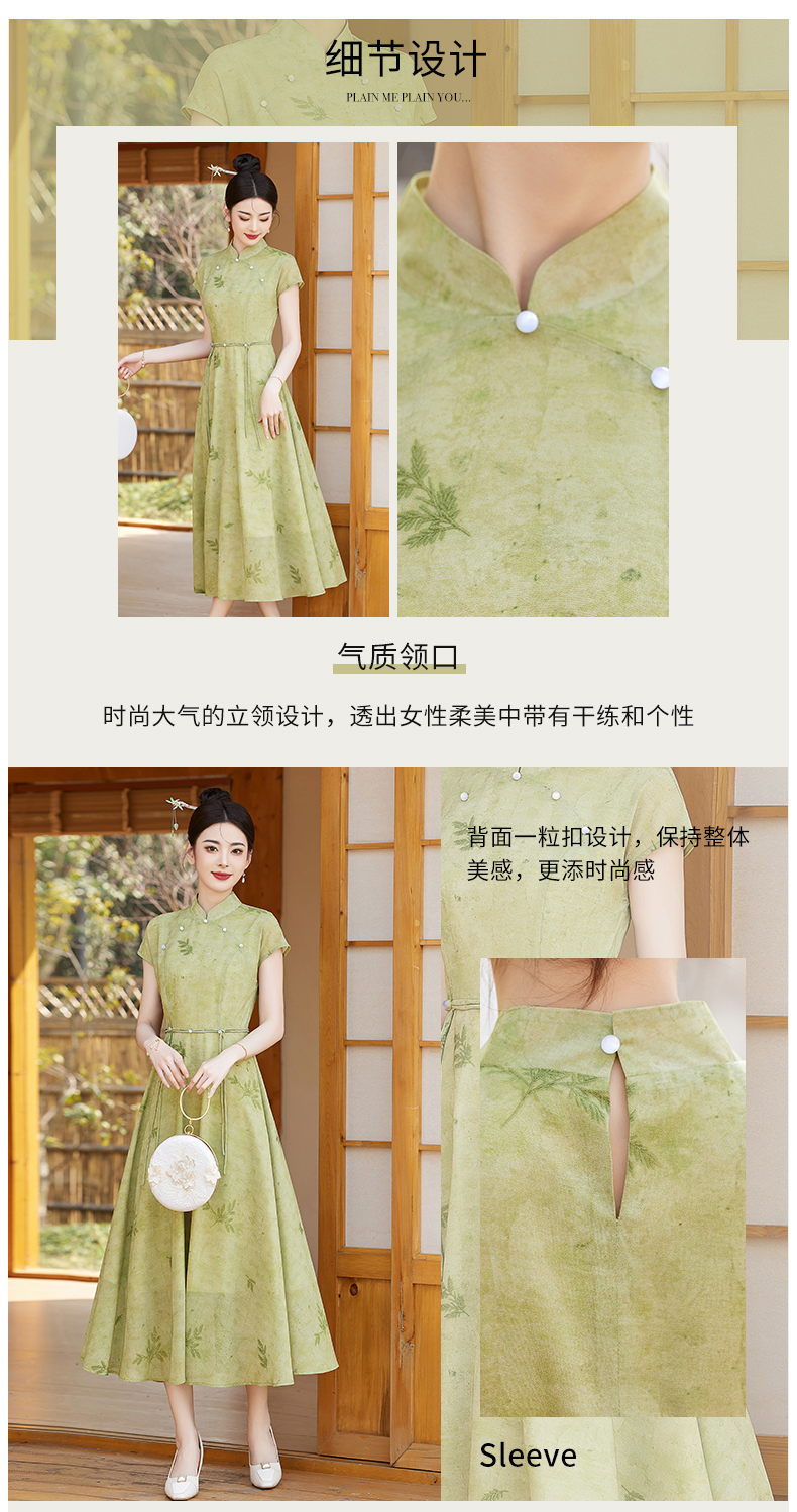 优雅新中式,改良旗袍领收腰连衣裙HR-YBER121