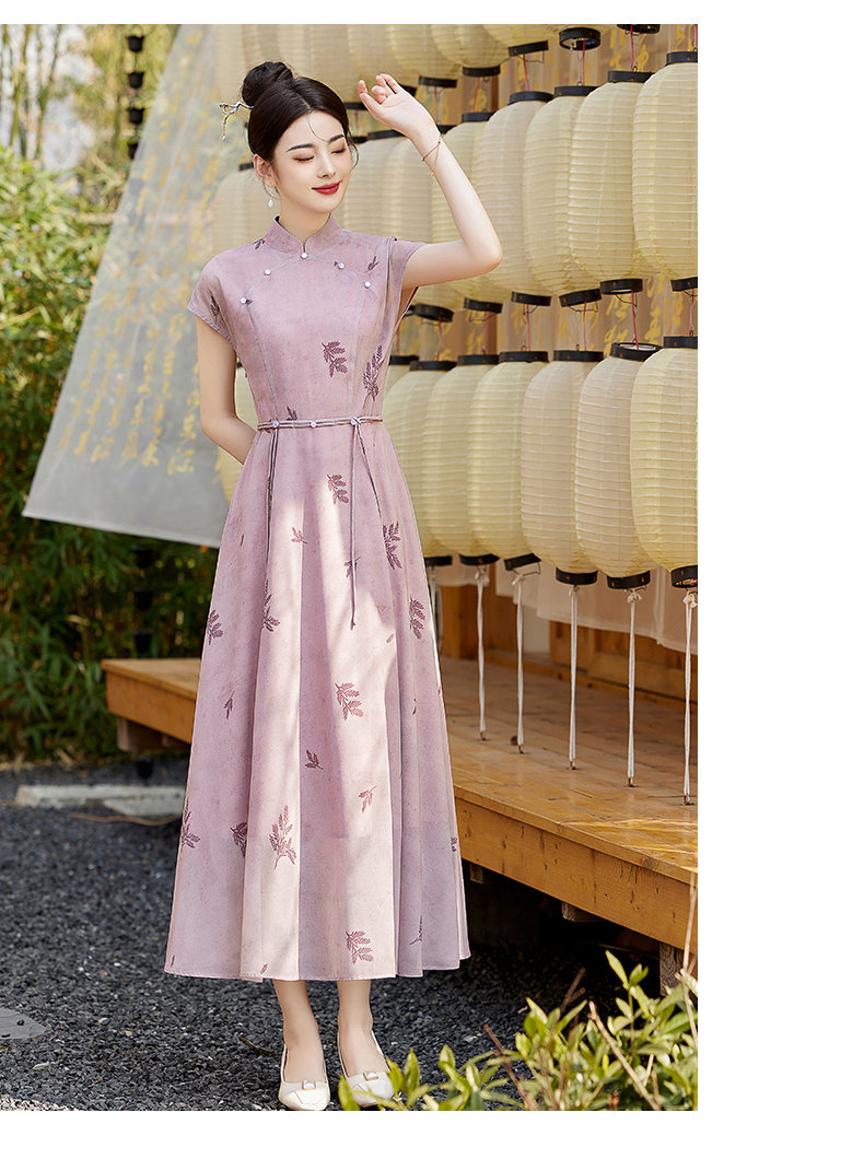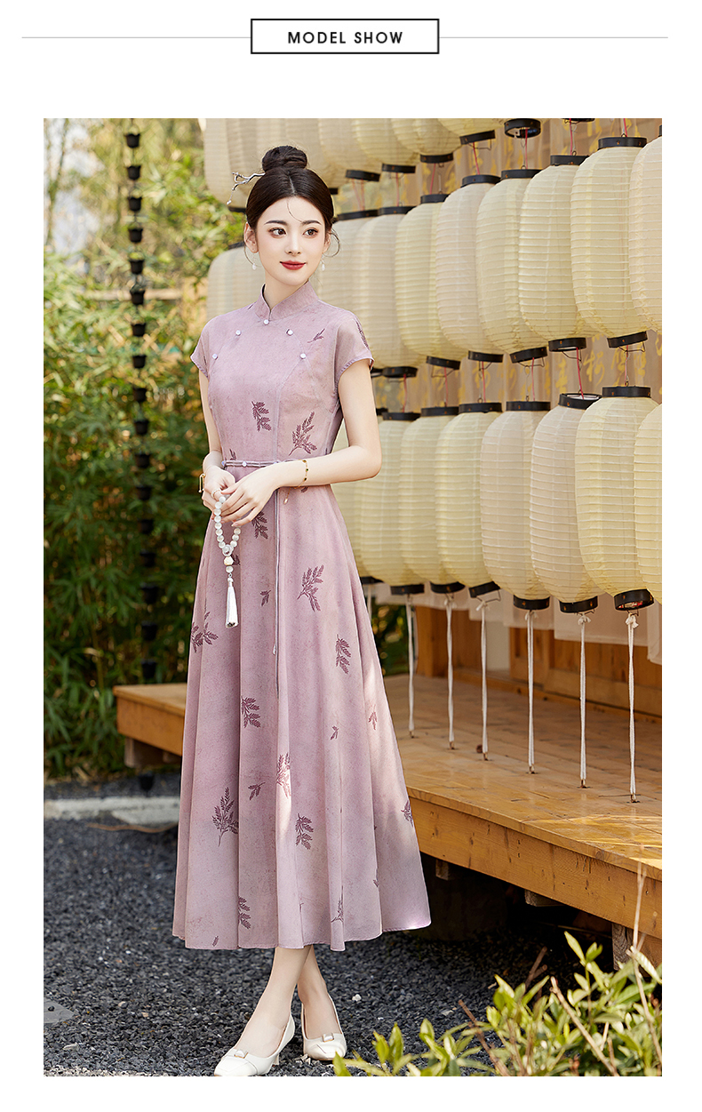 【丹凤朝阳】紫色斜开叉长款年轻款演出旗袍YD90