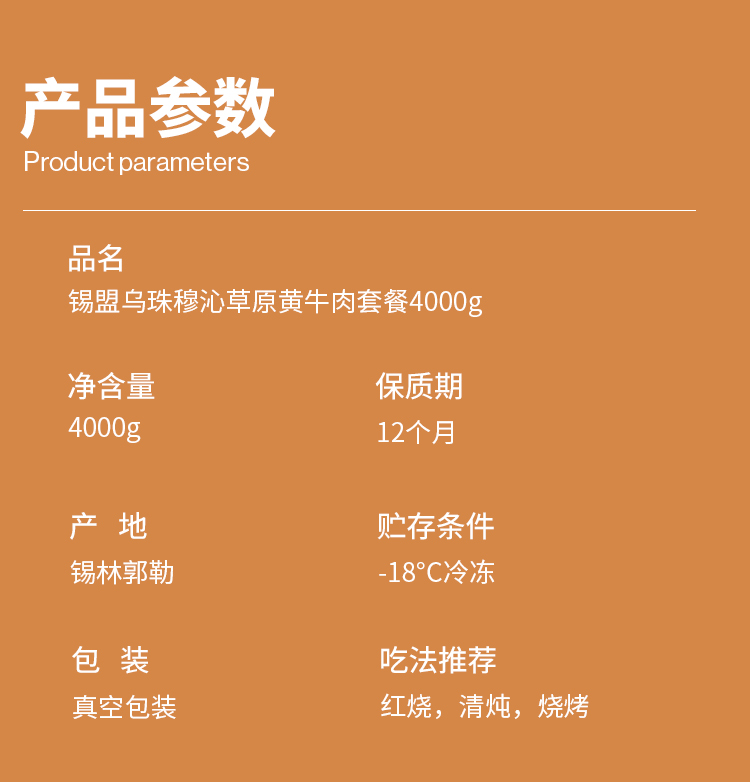 【发出后不支持拦截退货】牧森甄 乌珠穆沁旗草原黄牛肉878型 4000g