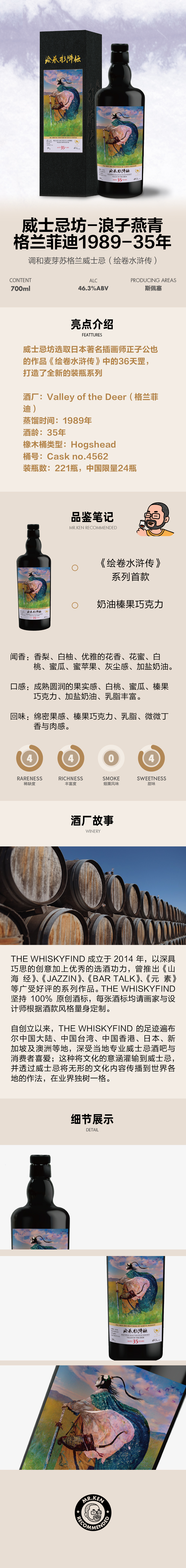 威士忌坊-浪子燕青-格兰菲迪1989-35年纯麦苏格兰威士忌(绘卷水浒传)【抢先预售·10月底发货】