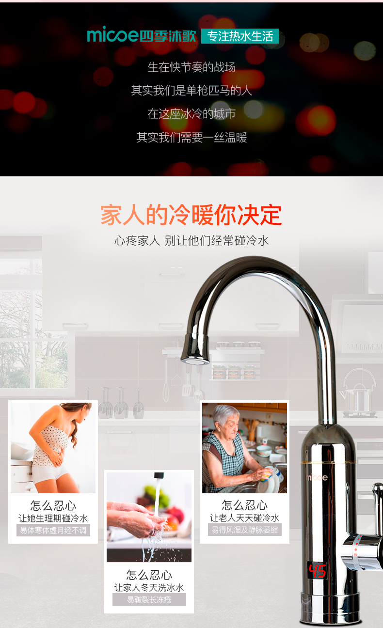 四季沐歌 速热厨房宝 数显安全 即热式电热水器电加热水龙头M3-DSK33PX2 不包安装