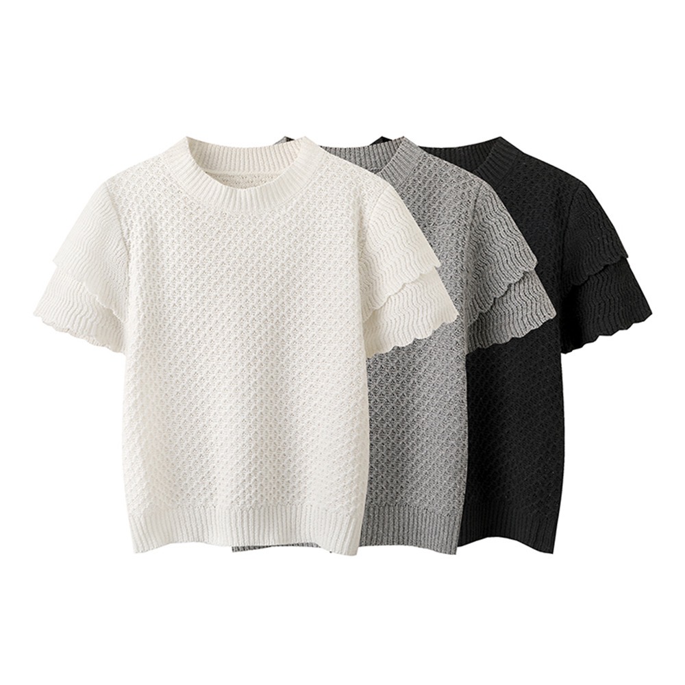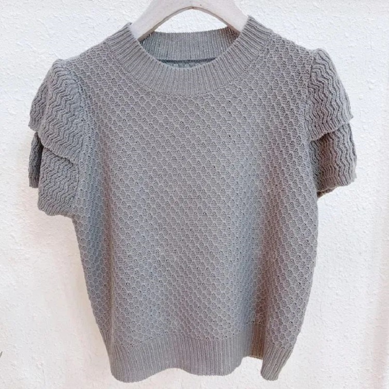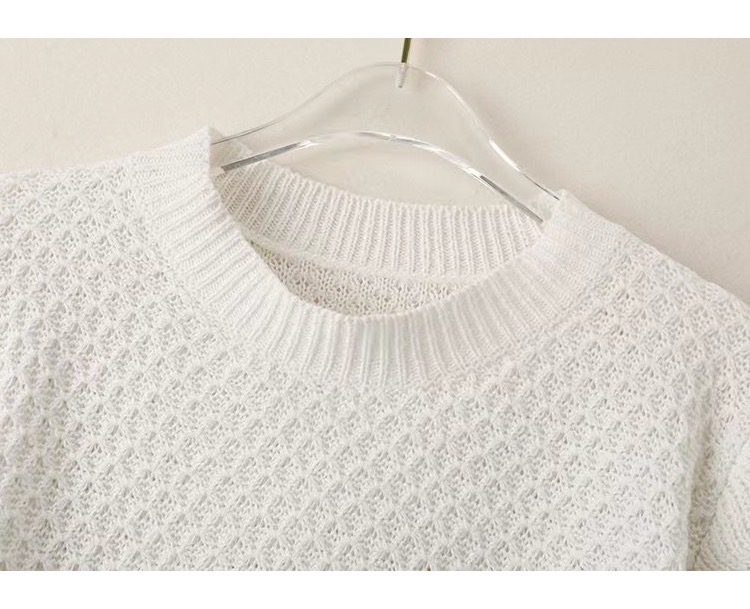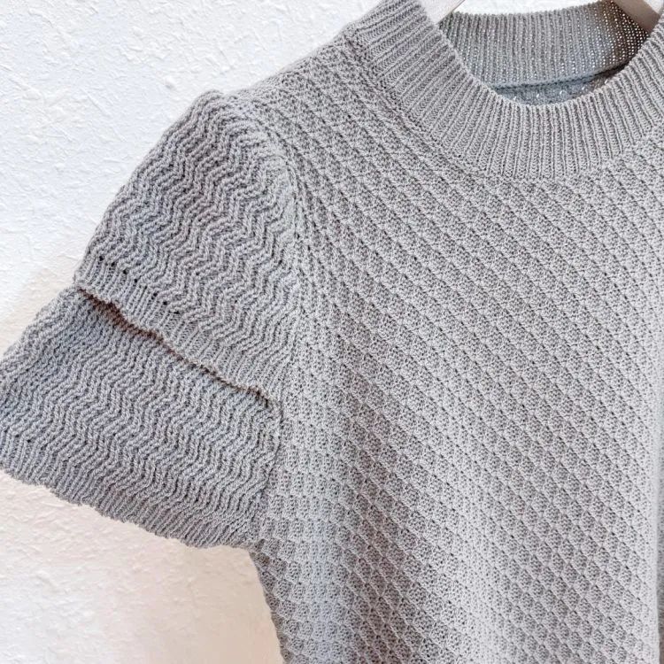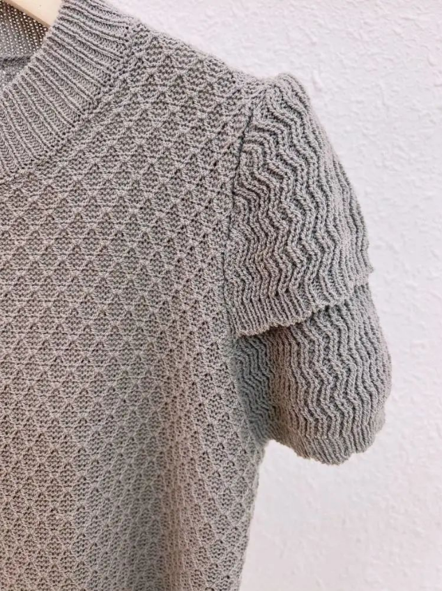 2:微透镂空菱格针织款式,叠层泡泡袖,领口高圆领设计