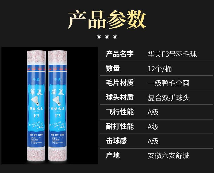华美F3羽毛球比赛级耐打不易烂飞行稳定防风室内外训练比赛用球