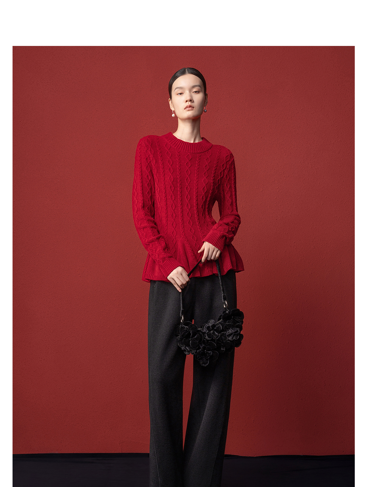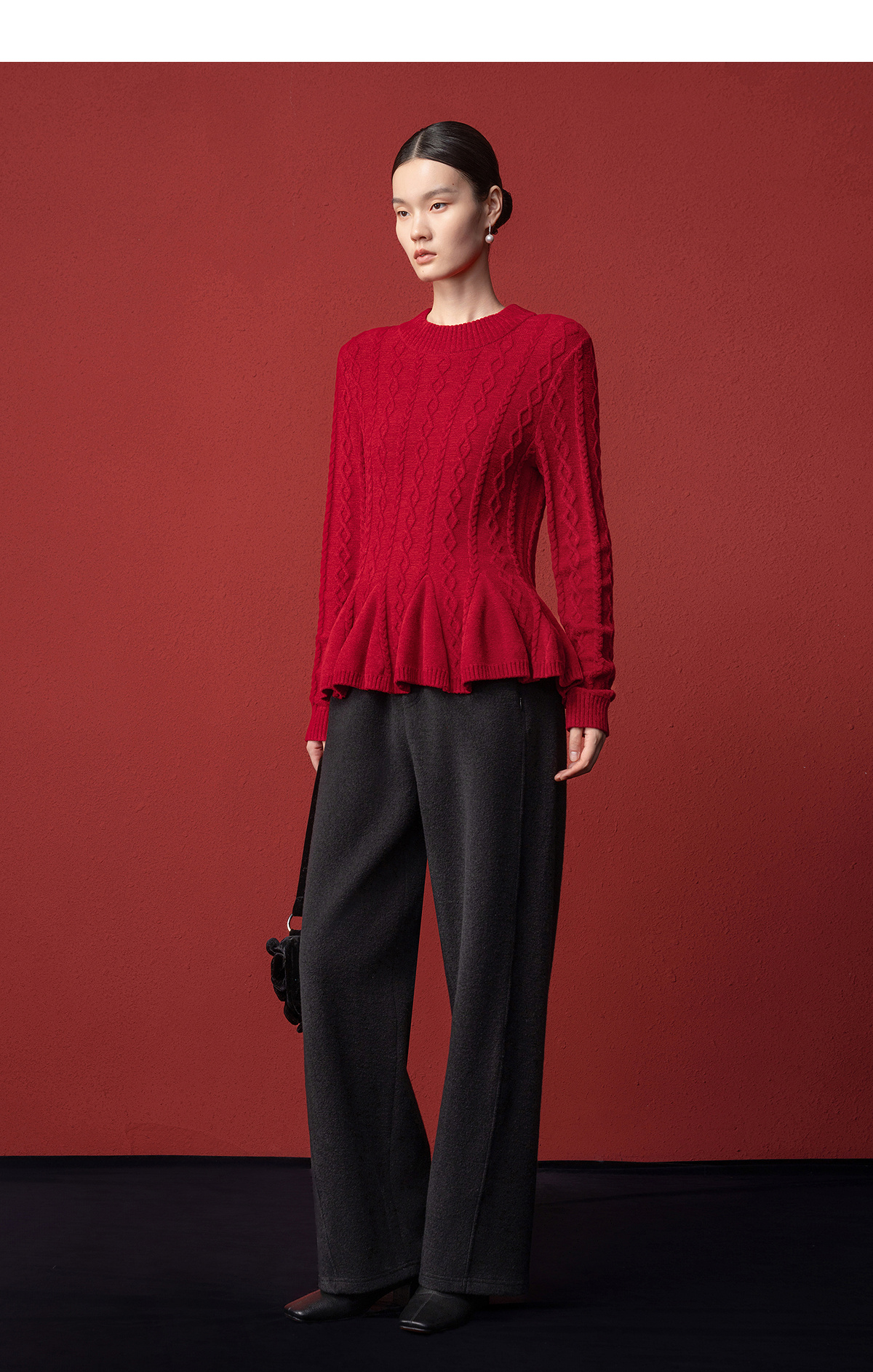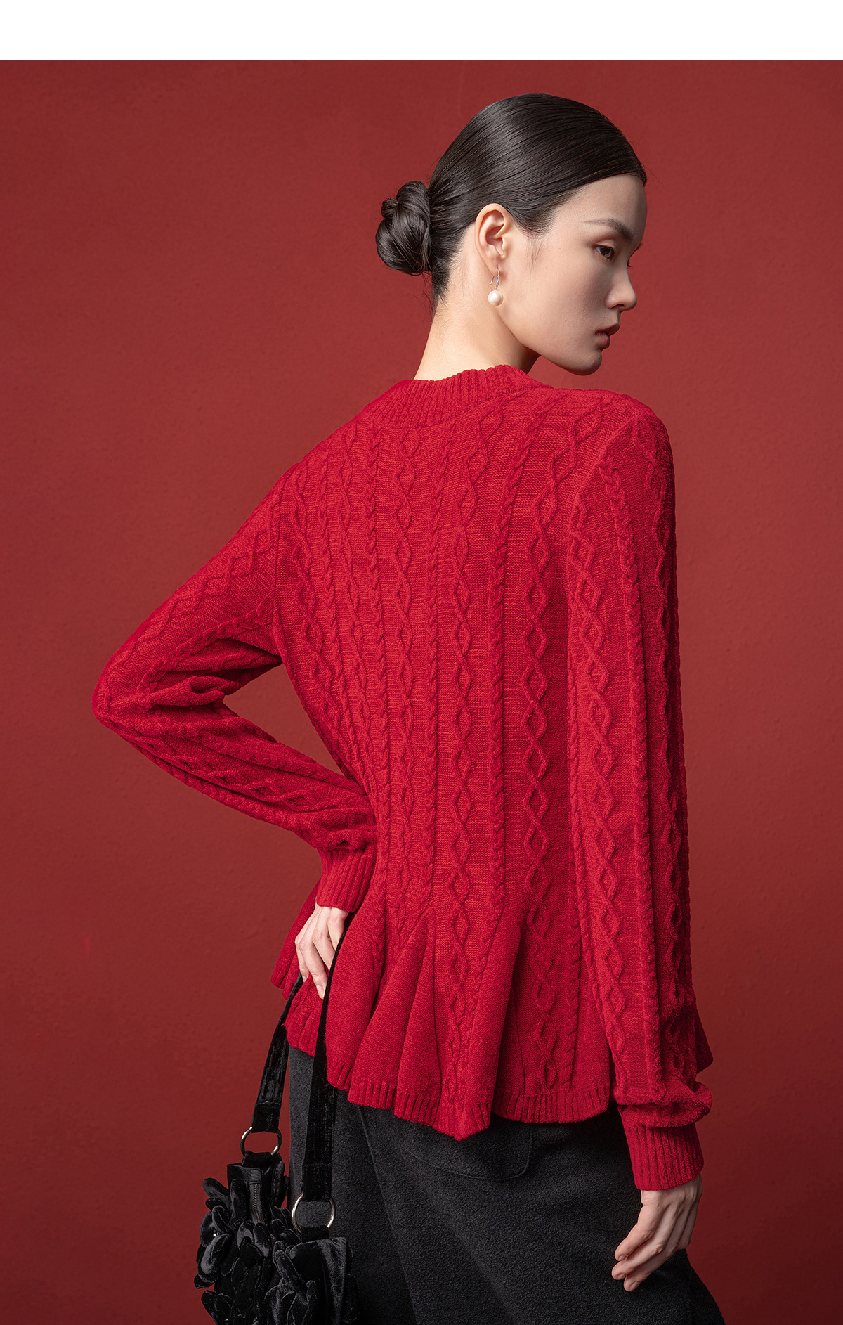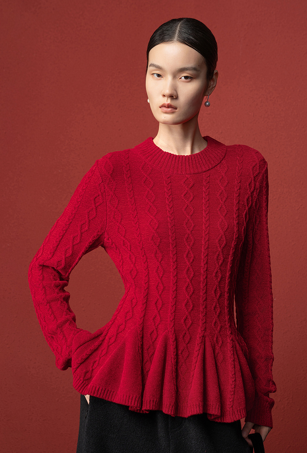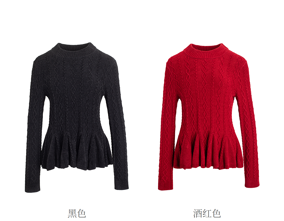【林栖设计小店】收腰毛织上衣麻花荷叶摆2025秋冬新款毛衣女1954051