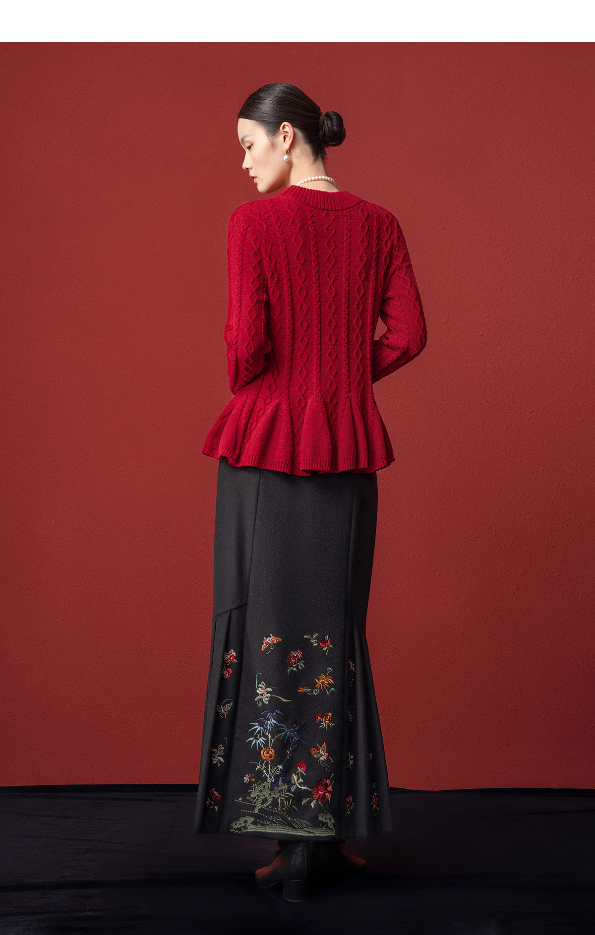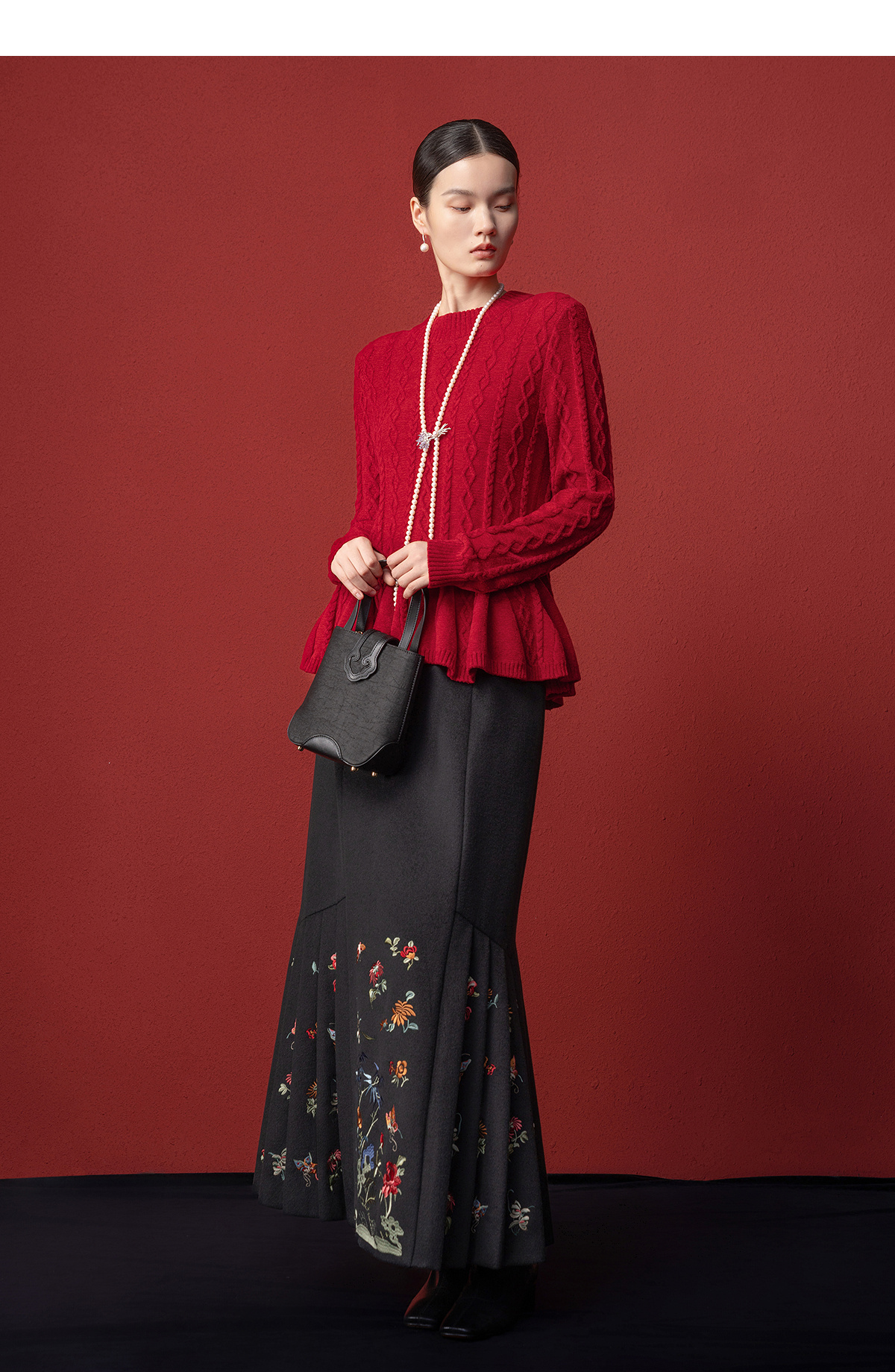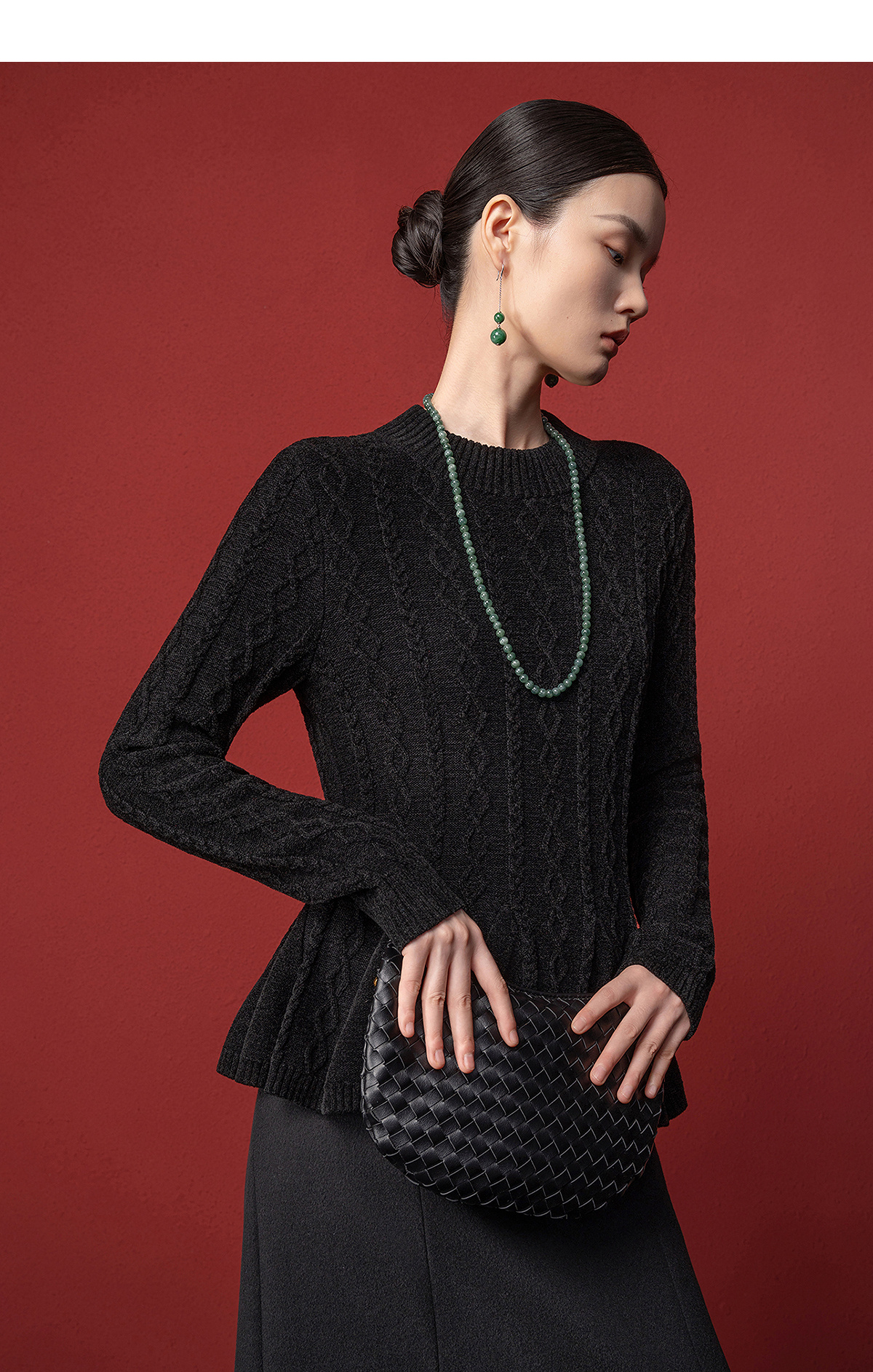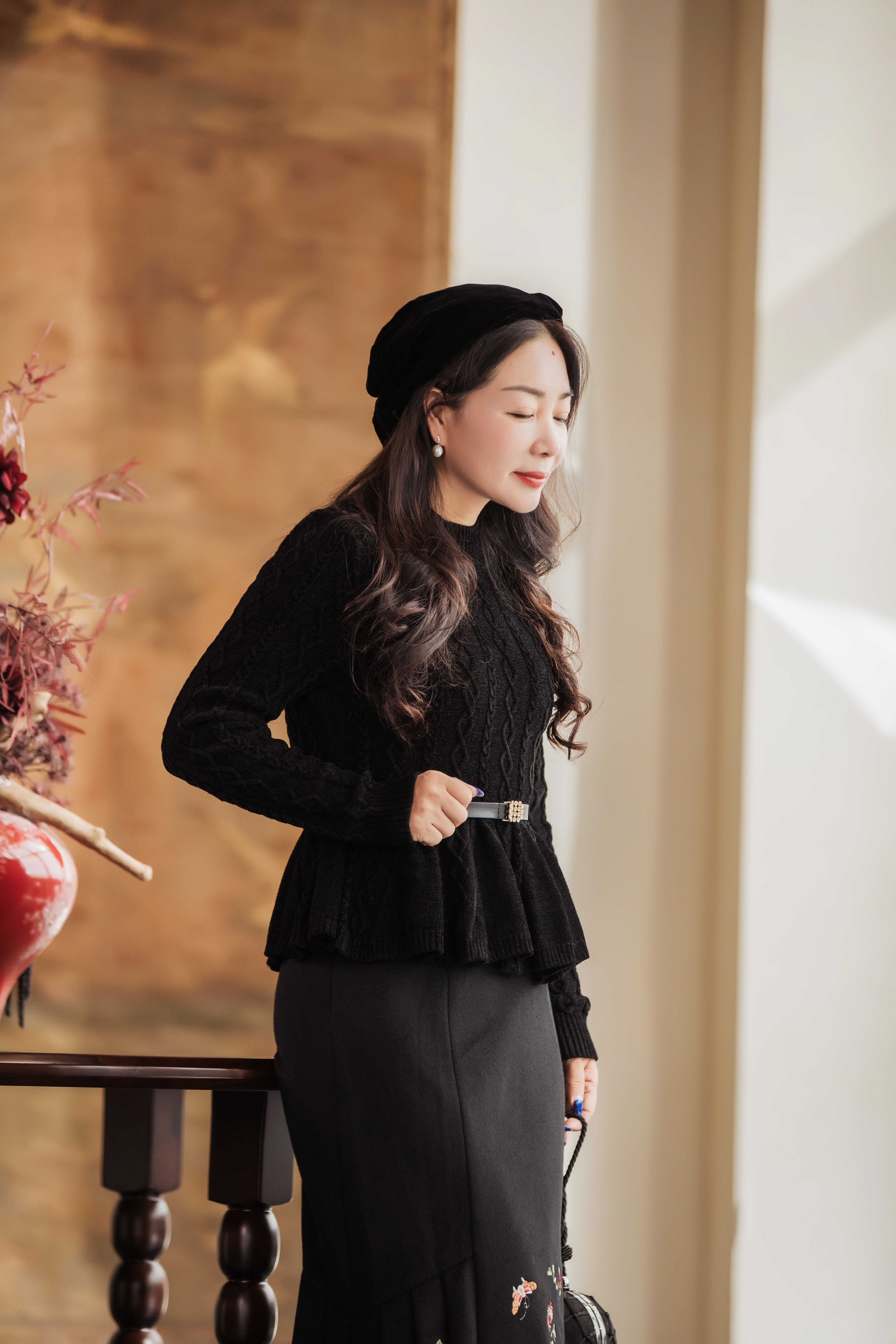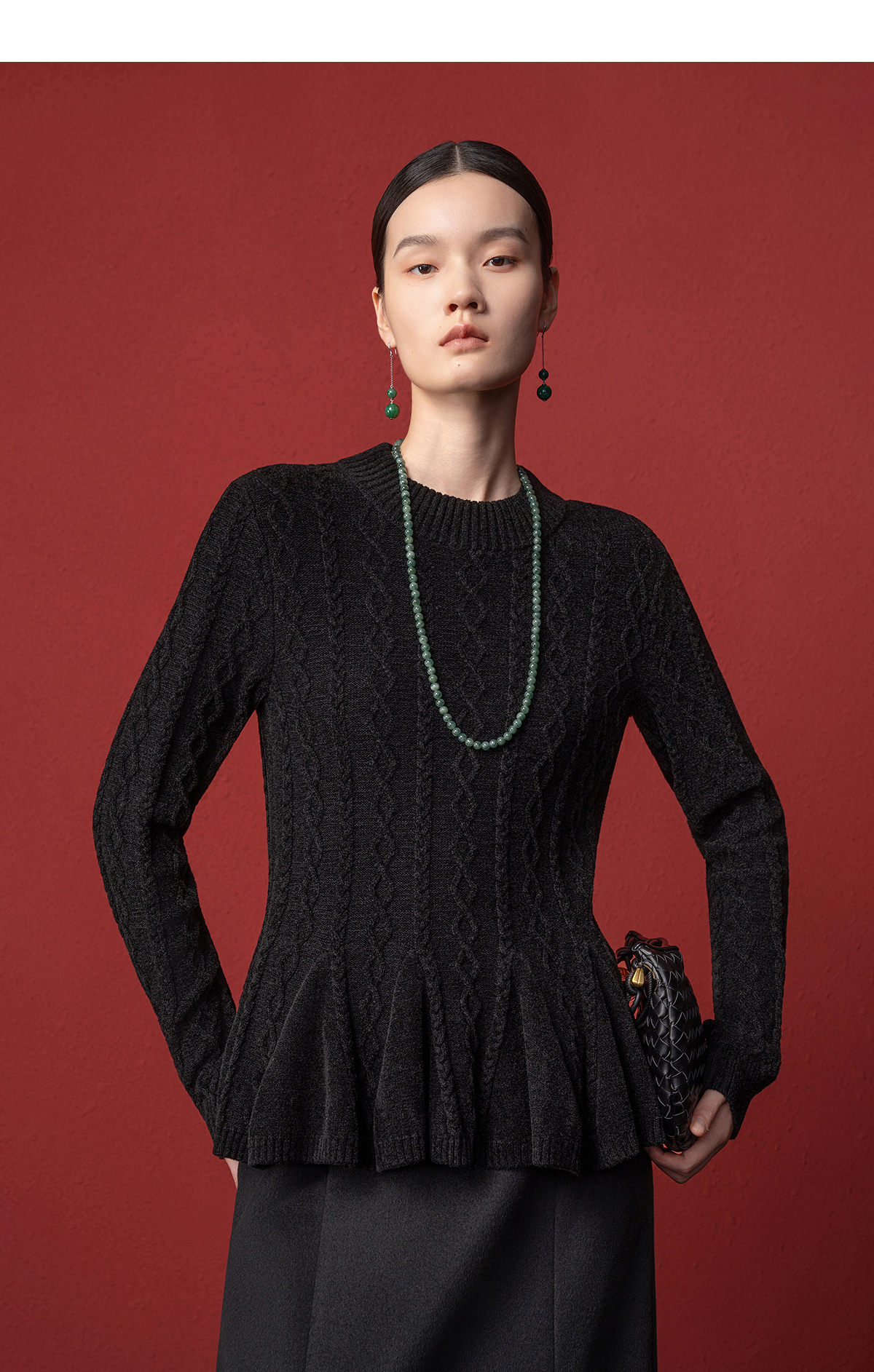 【林栖设计小店】收腰毛织上衣麻花荷叶摆2025秋冬新款毛衣女1954051