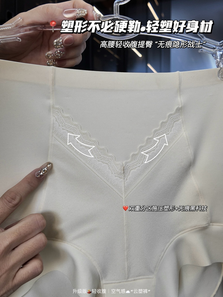 🎬“V形”加压蕾丝高腰塑型1️⃣ 采用革新性V形蕾丝结合高腰剪裁,形成科学🔬加压区,效果远超普通高腰裤! ✅能对饱餐后的小腹产生集中压力,精准收拢“年货肚”,视觉上👀让腰线立刻提升,穿出「紧致😏小蛮腰」!