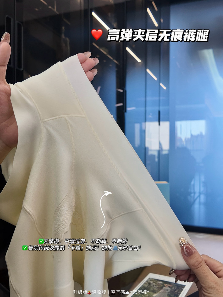 🔥收腹裤界的新年硬核“轻收腹”科技# 🔺① V形蕾丝高腰设计,“靶向”收紧赘肉 🔺② 3D立体剪裁,360紧致包裹,视觉显瘦 🔺③ 高弹夹层裤腿,不卷边、不夹臀!⚠️告别传统收腹裤「卡裆」痛点! 🔺④ 无痕+密缝工艺,贴身无痕不磨肤! 年后塑形小心机,😏堪称“作弊级”单品‼️