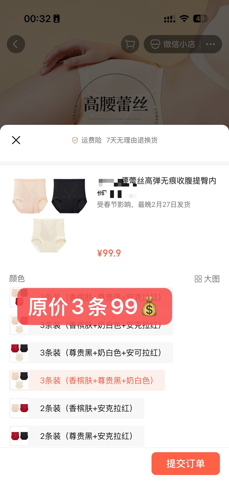 特别提醒(内衣类贴身衣物,必须保证没穿洗过,包装完好,退货有专人验货,不符合的一律不予处理,客户需自行承担运费)