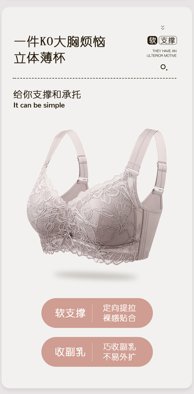 明净清新 文胸(VIP) 内衣女薄款大胸显小无钢圈舒适调整型收副乳防下垂文胸