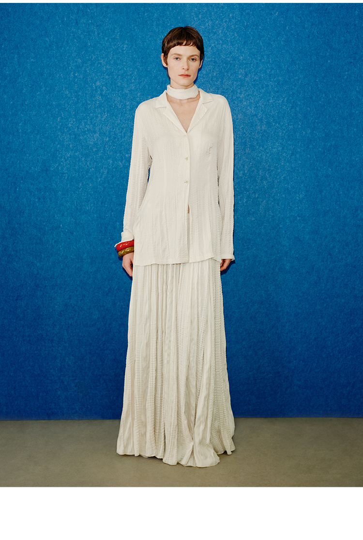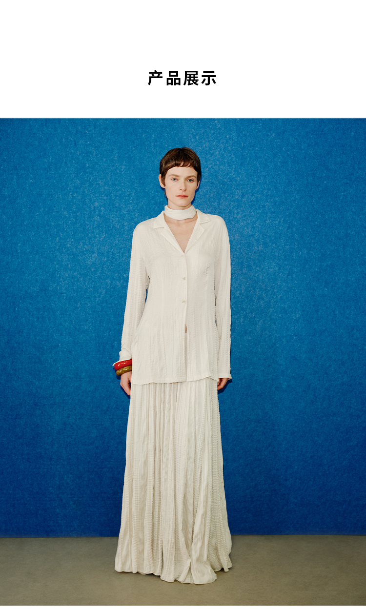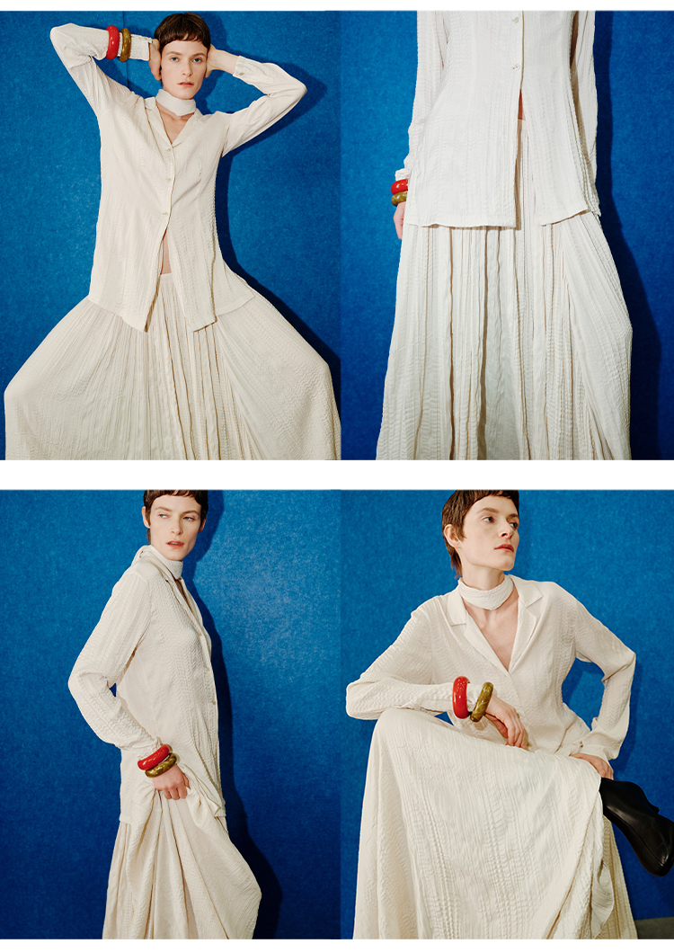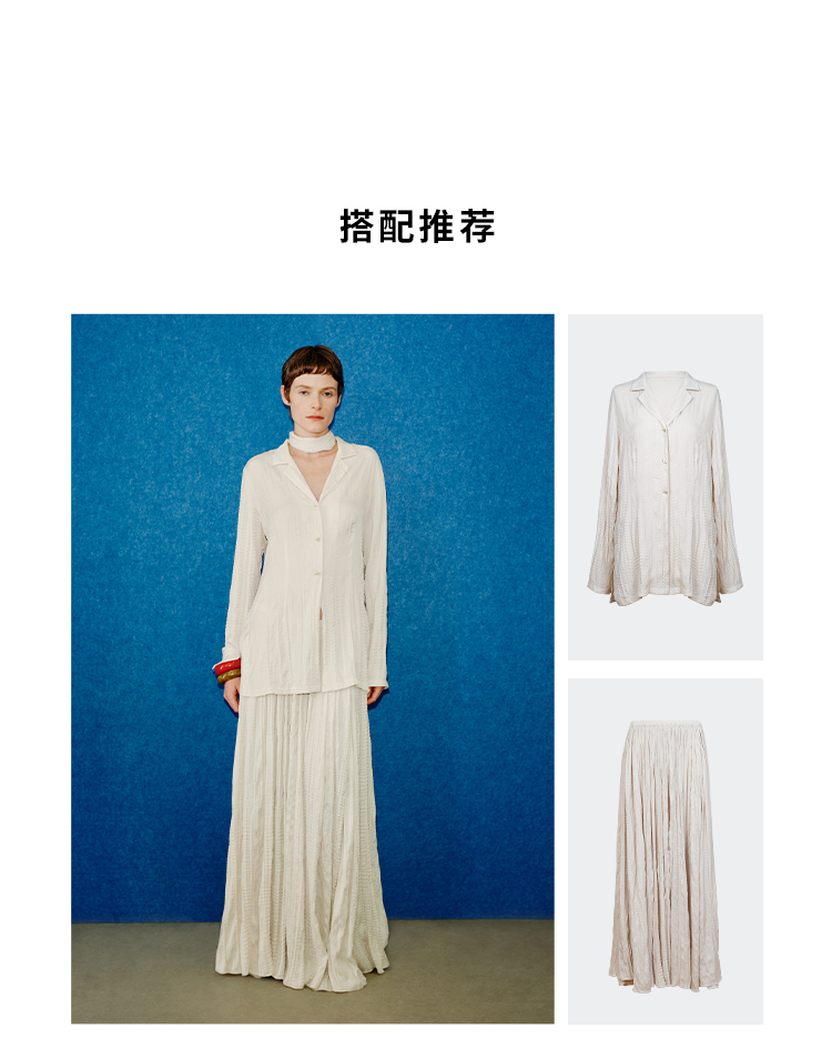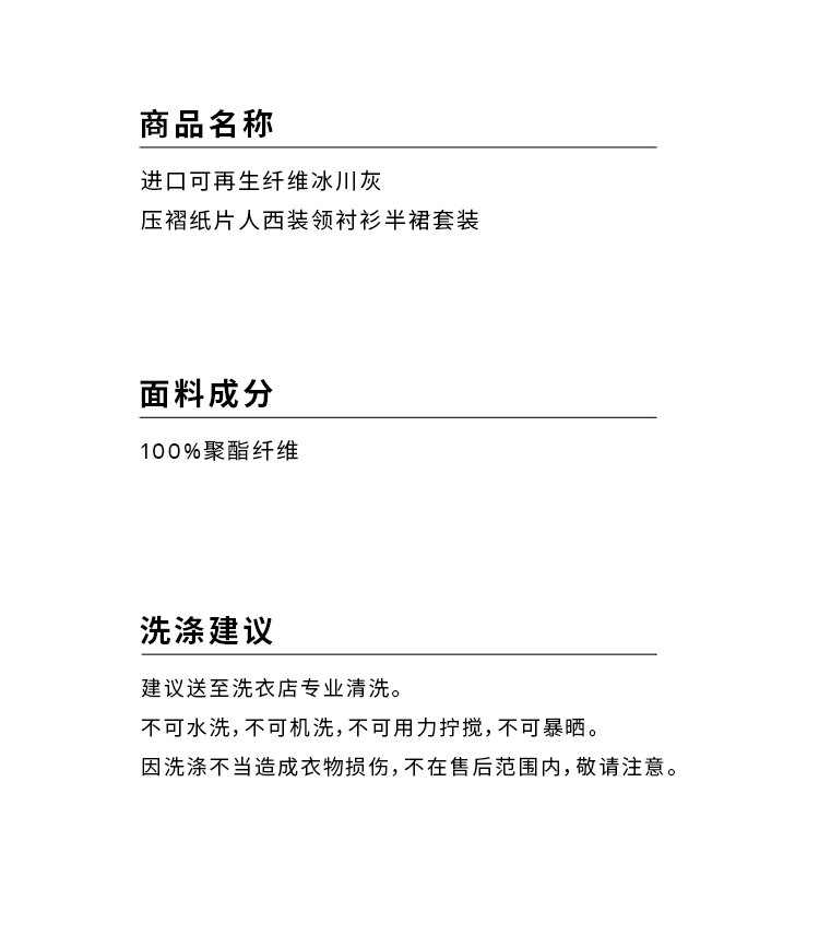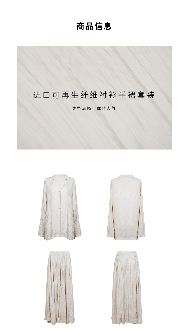 HIDEMI 进口可再生纤维冰川灰压褶纸片人西装领衬衫半裙套装