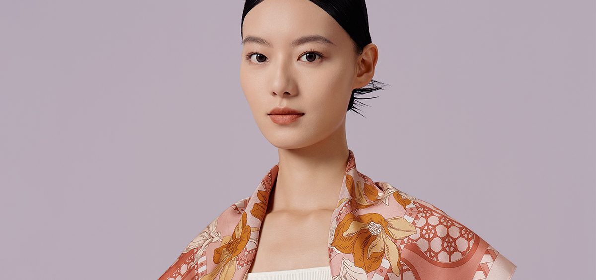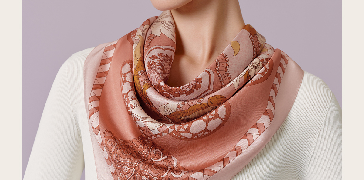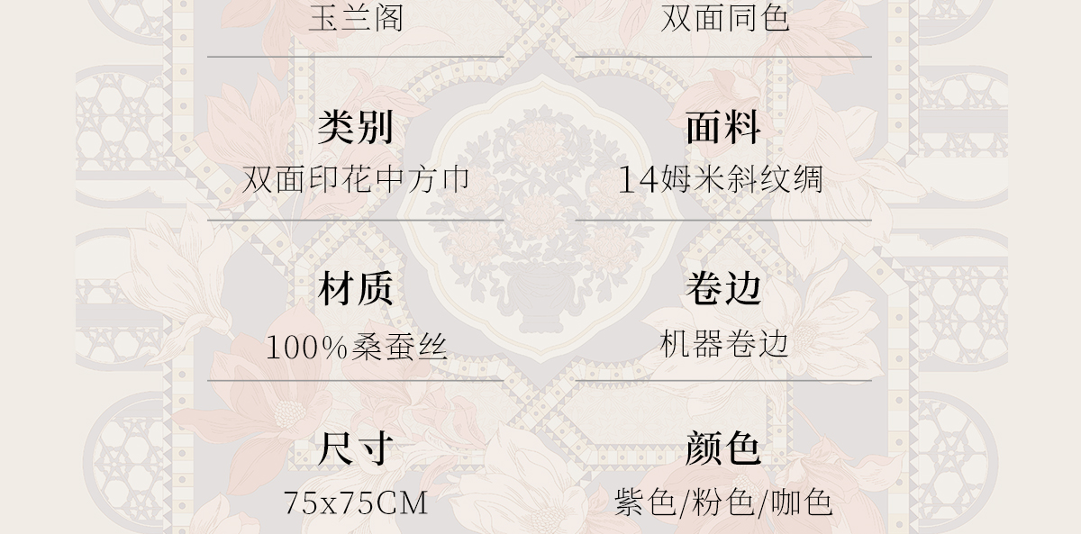 万事利“玉兰阁”75厘米双面印花中方巾
