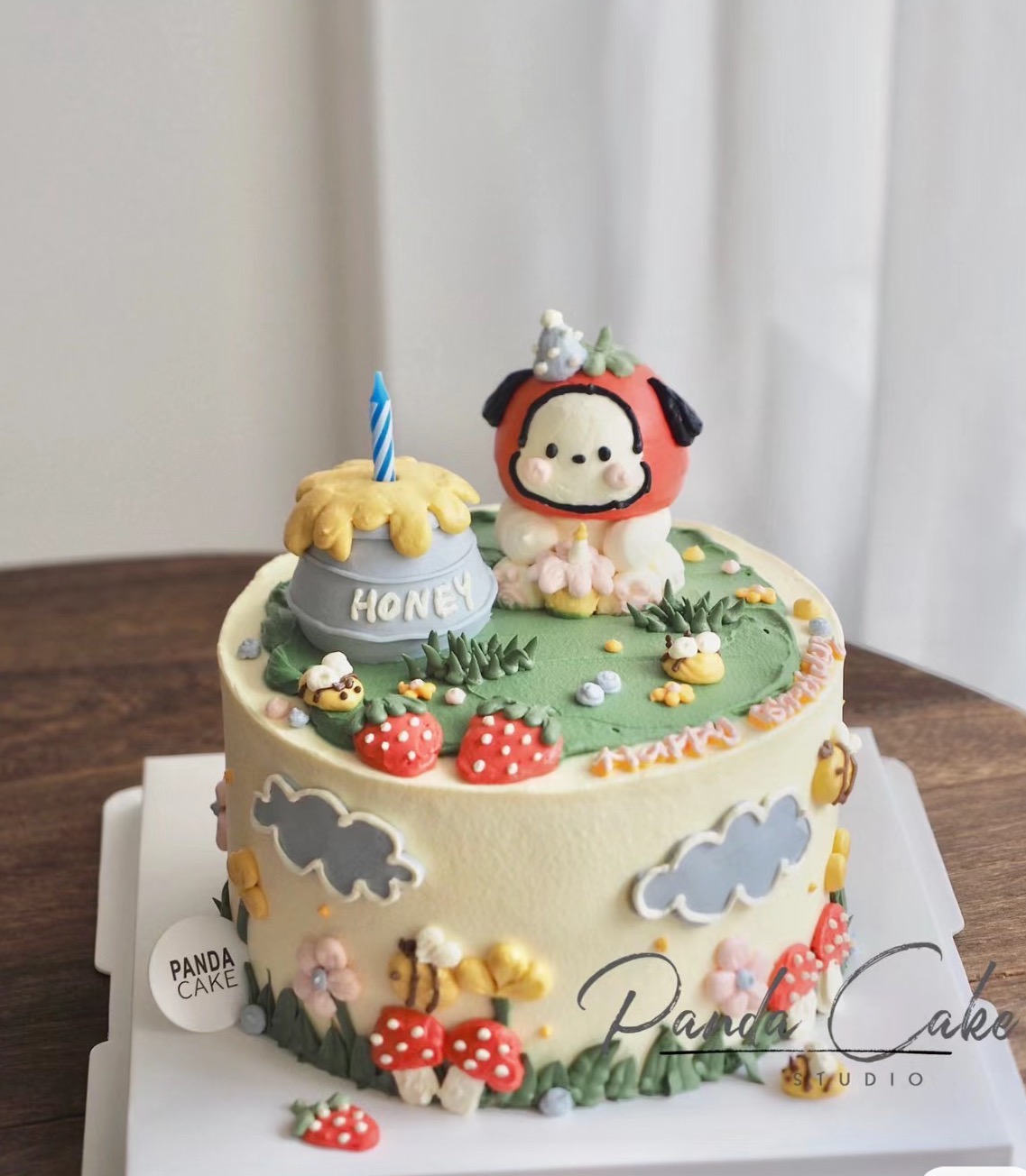 【臻品系列】---手绘立体奶油霜公仔【可爱狗宝宝吹蜡烛】蛋糕