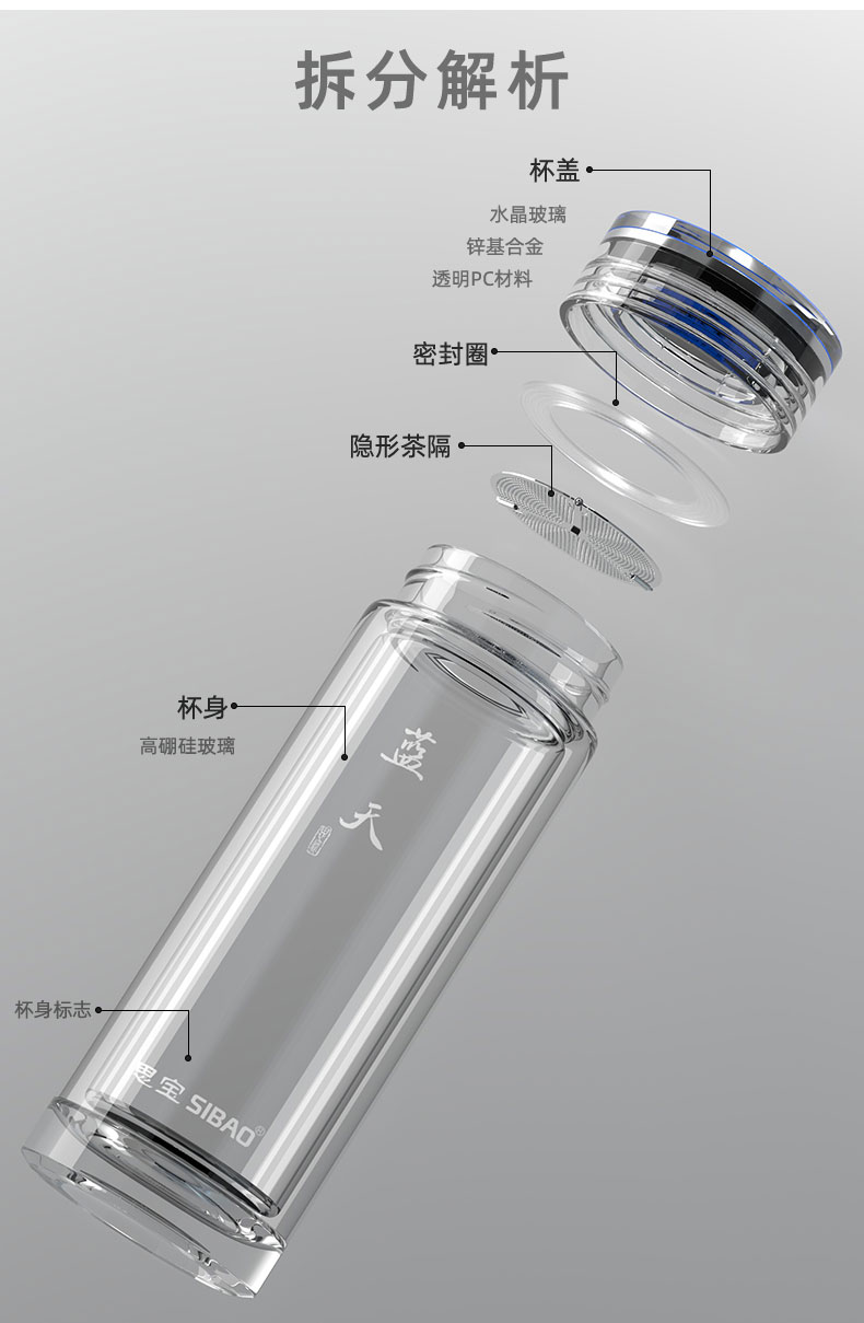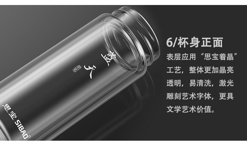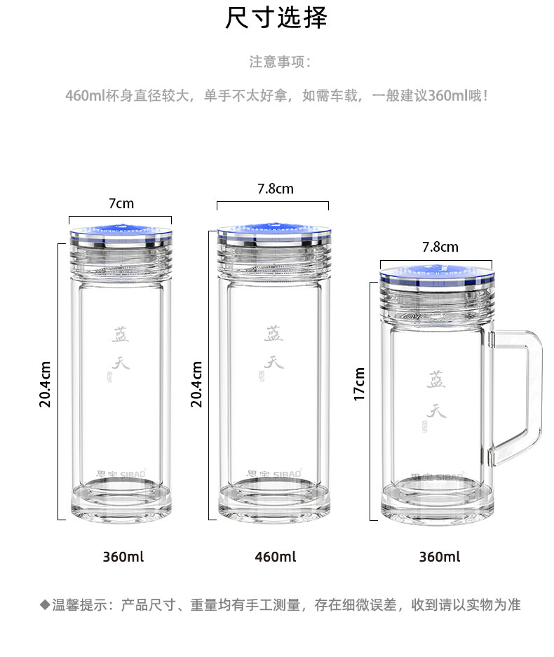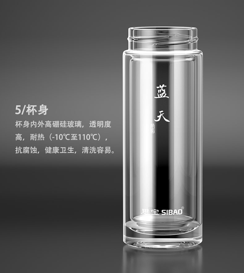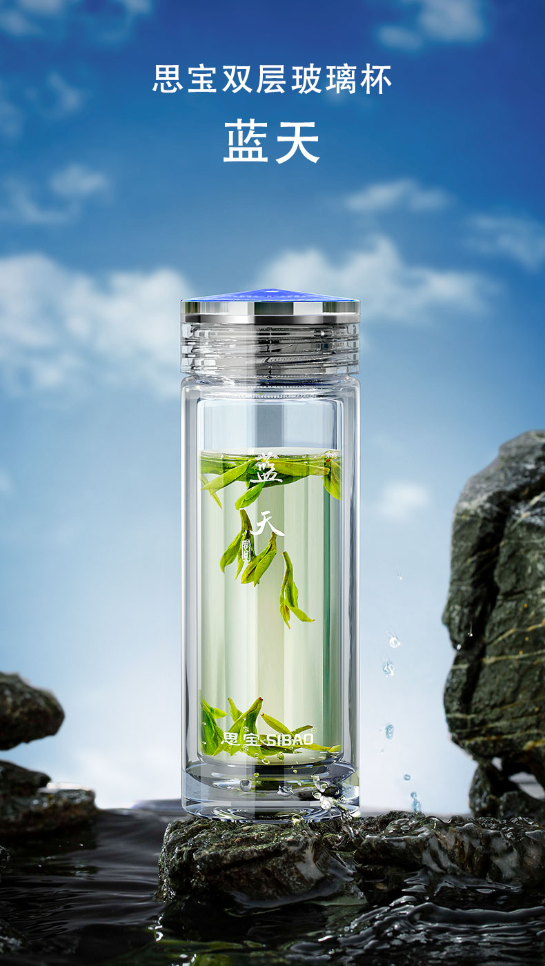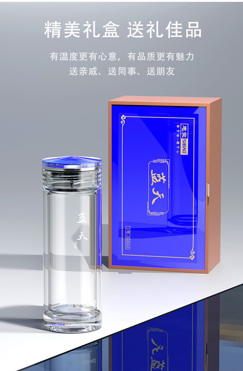 思宝旗舰店蓝天双层玻璃杯办公杯便携车载礼盒包装