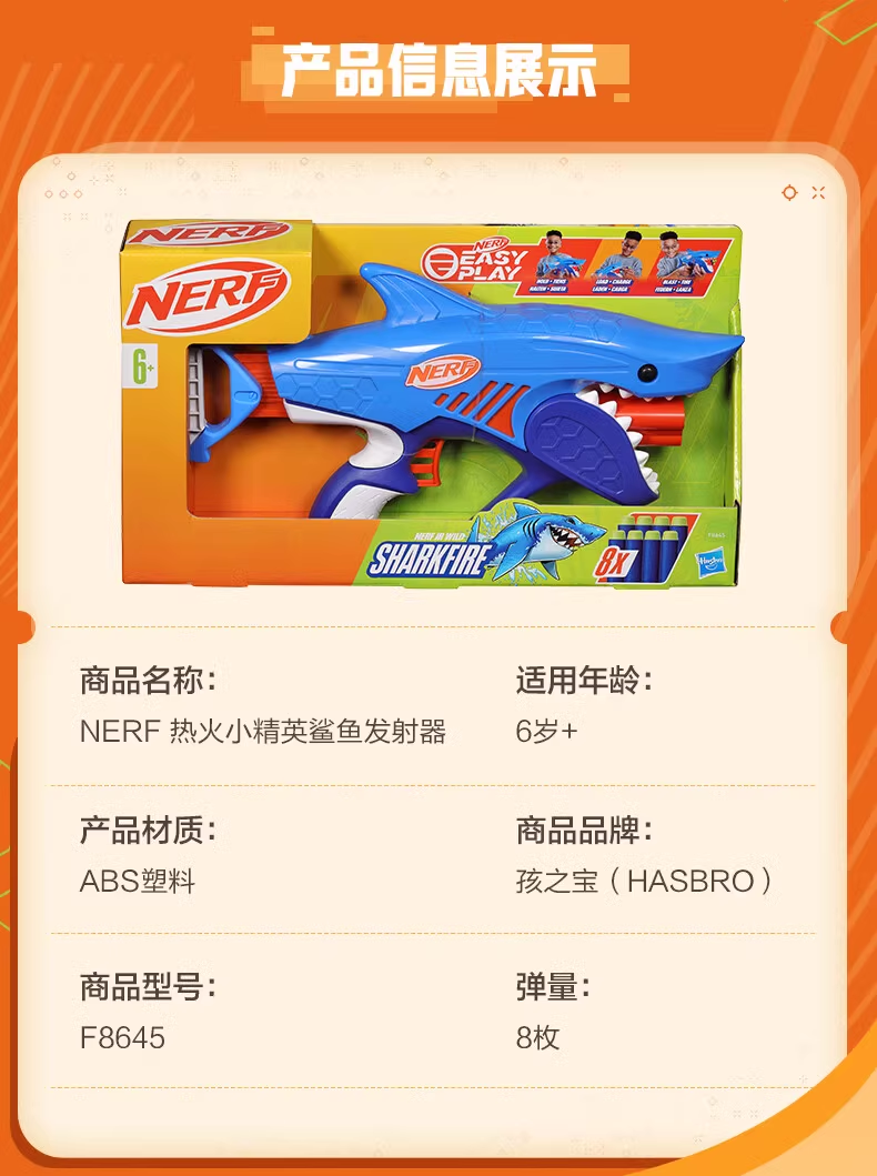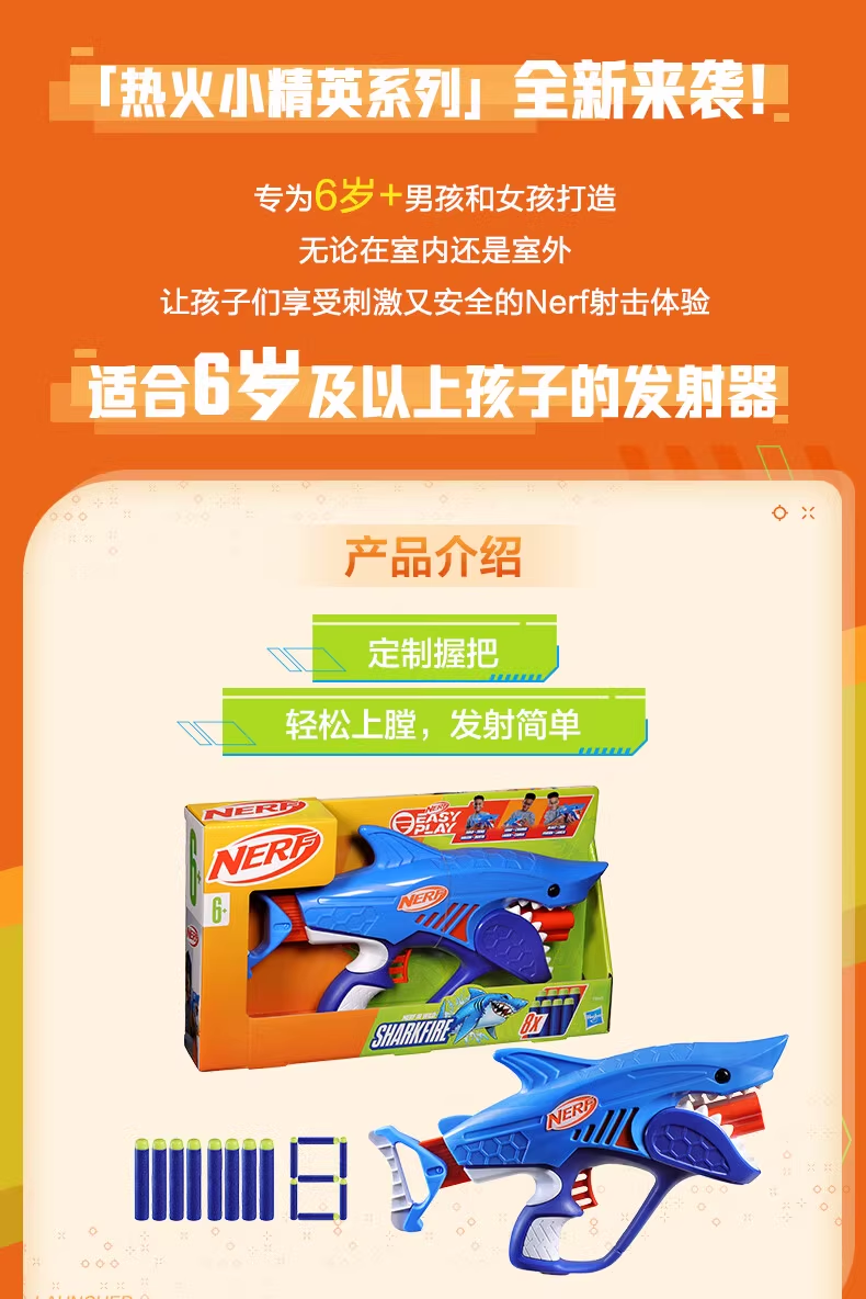 孩之宝Hasbro NERF 热火小精英鲨鱼发射器HASCF8645AW00