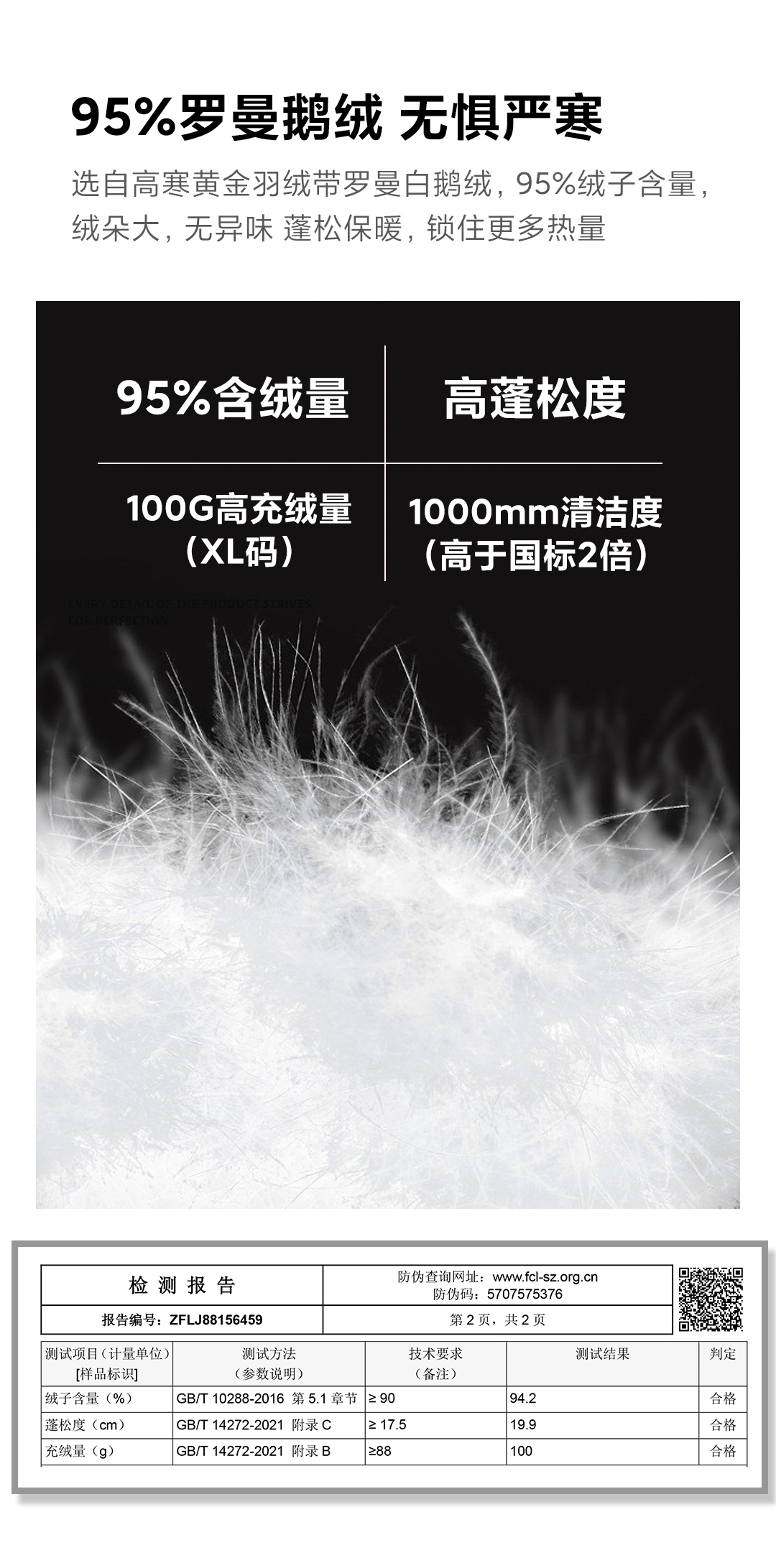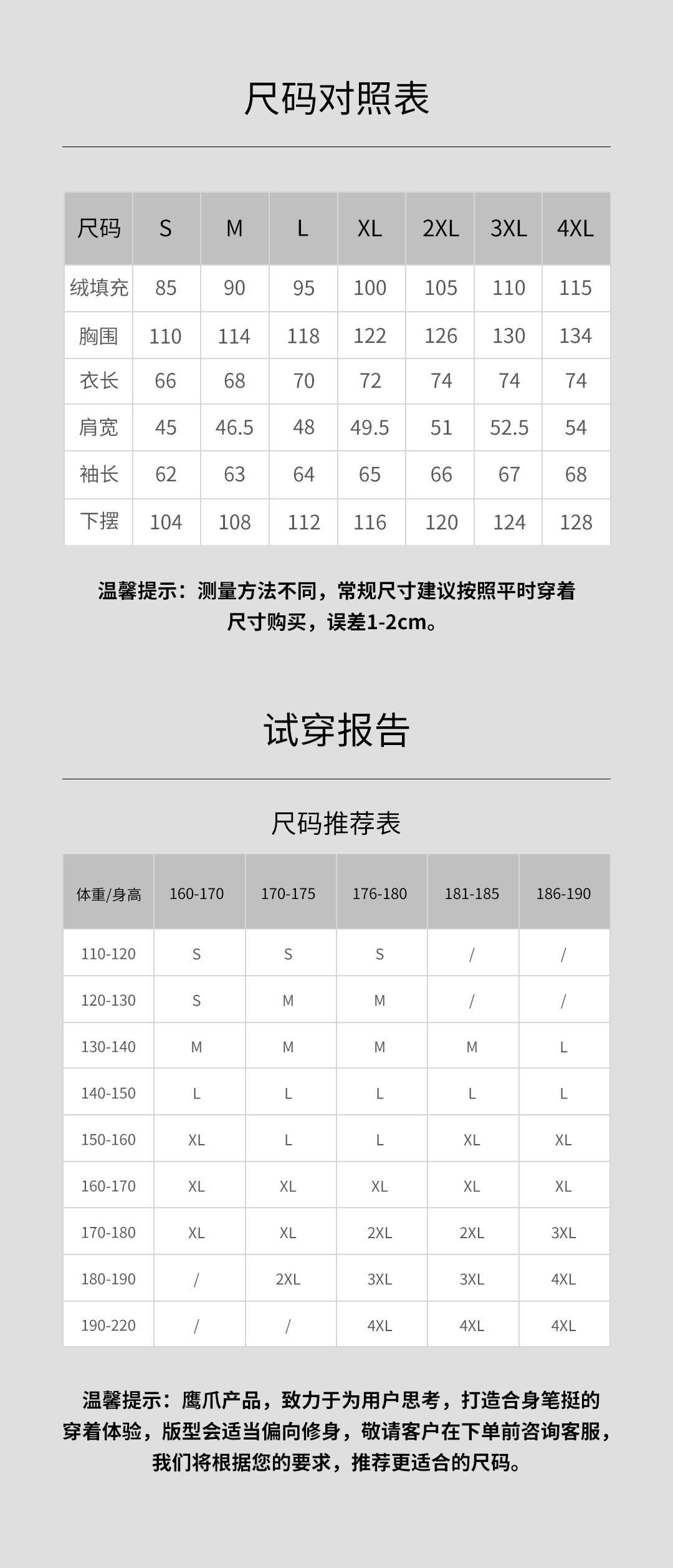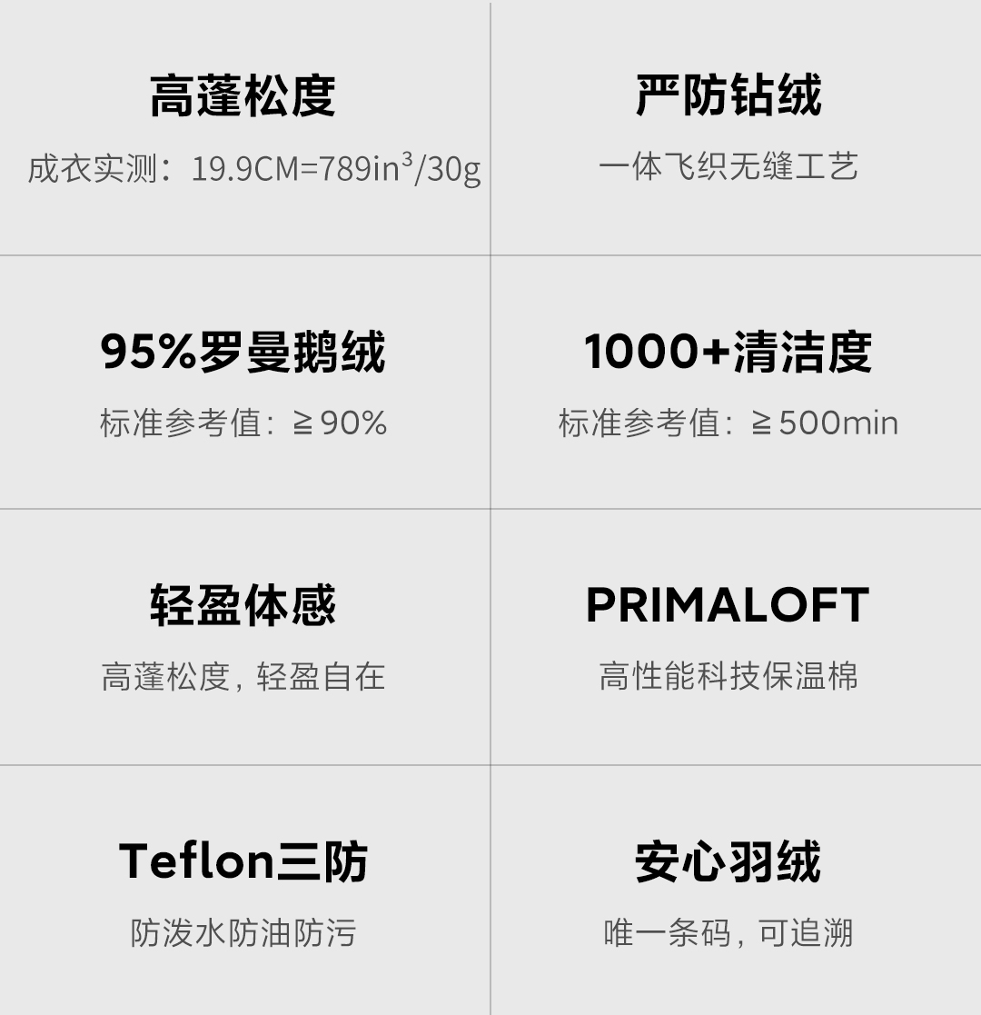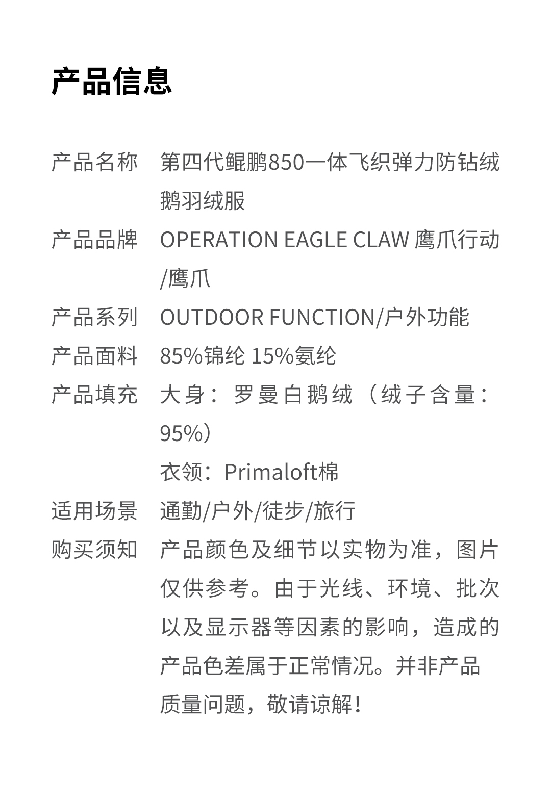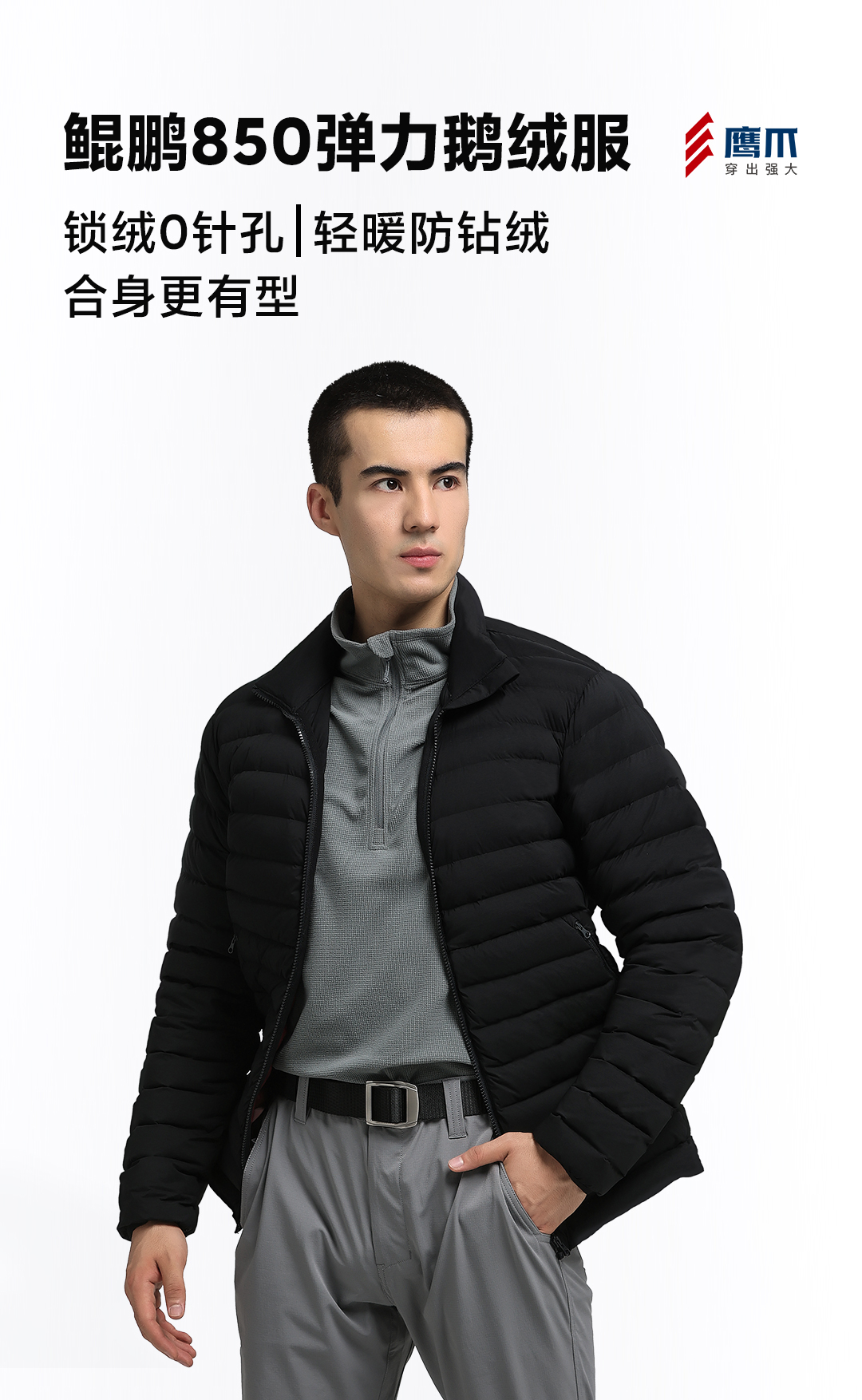 鹰爪第四代鲲鹏850一体飞织弹力防钻绒鹅绒服羽绒