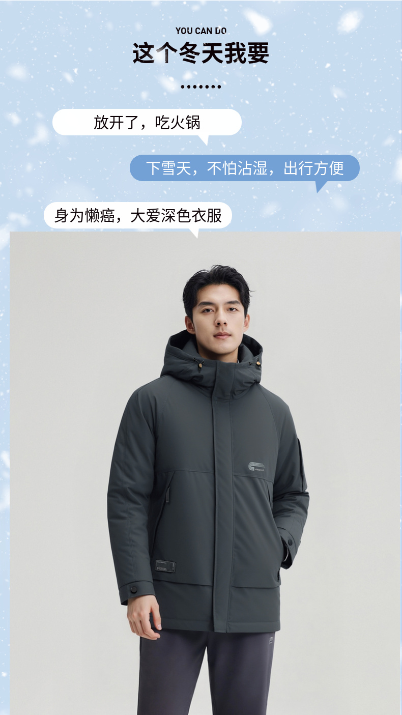 【含鸭绒】圣得西男士保暖亲肤户外羽绒服2025冬季新款宽松连帽外套