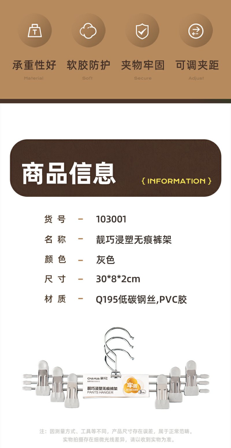 【茶花】靓巧浸塑无痕裤架软胶包边