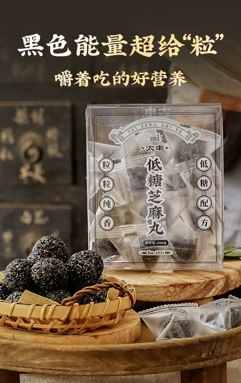 太丰食品低糖黑芝麻丸健康孕妇儿童滋补黑芝麻球100g