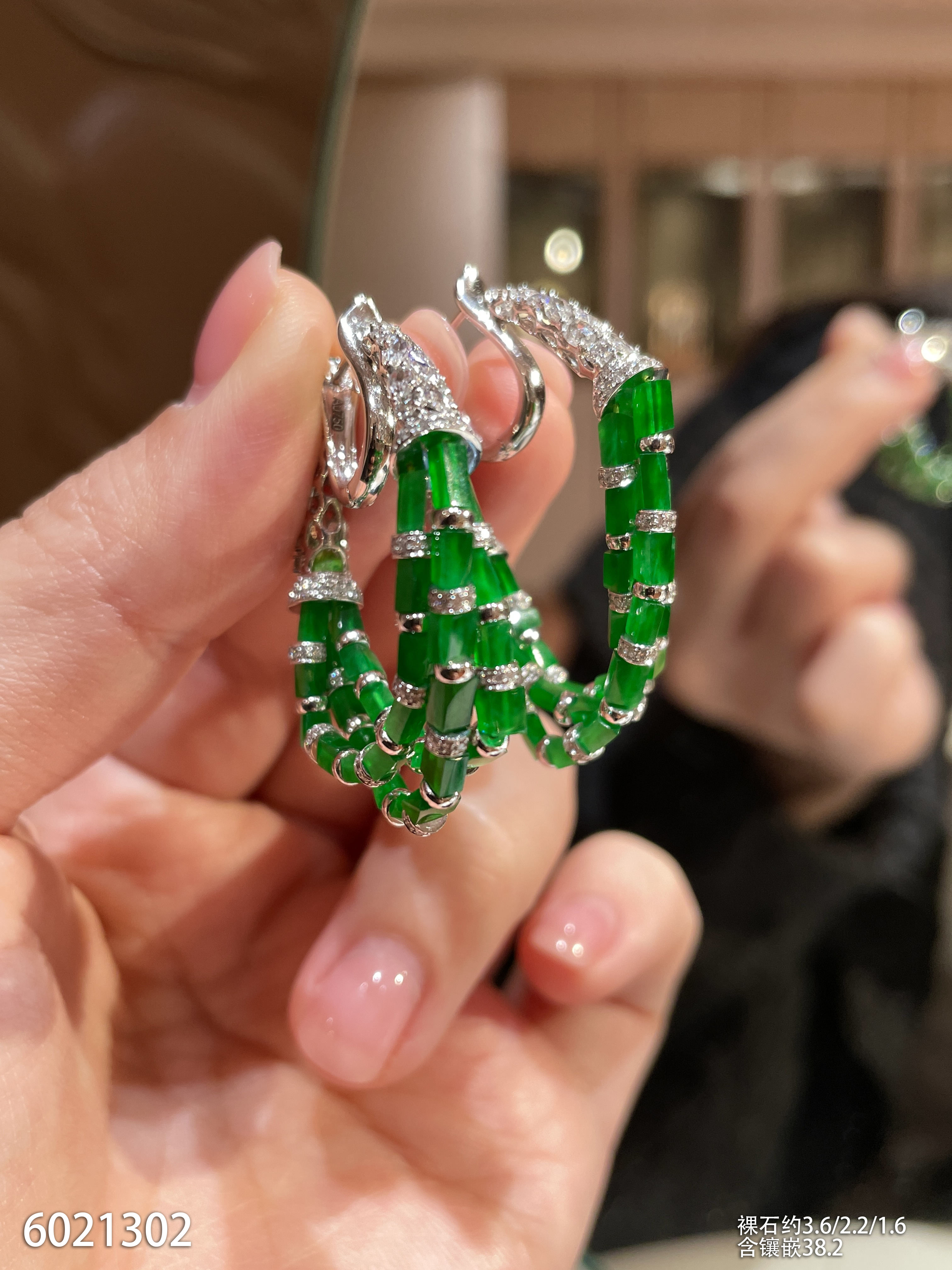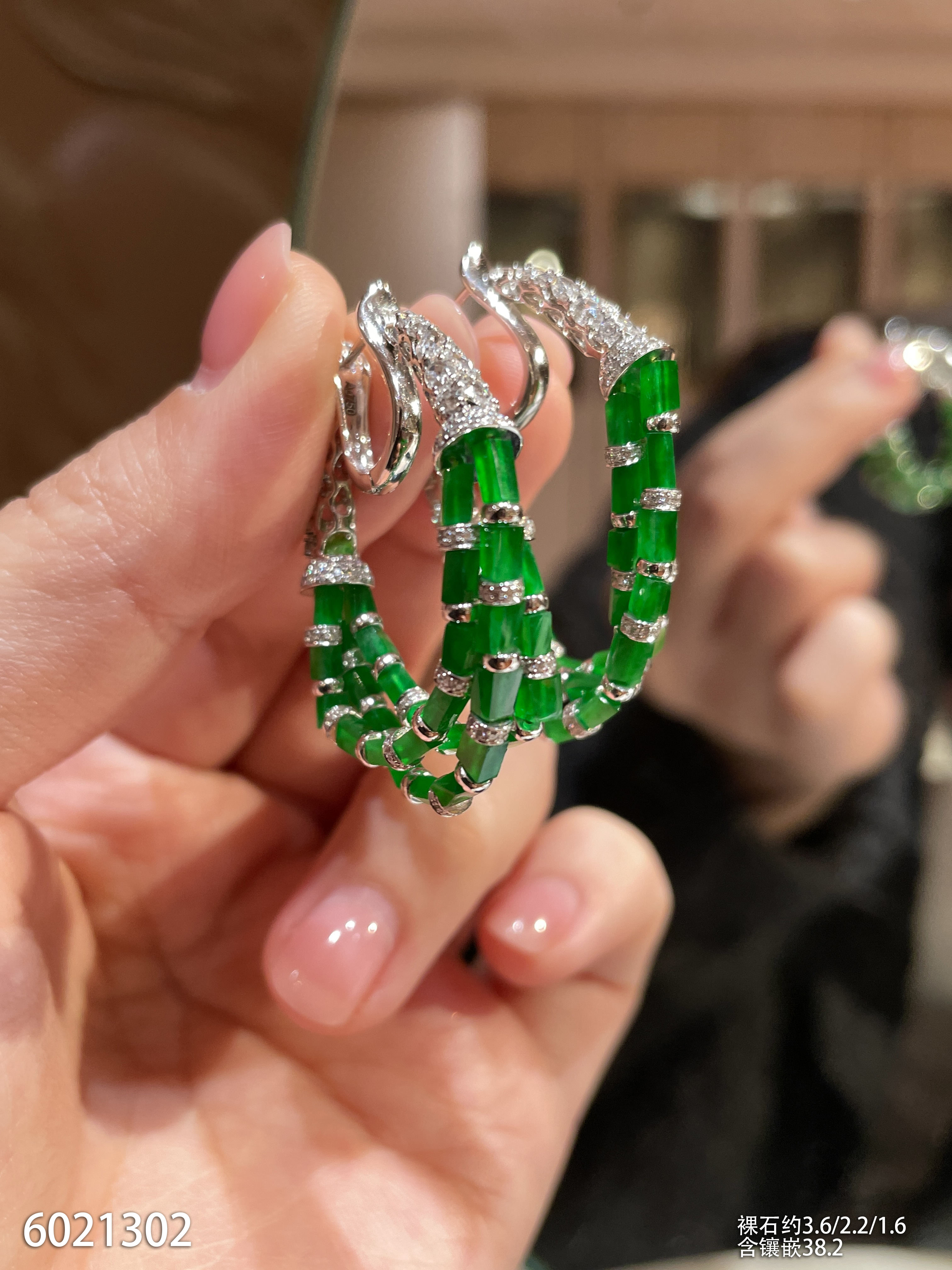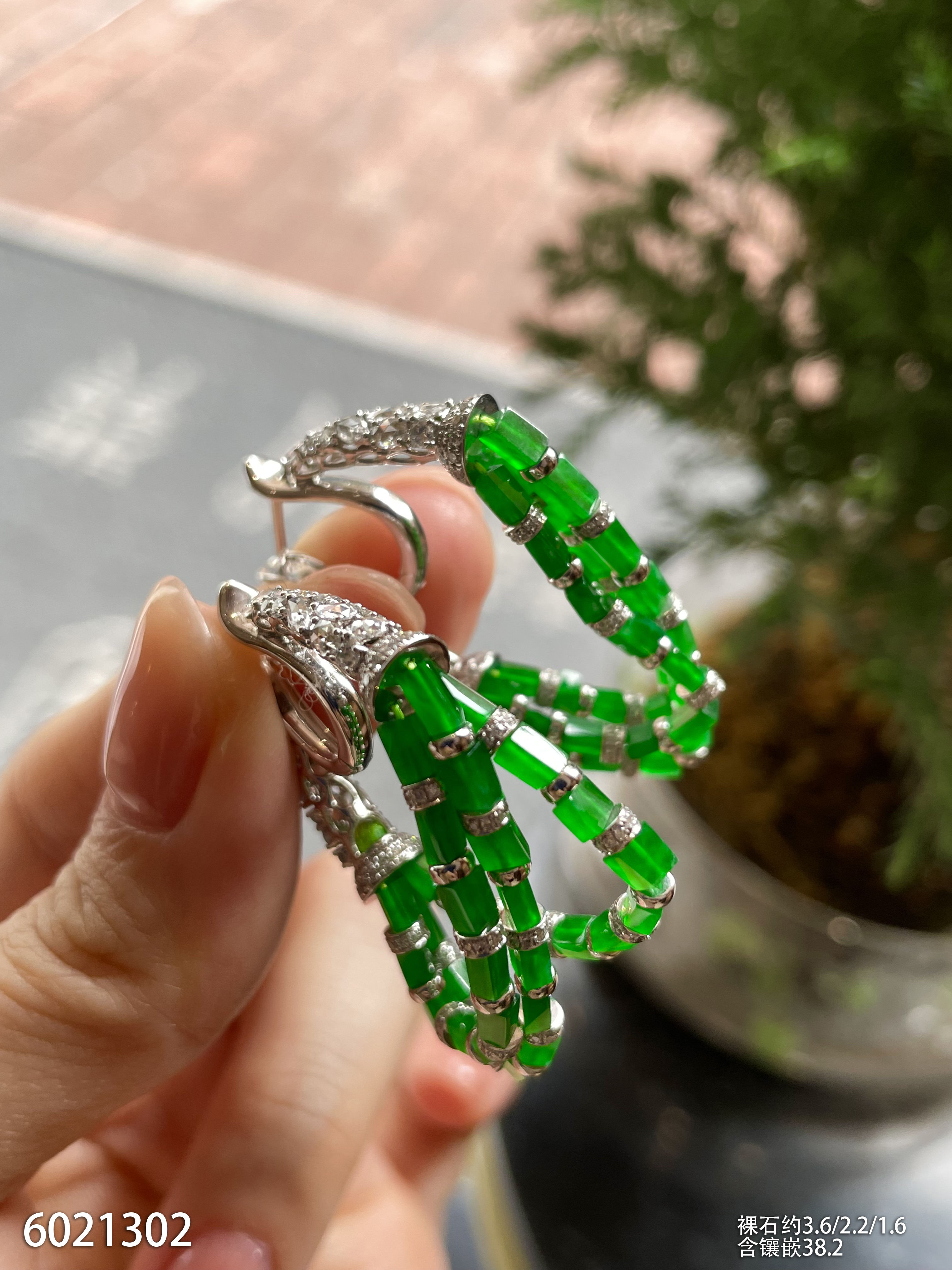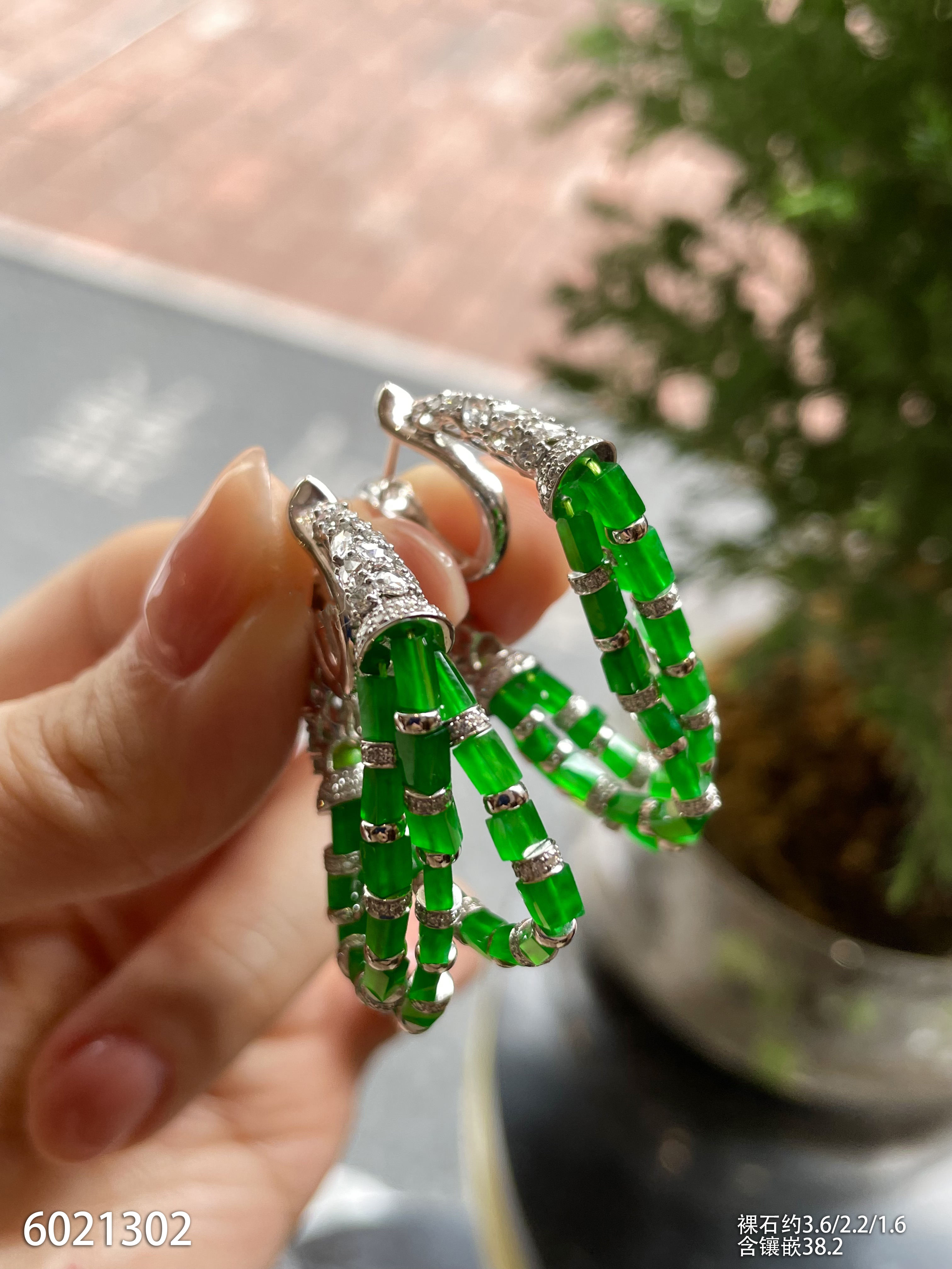 81-1072707,老坑玻璃种帝王绿蛋面耳坠,具体价格微信咨询