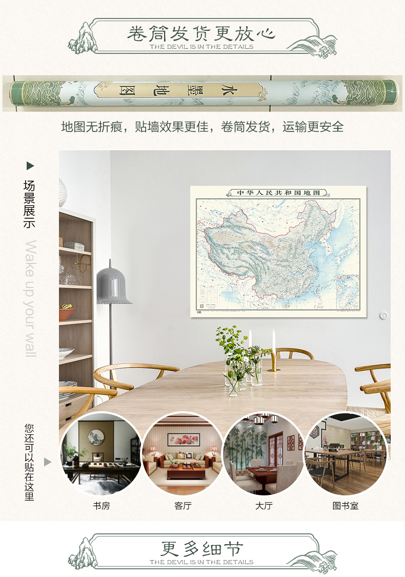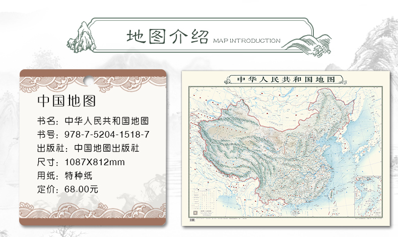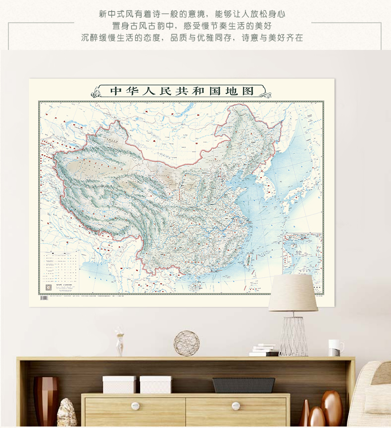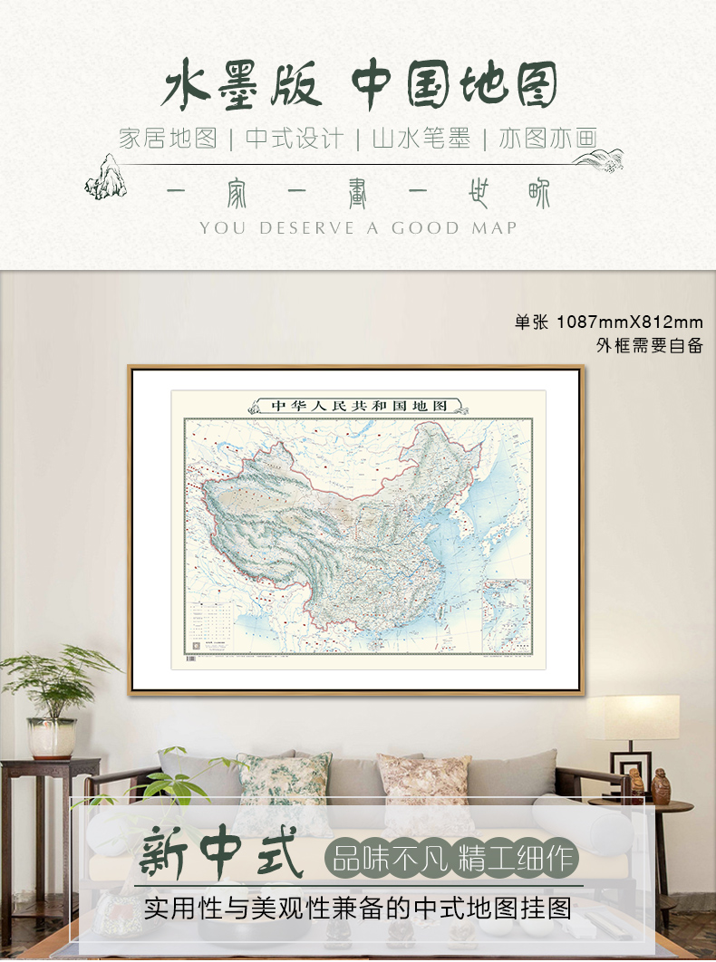 中华人民共和国地图 水墨版 中国政区 中国地形 水墨风格 山水画风格 创意地图 装饰地图 中国地图出版社 新品上市