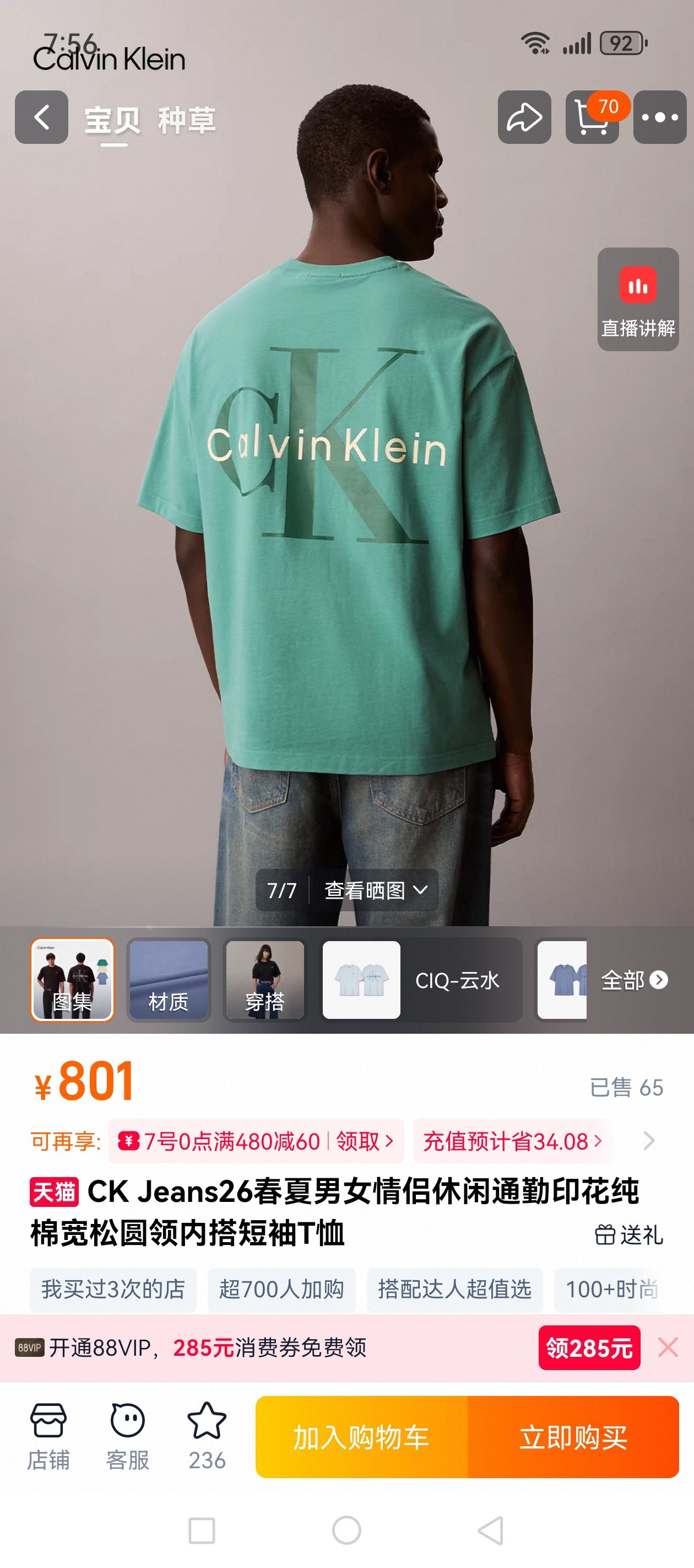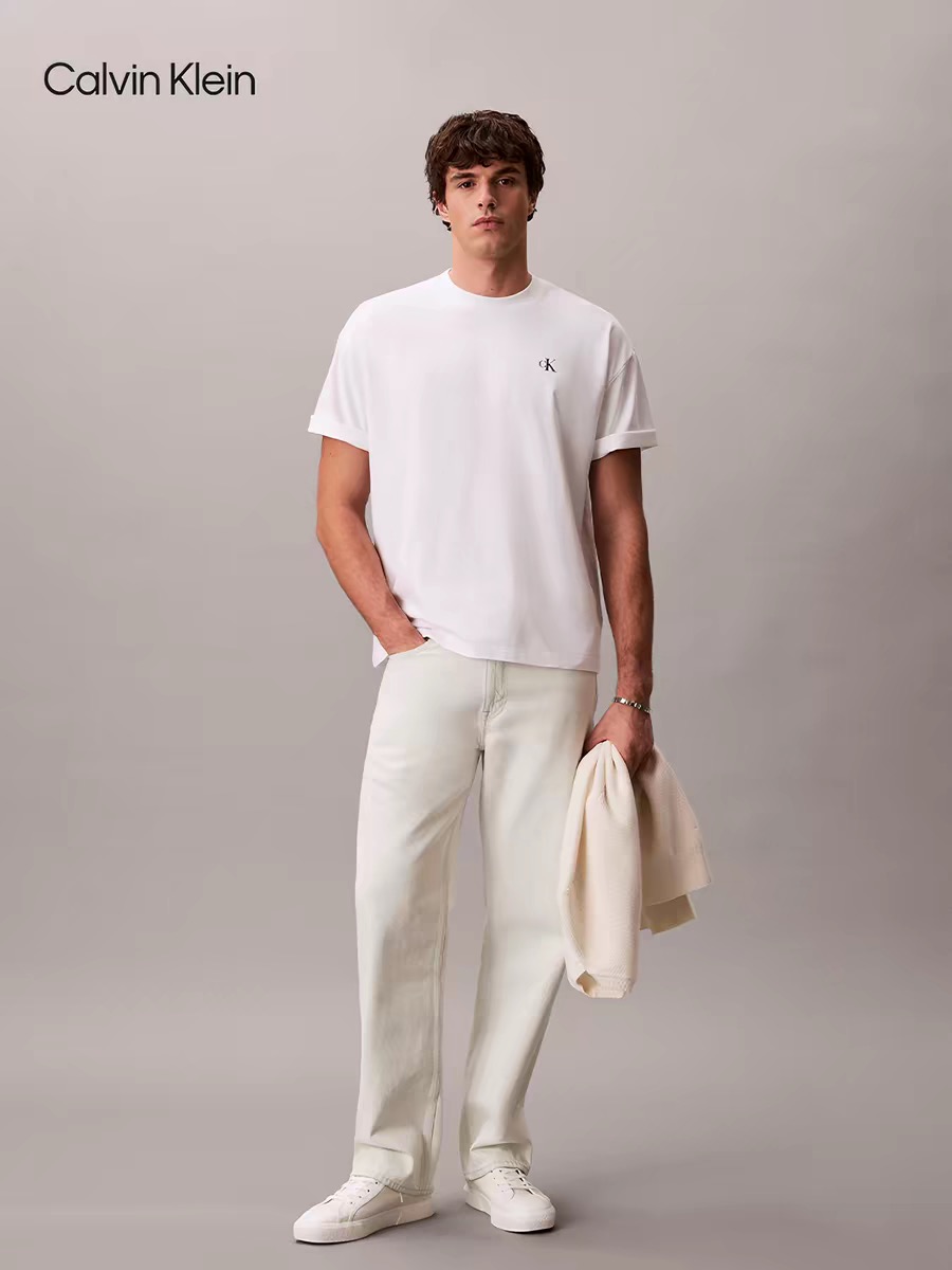 休闲通勤印花纯棉宽松圆领短袖T恤 32支奥代尔纯棉面料舒适,胸前和背面印花字母图案。