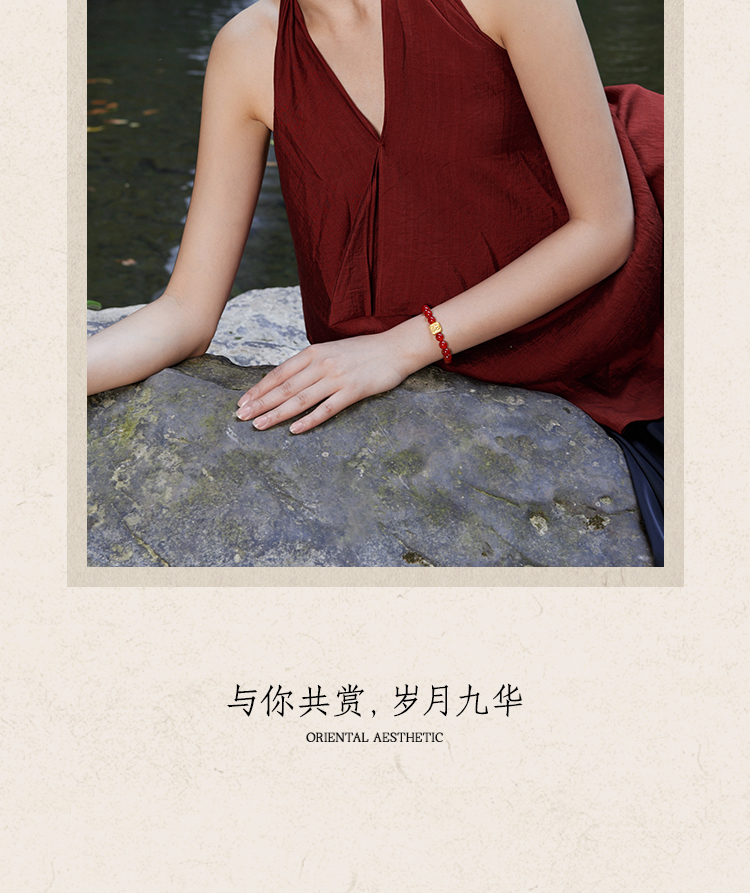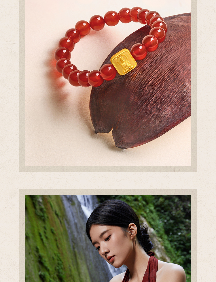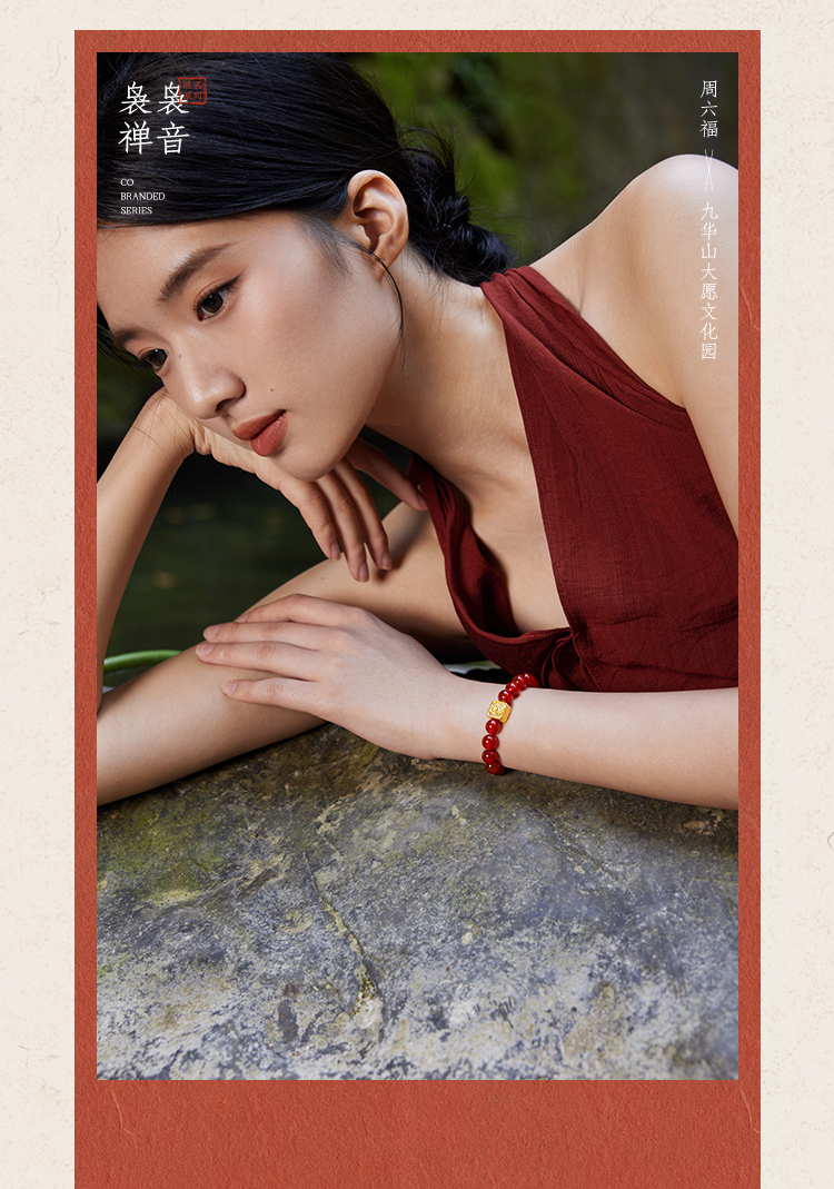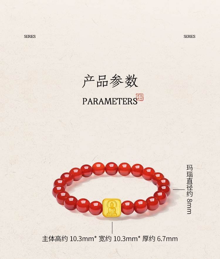周六福黄金手串男女5d硬金定价九华山联名鸿运玛瑙足金祥和之光