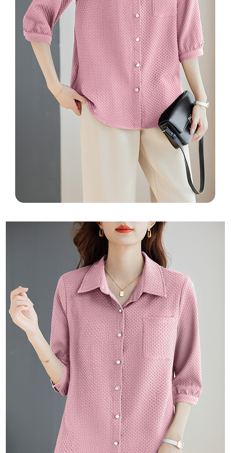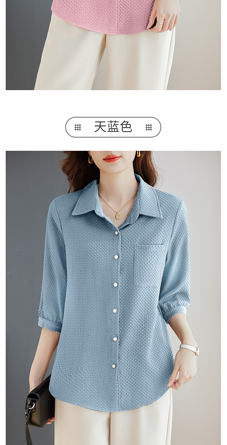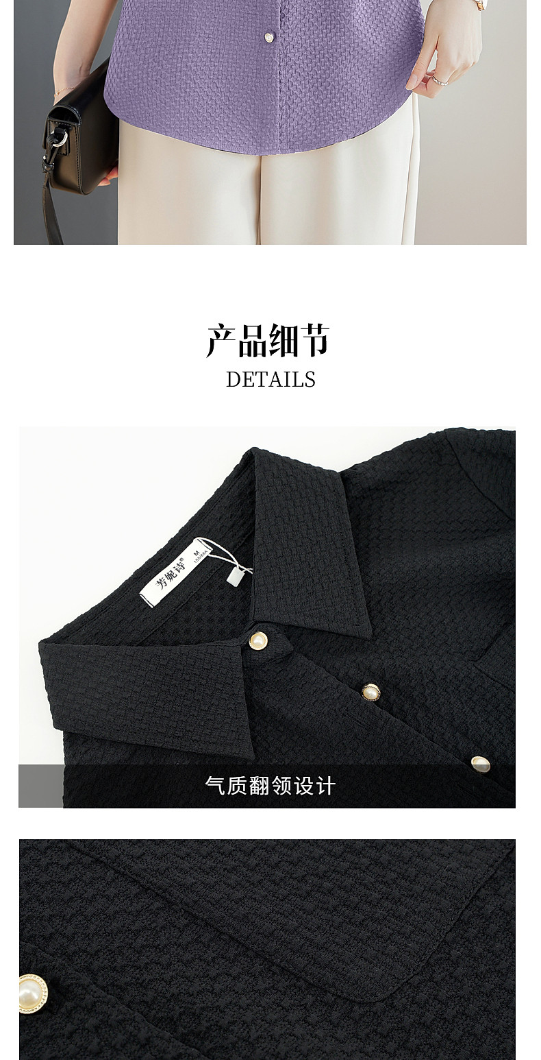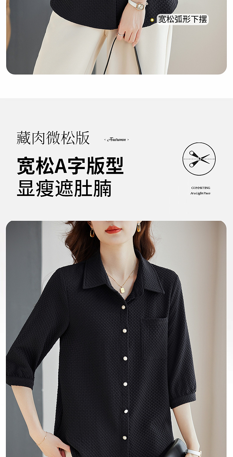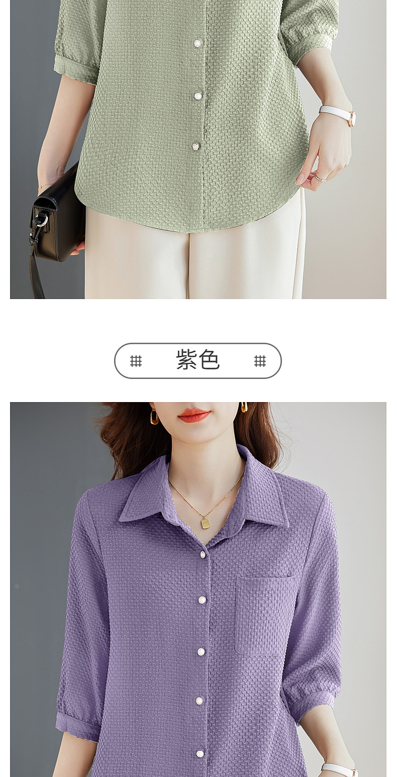 紫色七分袖女士衬衫高级感大码女装翻领衬衣春秋2025新款胖mm上衣