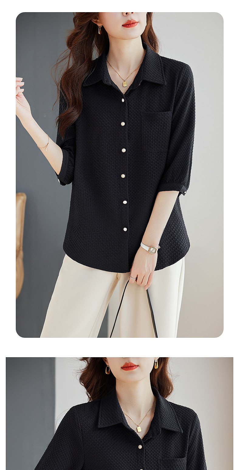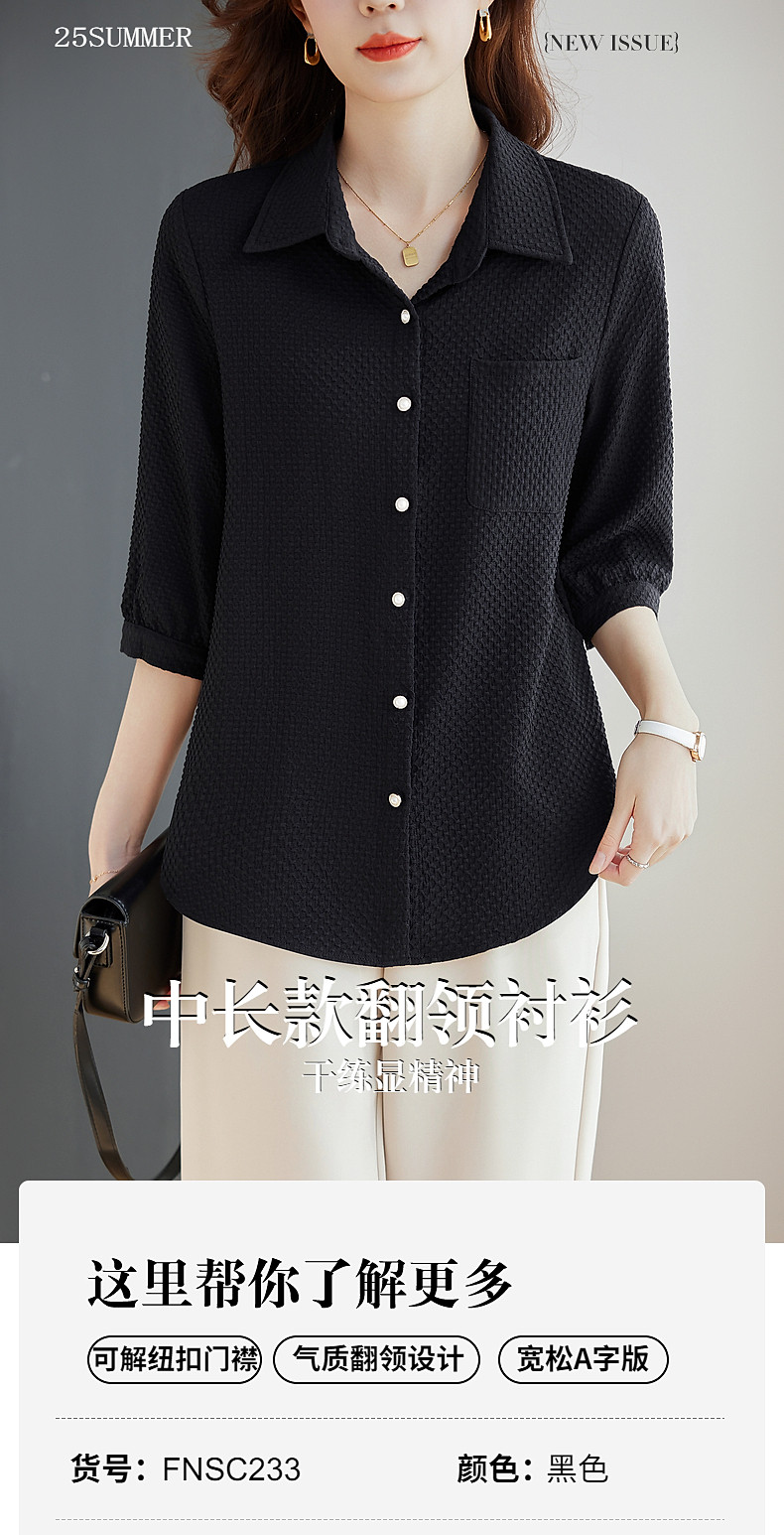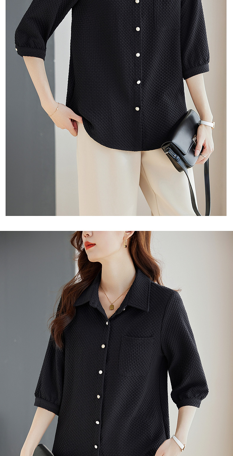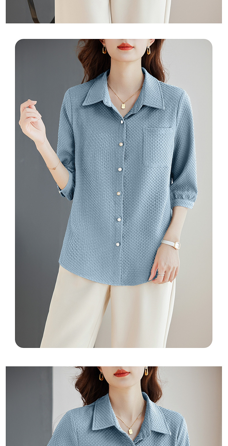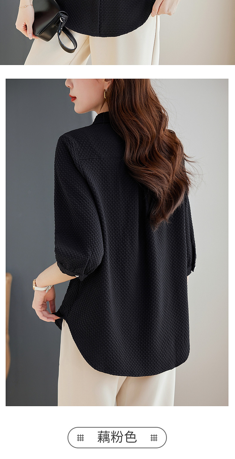 紫色七分袖女士衬衫高级感大码女装翻领衬衣春秋2025新款胖mm上衣