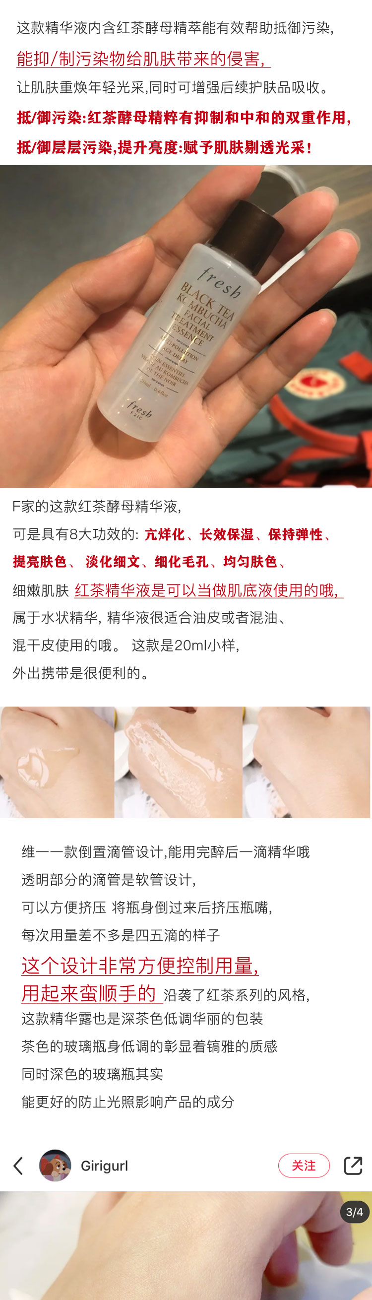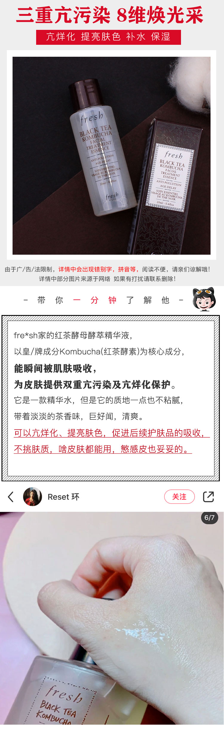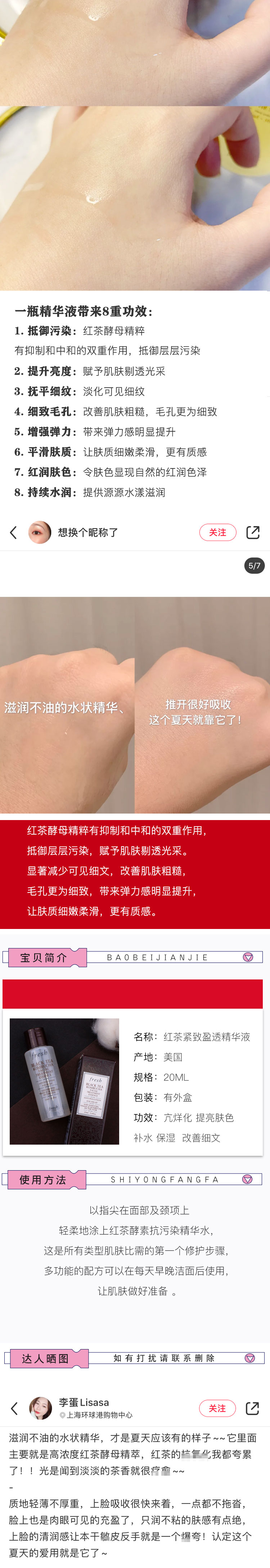 黑茶酵母精萃水 Fresh馥蕾诗红茶紧致盈透精华液20ml抗污包邮小样JPY带授权招加盟代理