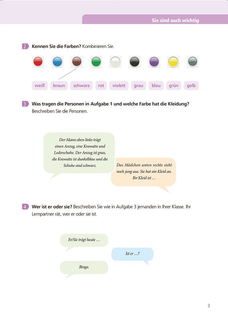 《新一代大学德语》突出了“以学生为主体”“以任务为导向”“以能力为目的”的教学理念,强调了德语学习过程中的自我文化主体意识,倡导了线上线下混合的教学模式。《新一代大学德语》系列教材共分三个级别,各级别都有学生用书、教师用书、词汇语法手册和配套的学习视频。