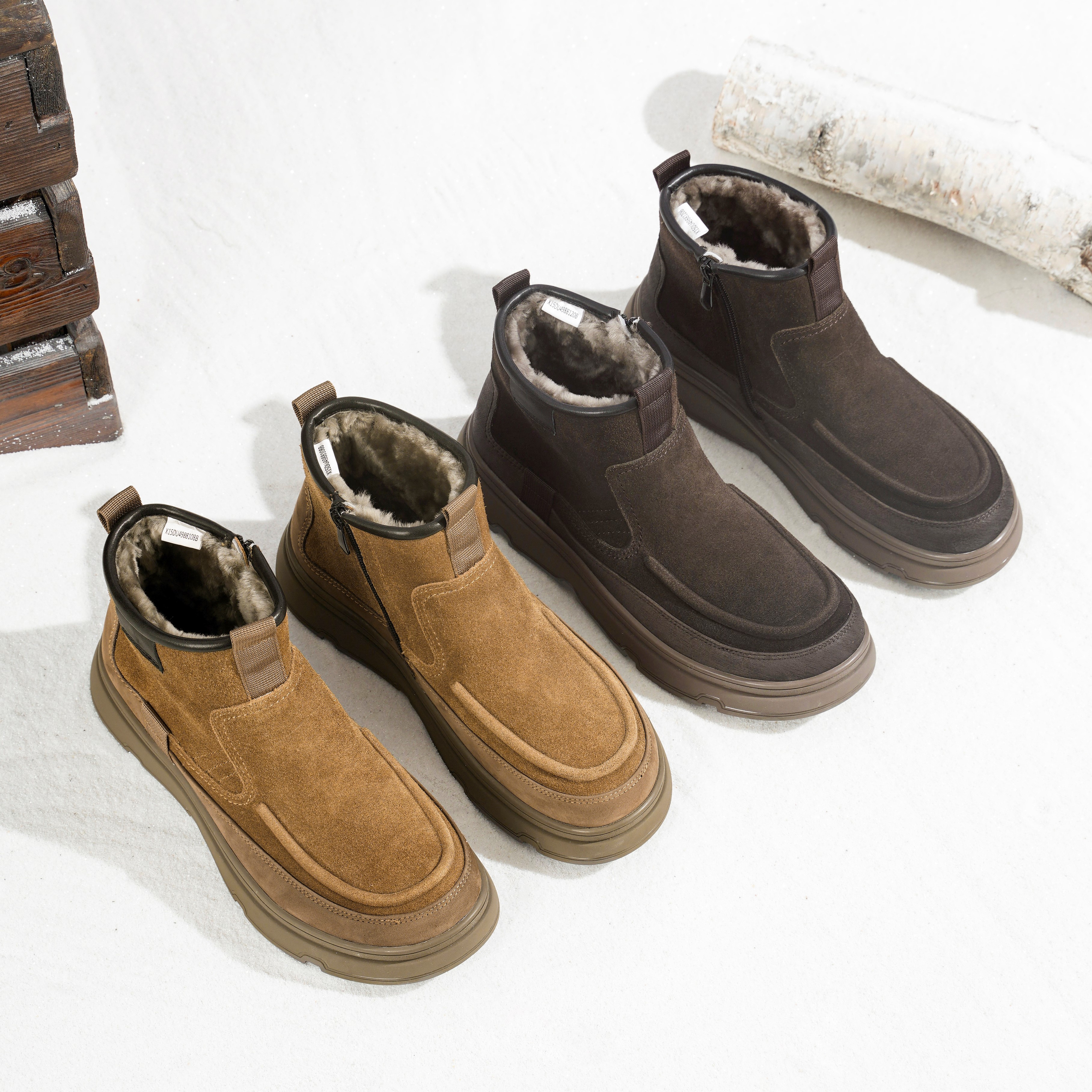 西村名物2025年冬季新款舒适厚底防滑绒毛内里保暖男靴休闲男靴X15DU49881