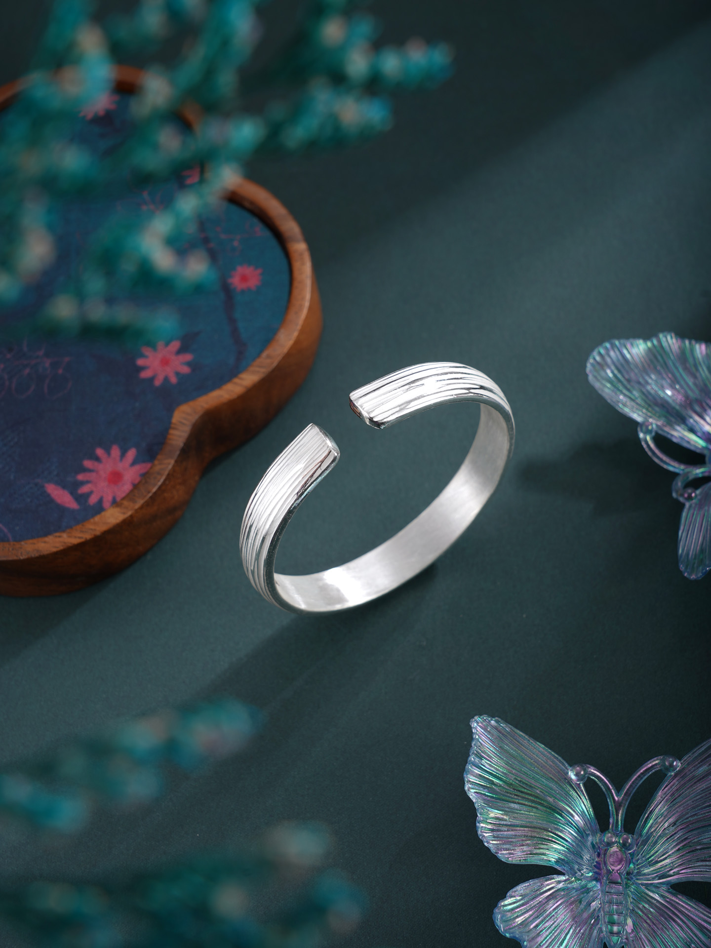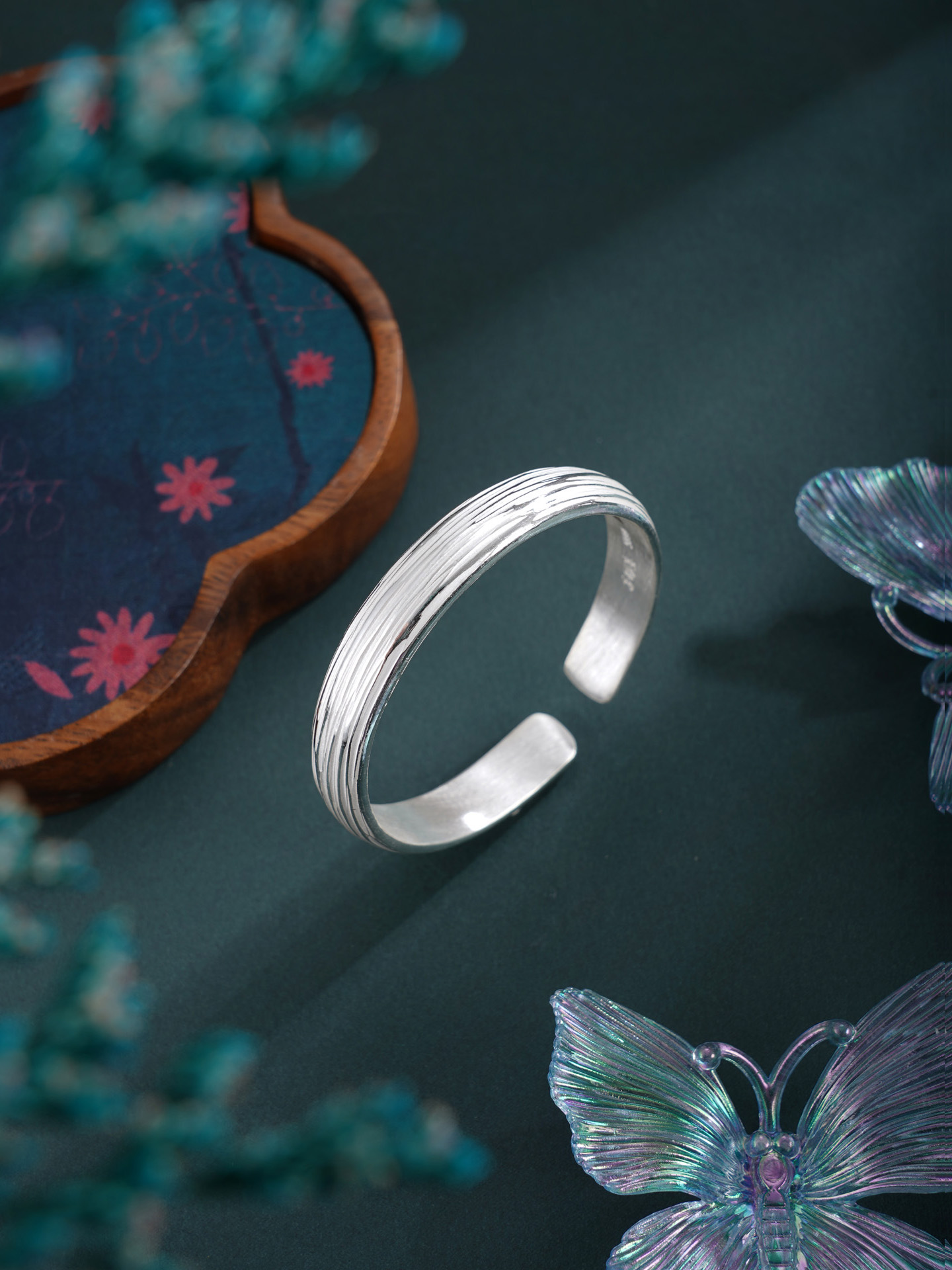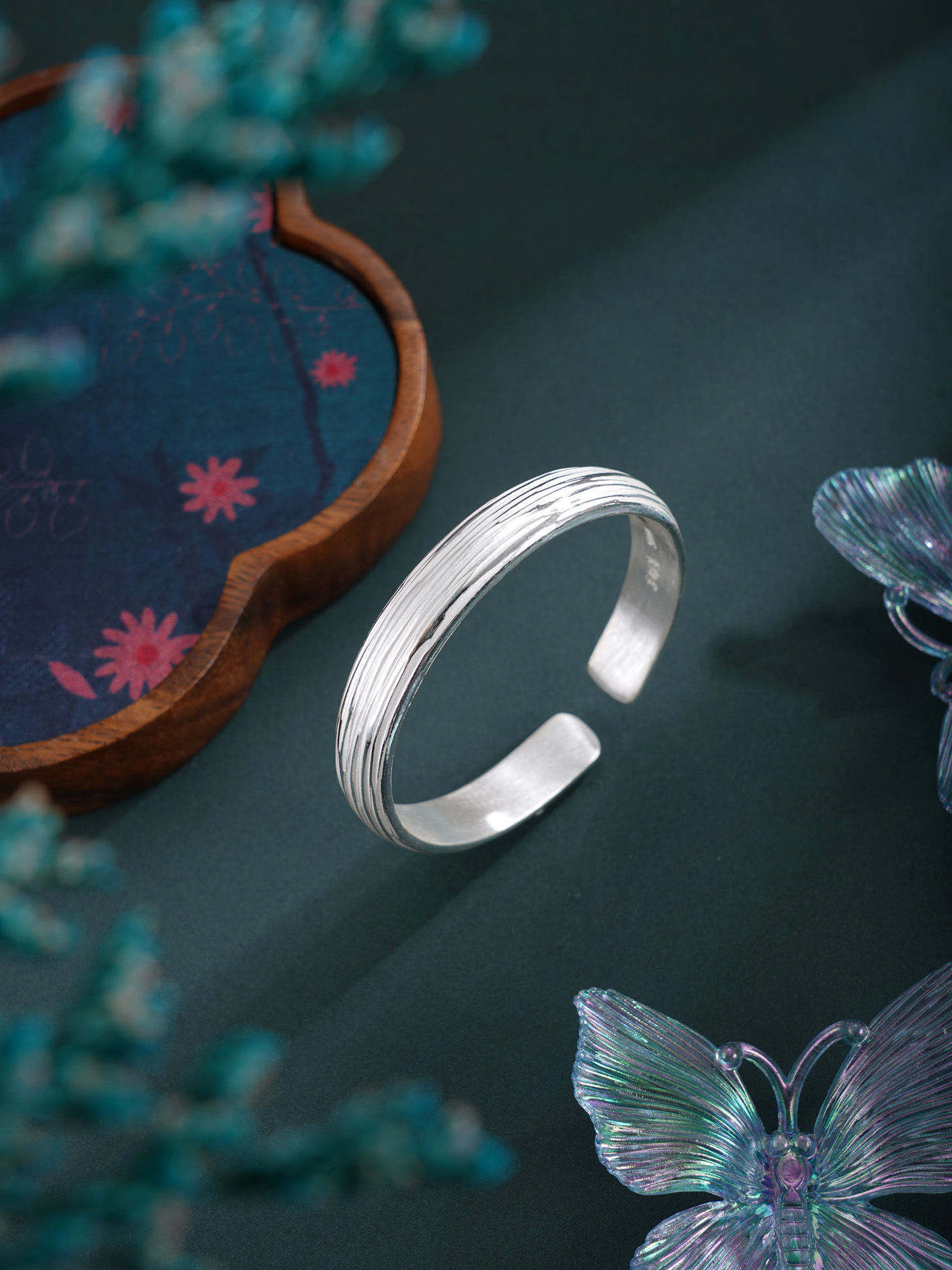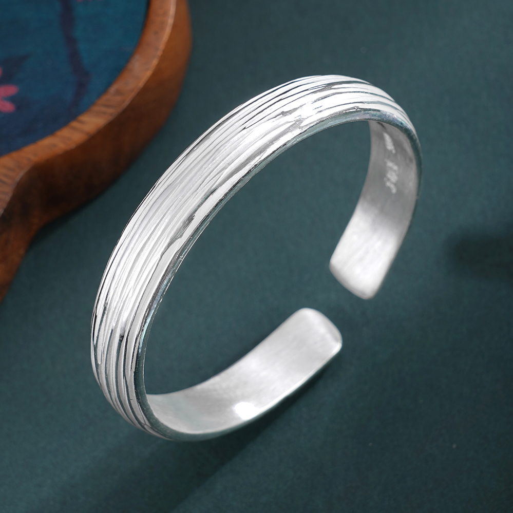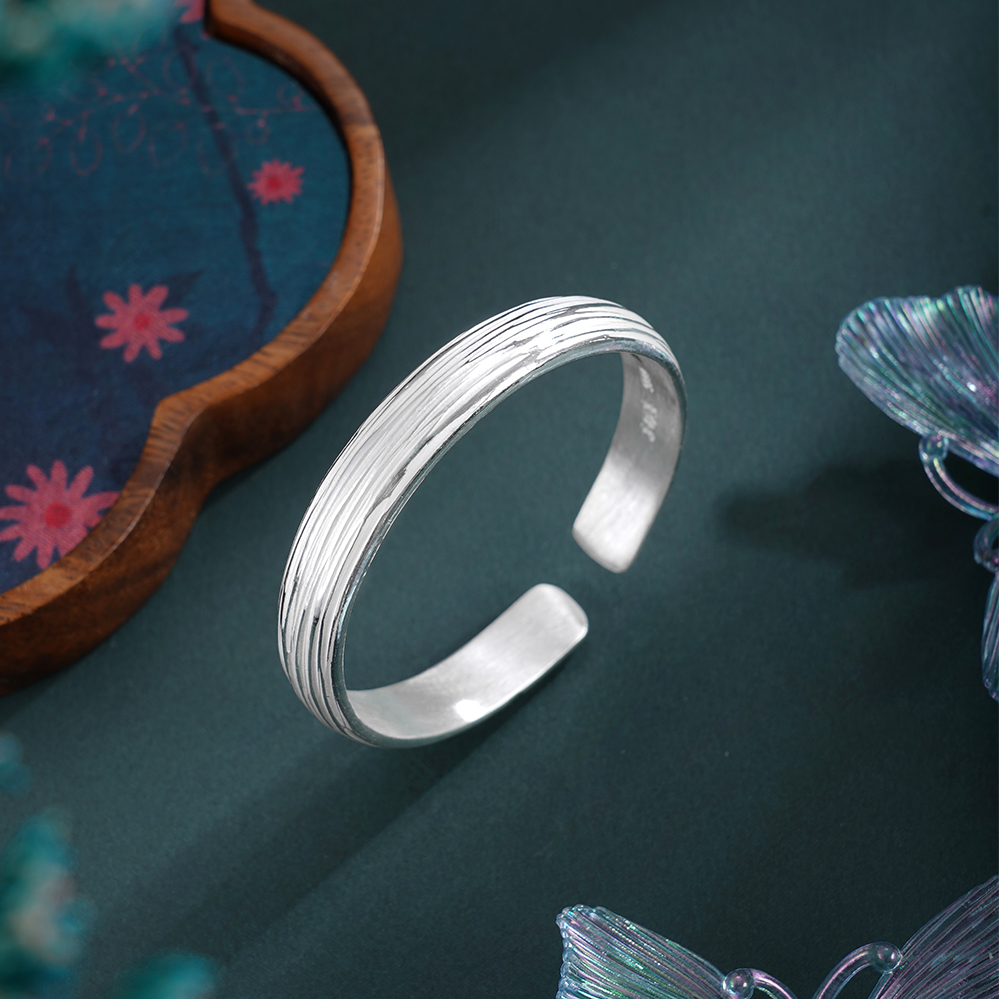 【寓意】:纯银手工手镯,表面錾刻灵动线条,光影自成诗意,宛若银河留下倩影。寓意光华自来,一生清雅璀璨。