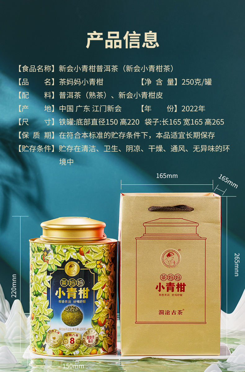 澜沧古茶2022年茶妈妈小青柑陈皮普洱茶熟茶罐装250g