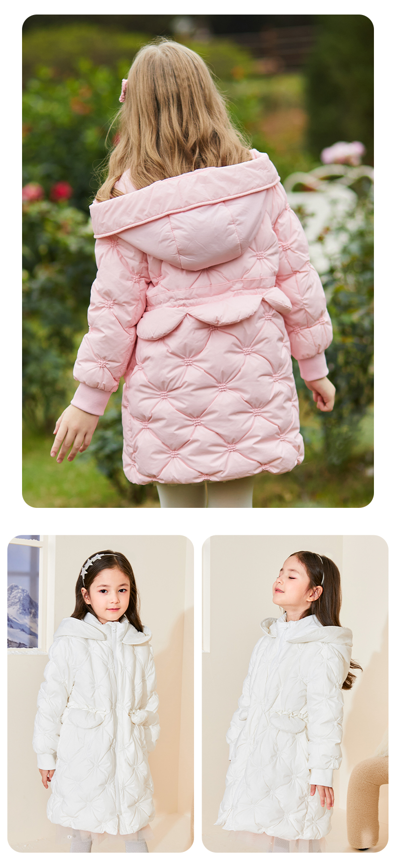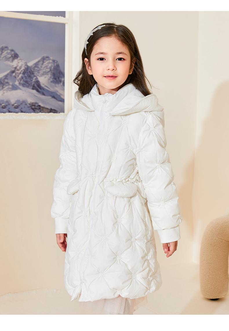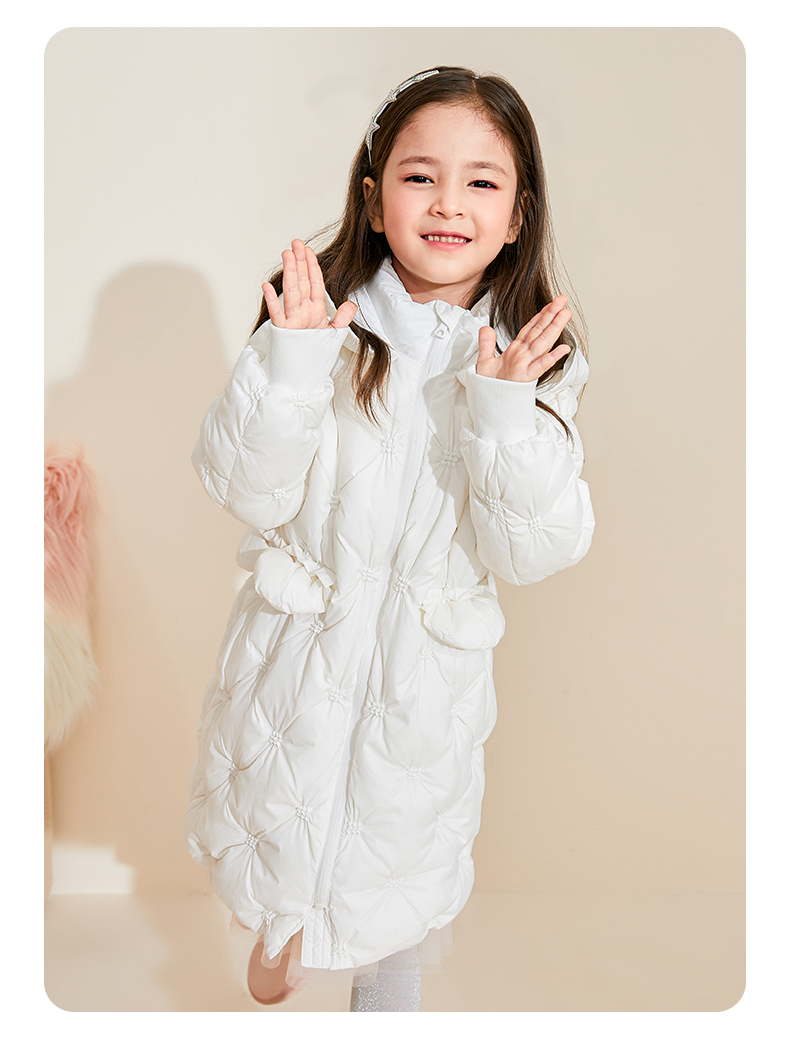 mettekids女童羽绒服冬季中长款保暖外套儿童纯色白鹅绒洋气童装