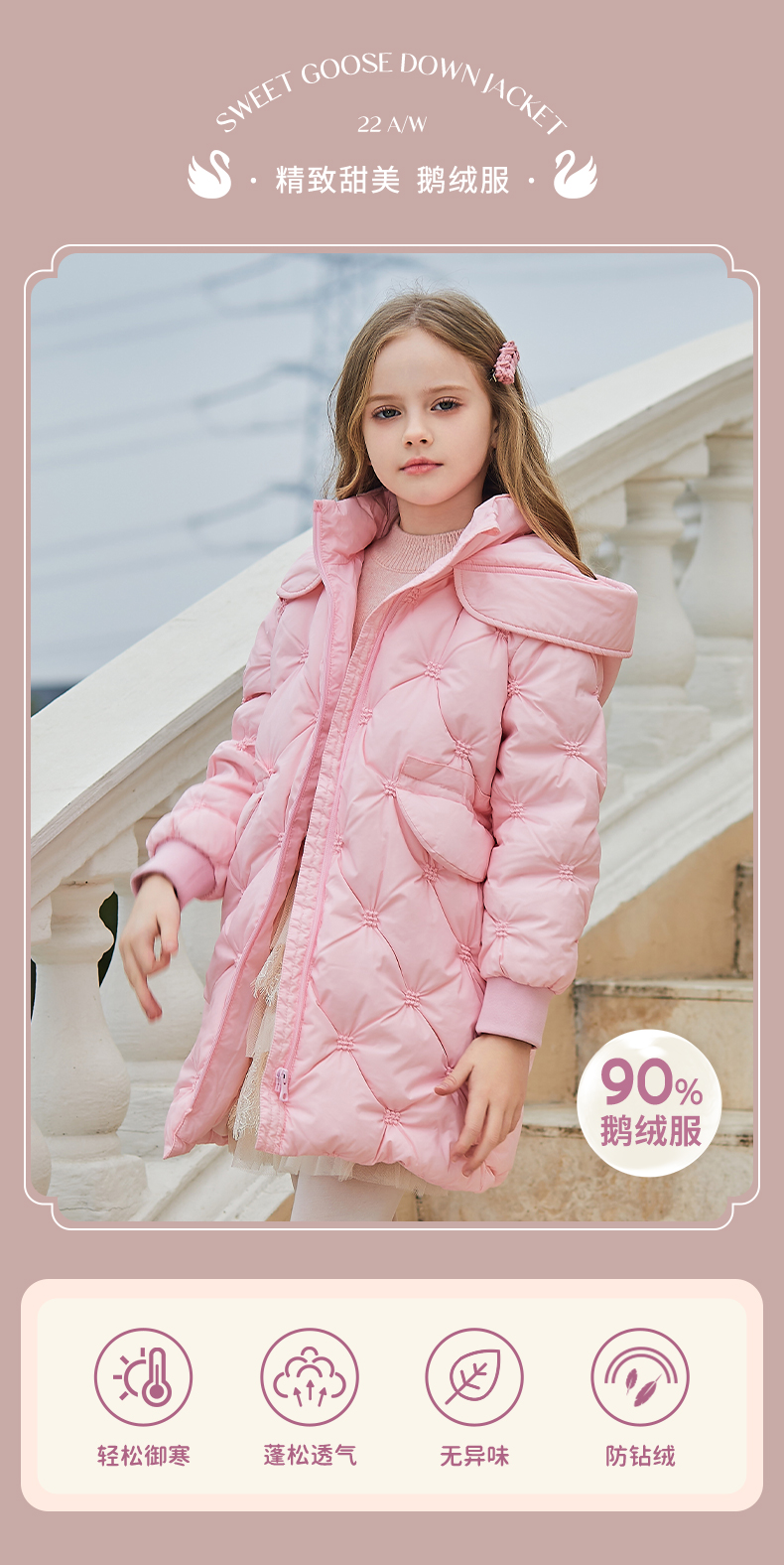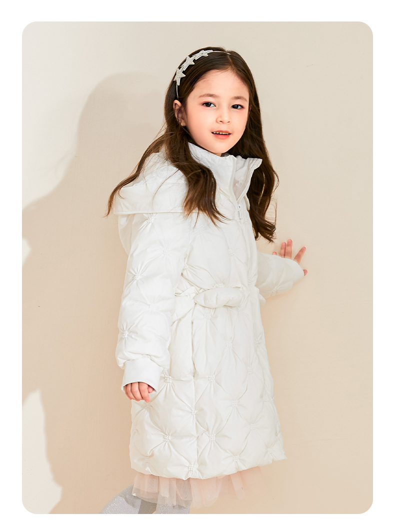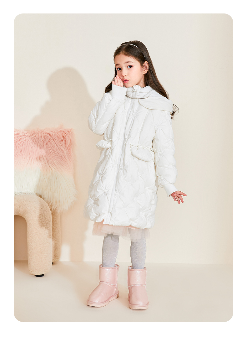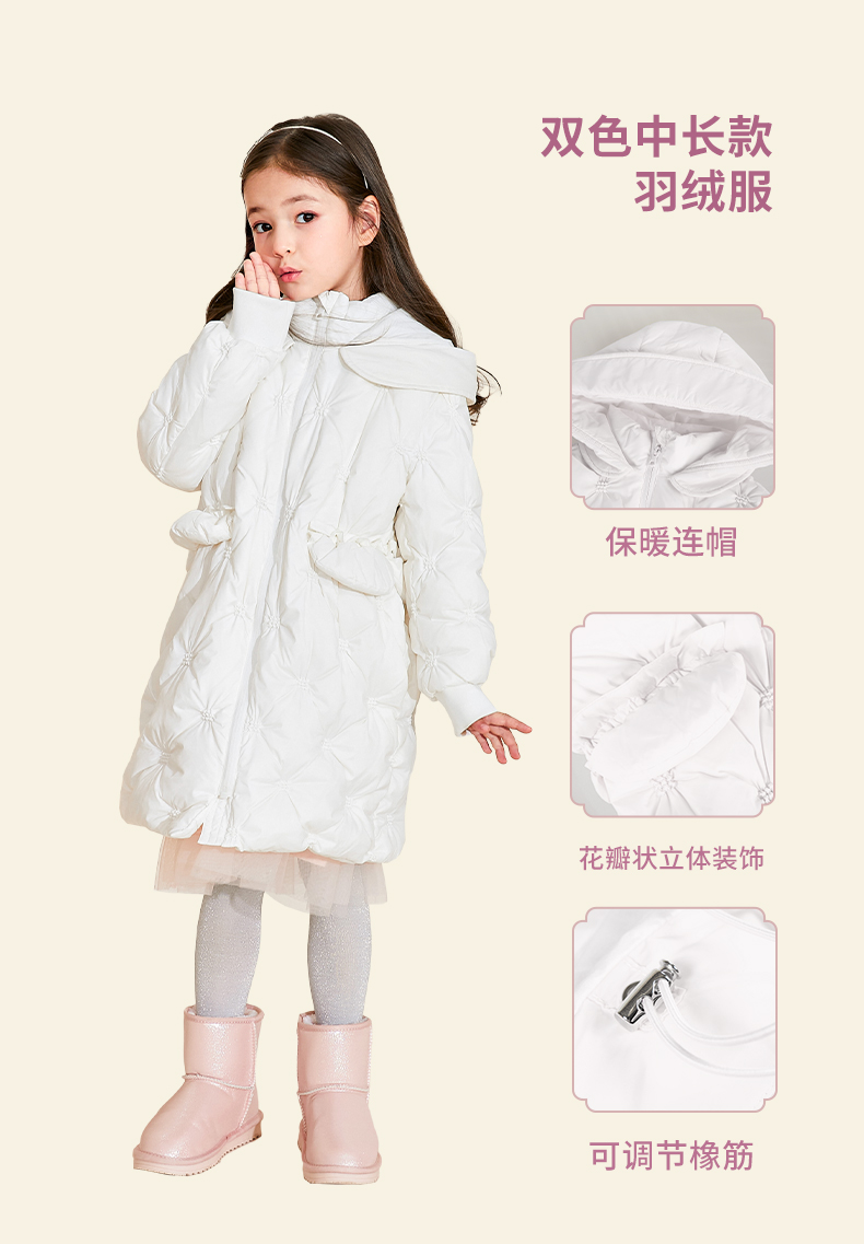 mettekids女童羽绒服冬季中长款保暖外套儿童纯色白鹅绒洋气童装