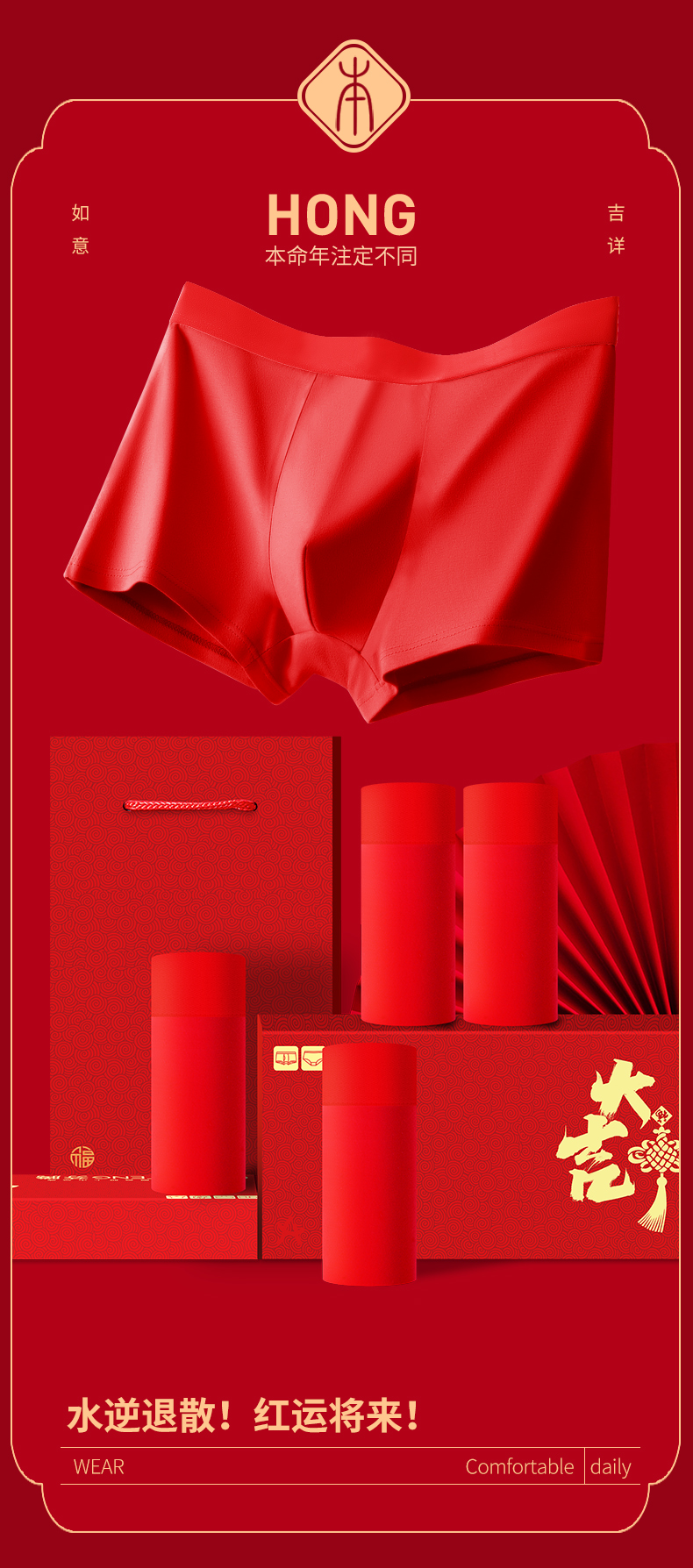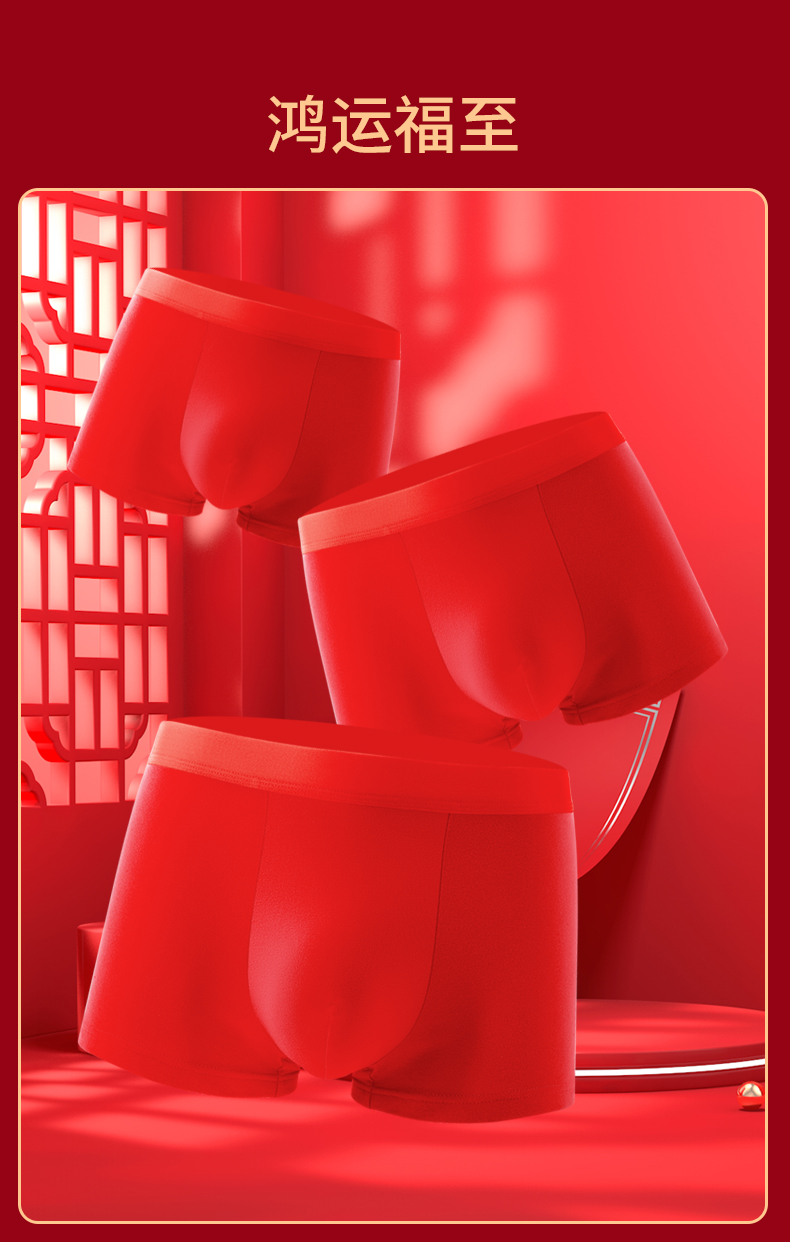 【本命年鸿运内裤】采用高支优质精梳棉面料!有较好的透气性、保暖性!抗菌级内档,高弹力舒适明筋腰带,穿着自由无勒痕!【SM-X】