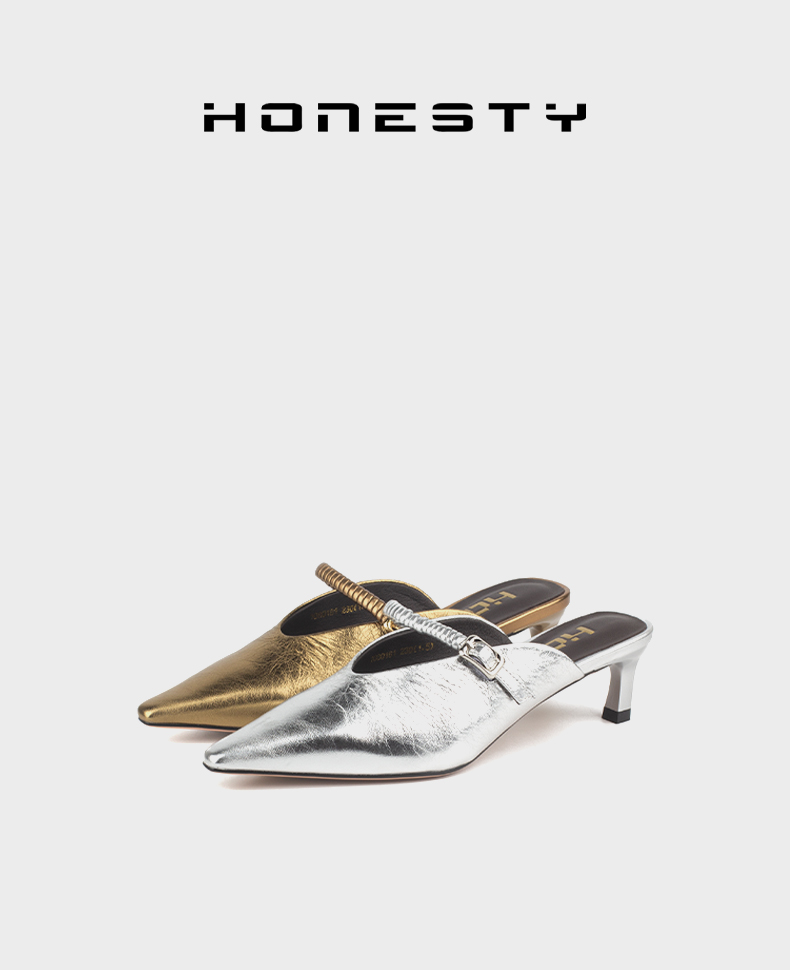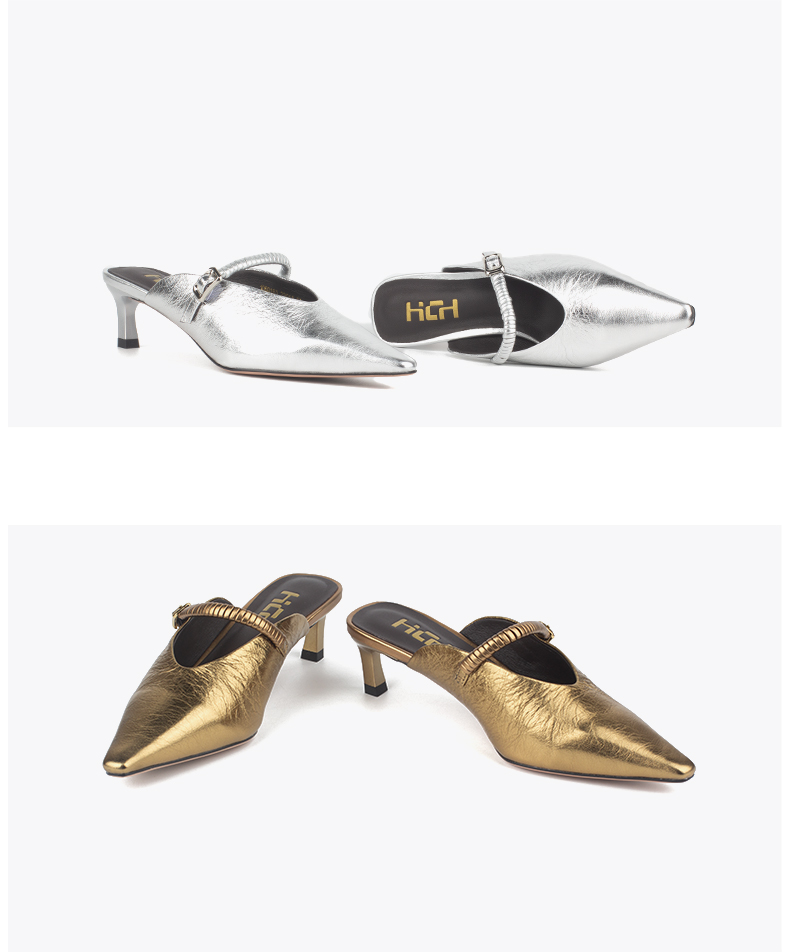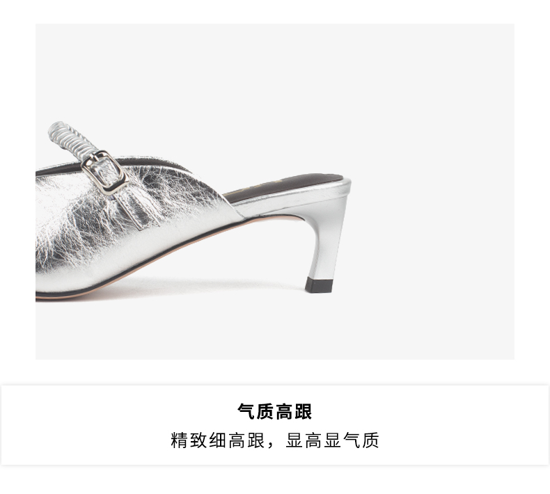 和诚行 2025夏季新款复古法式气质穆勒鞋女时尚中跟包头拖1080161