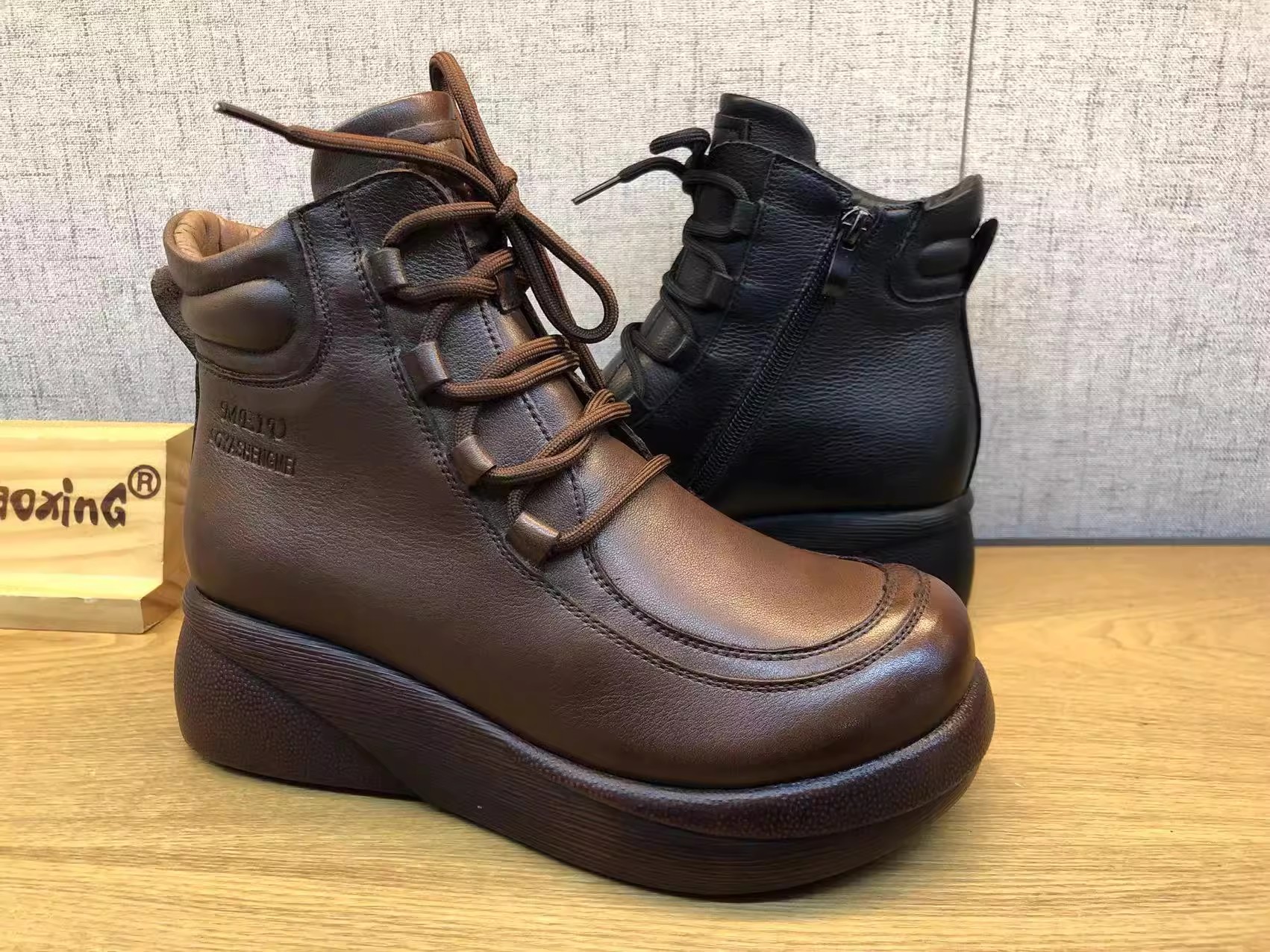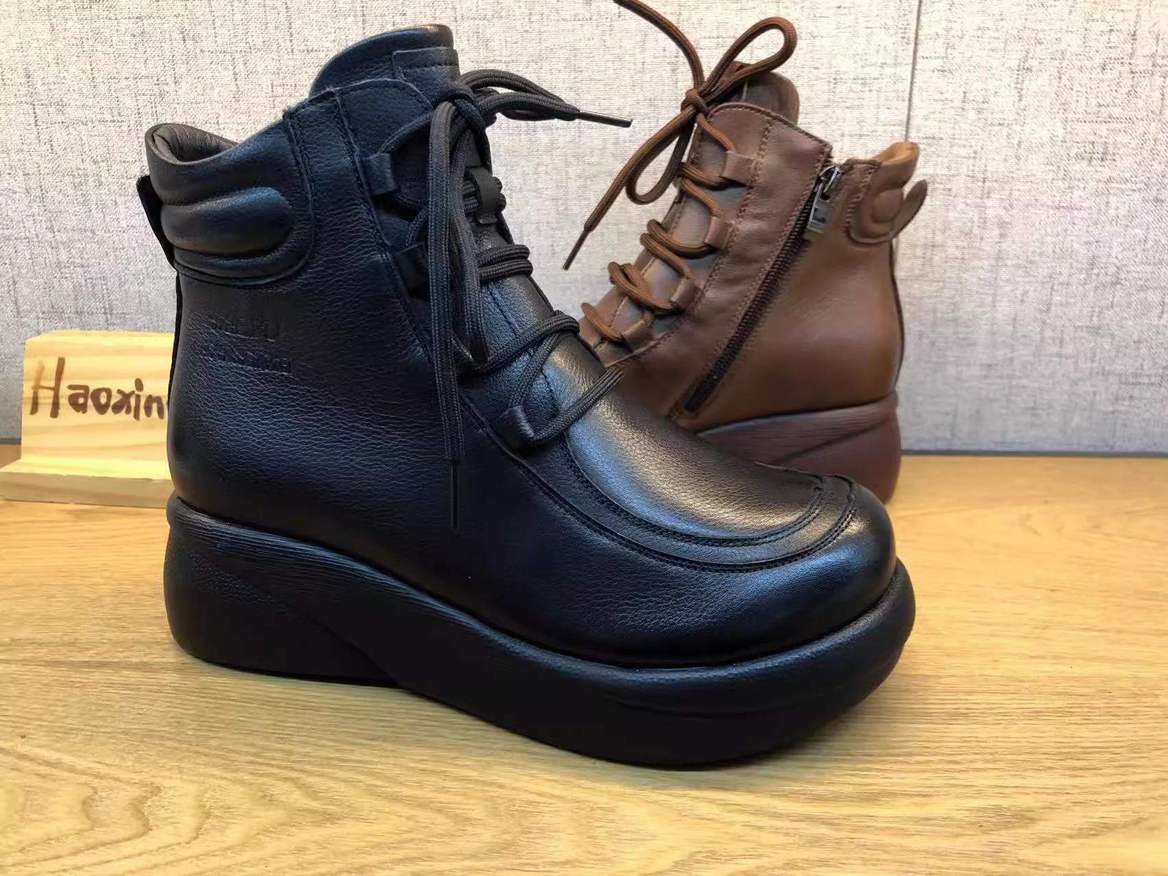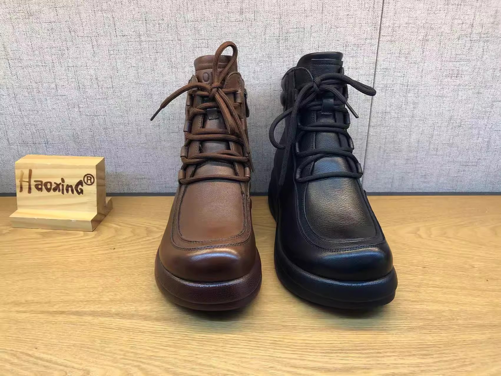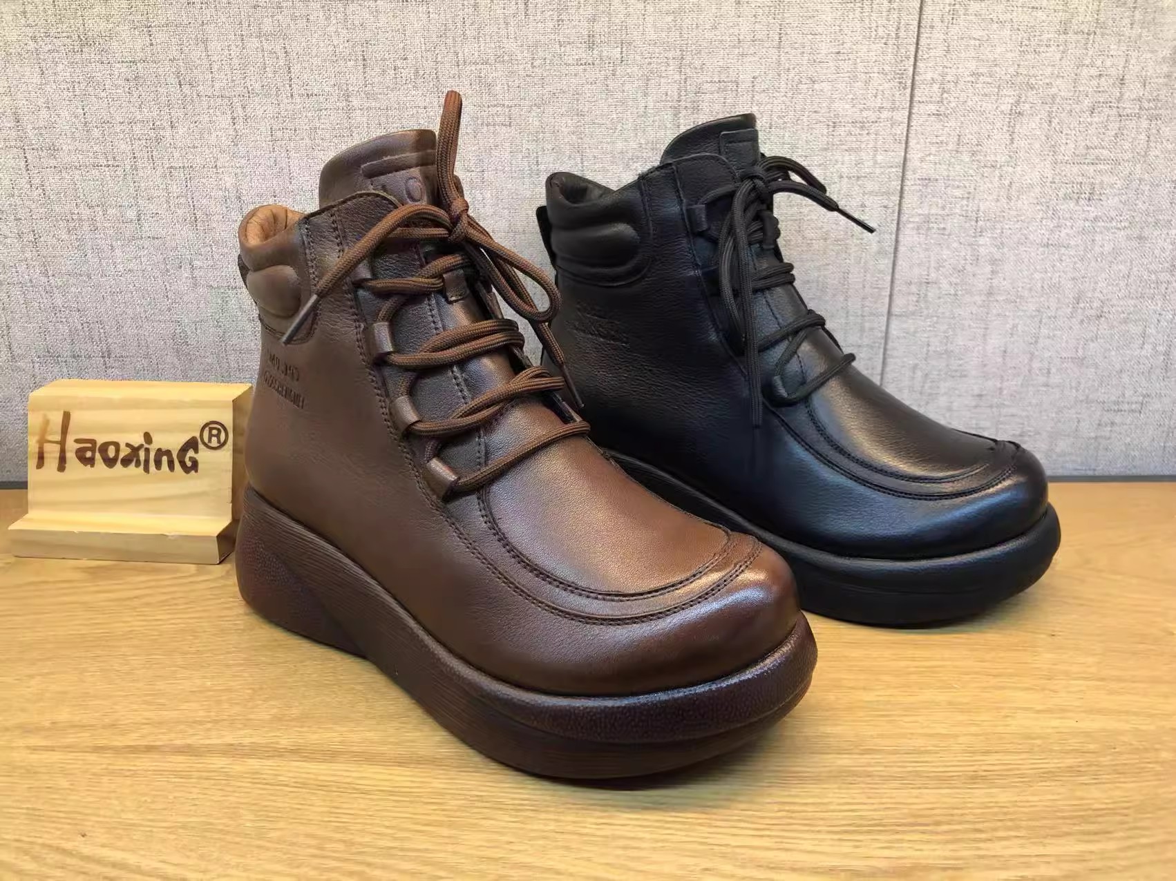 豪行冬季新品时尚休闲真皮坡跟加绒女棉靴21492023