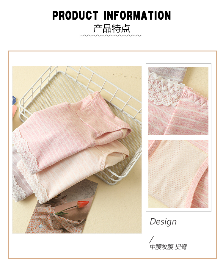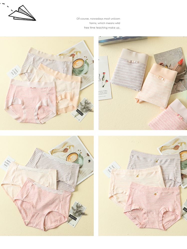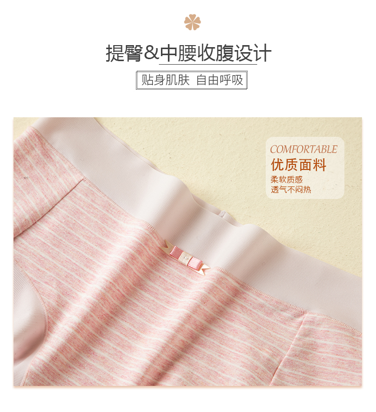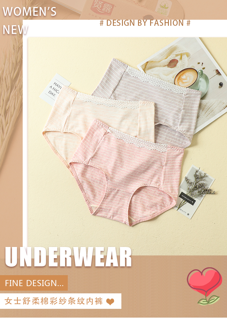 【爆款深度库存】50支棉彩纱女士舒柔棉中腰条纹无痕脚口内裤2901/2928/2929