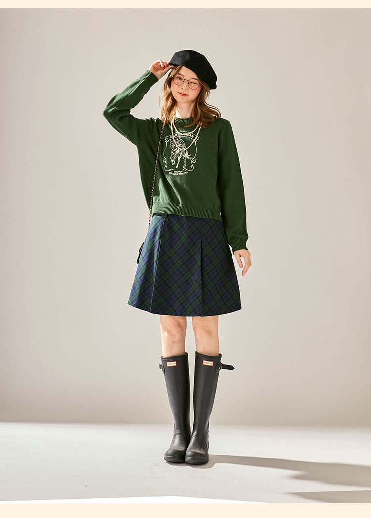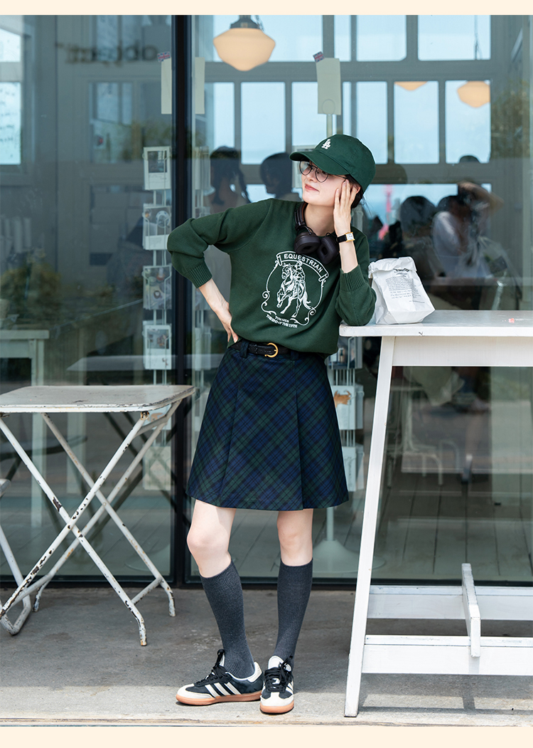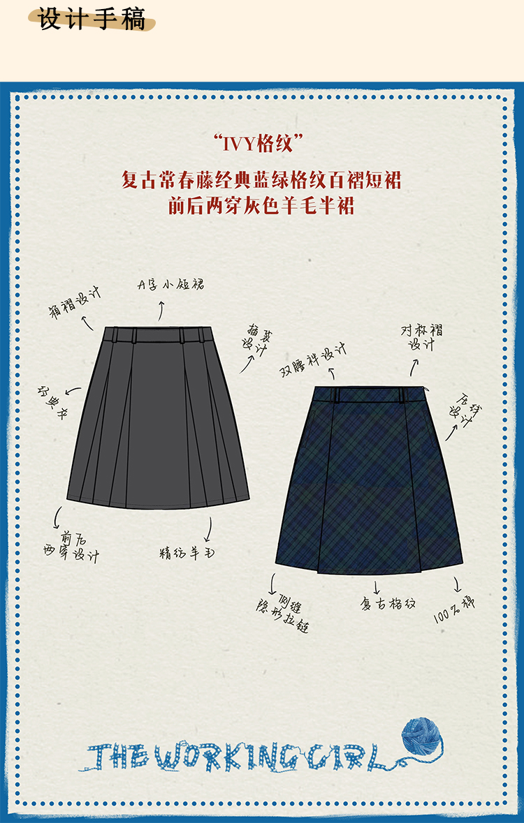 浮生八记/24B076/复古常春藤经典格纹短裙前后两穿羊毛半裙